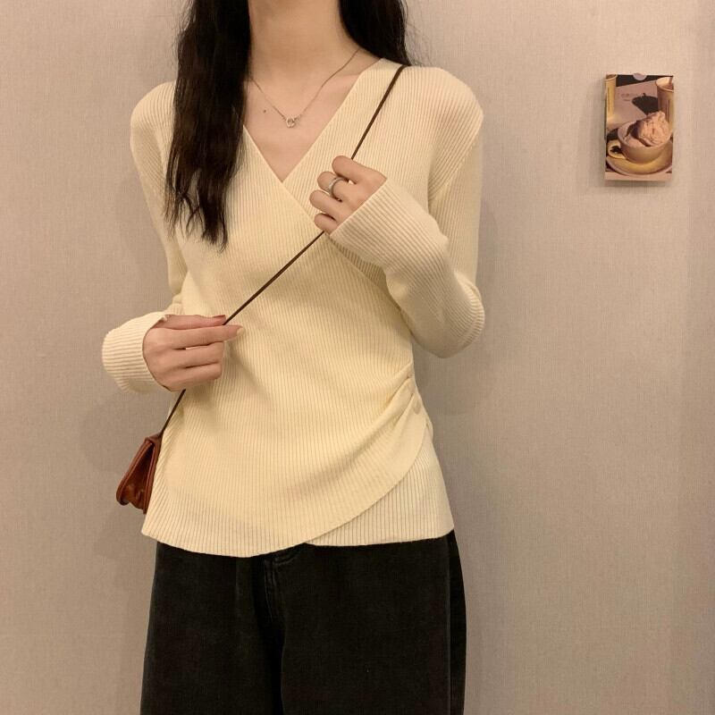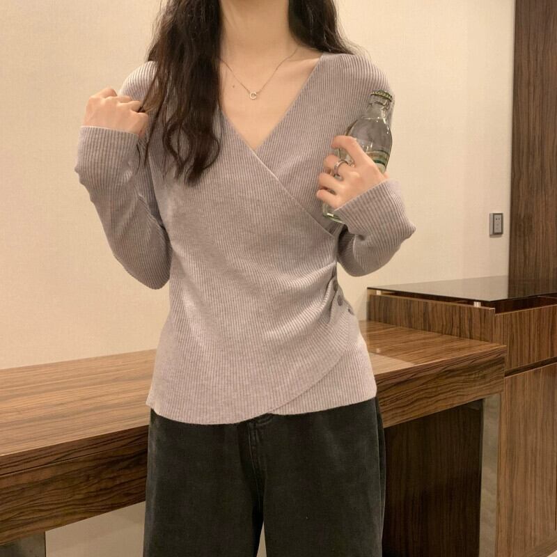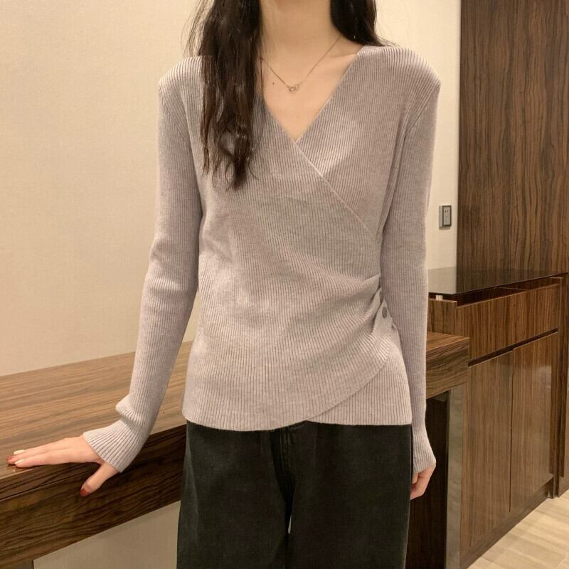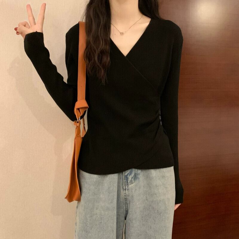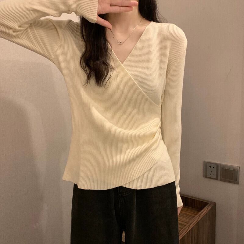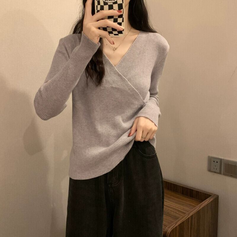 クロス V ネックボトリングシャツ 2023 新しい女性の秋冬インナーウェアファッショナブルでスリムな多用途長袖ニットセーター ロング オータム 秋物 ウィンター 冬物 Vネック 7460055756654286 | framboise21