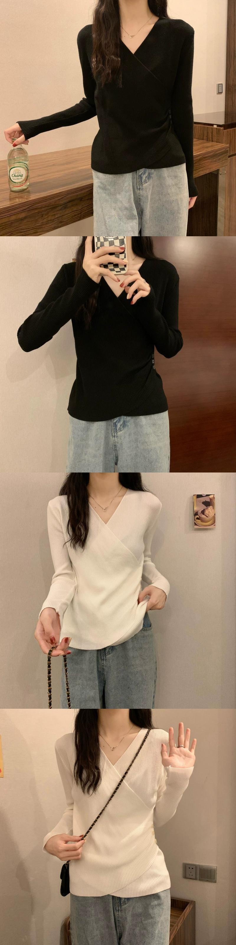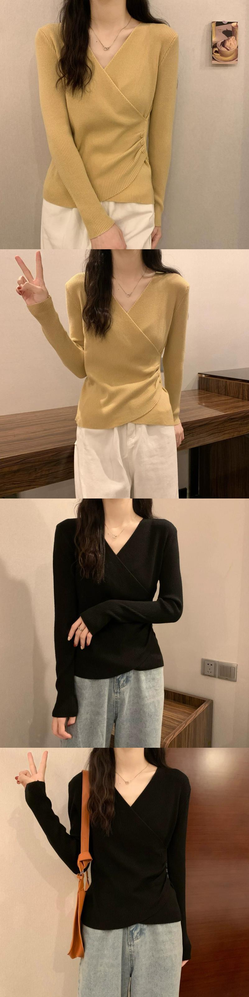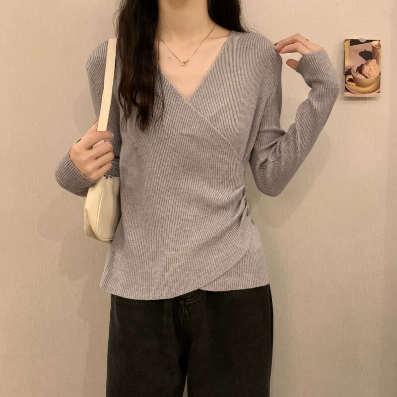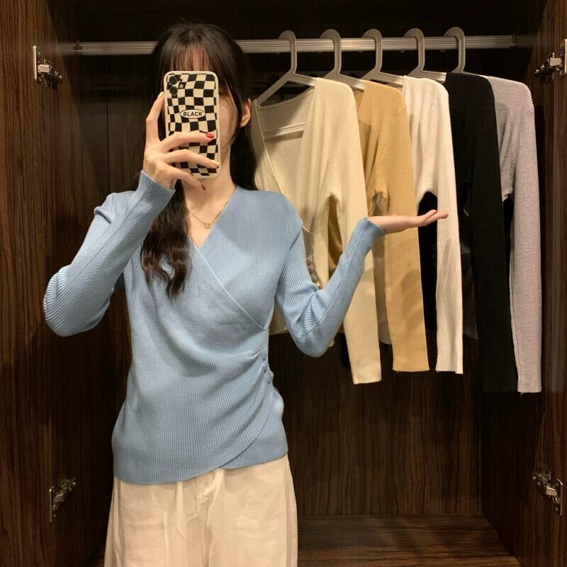 クロス V ネックボトリングシャツ 2023 新しい女性の秋冬インナーウェアファッショナブルでスリムな多用途長袖ニットセーター ロング オータム 秋物 ウィンター 冬物 Vネック 7460055756654286 | framboise21