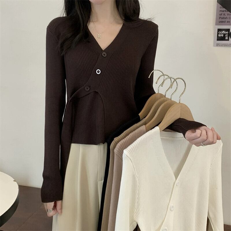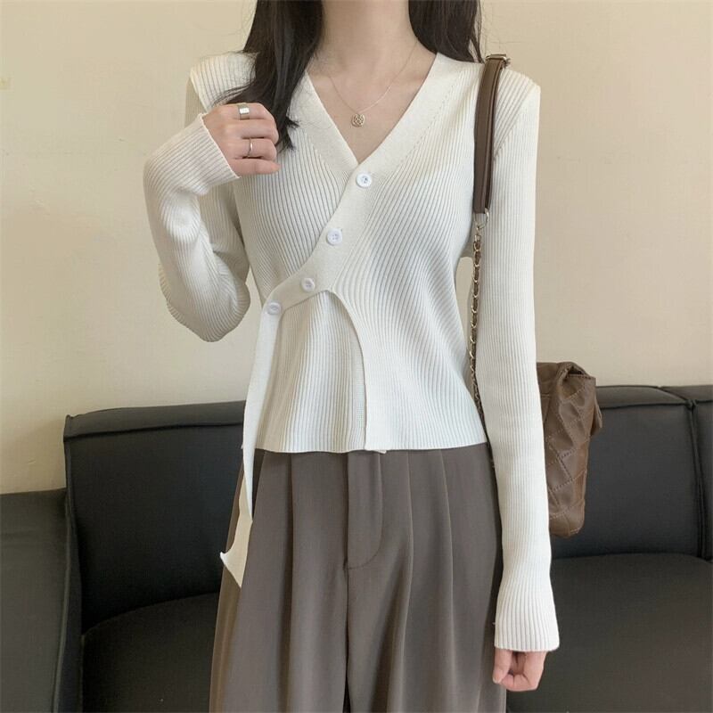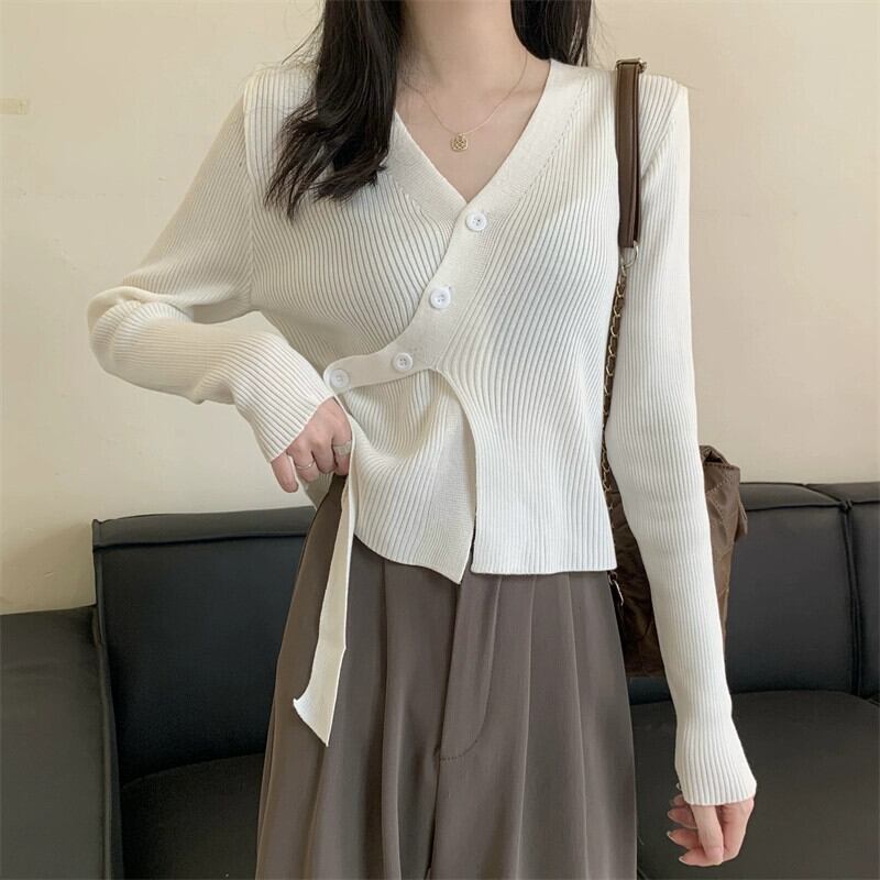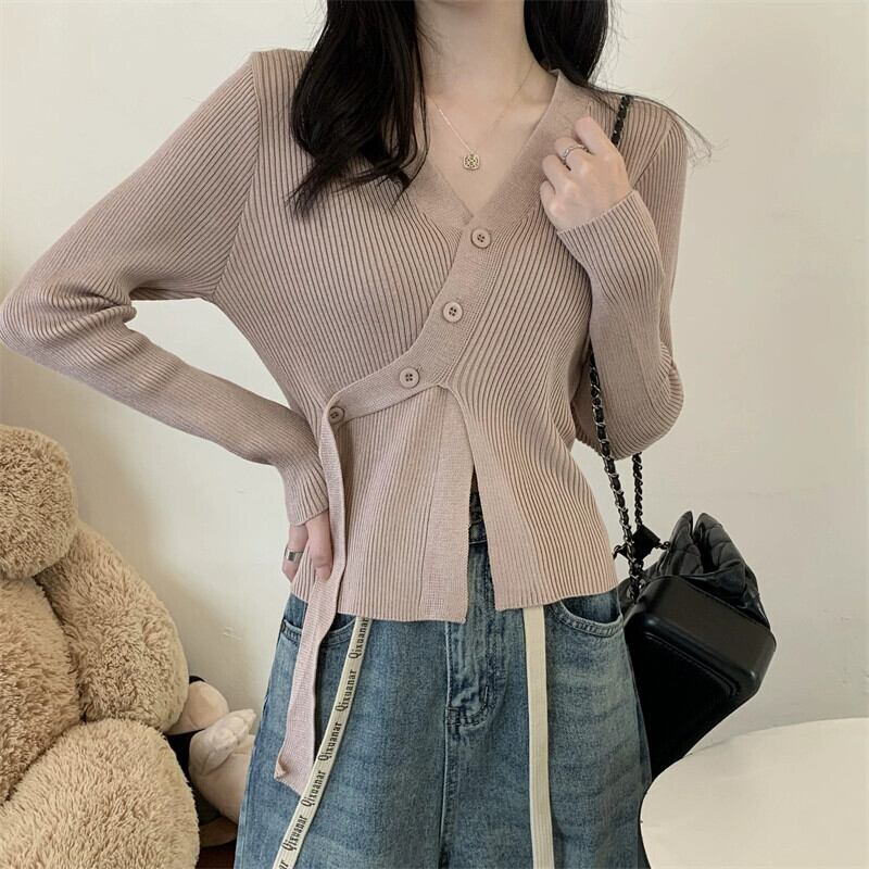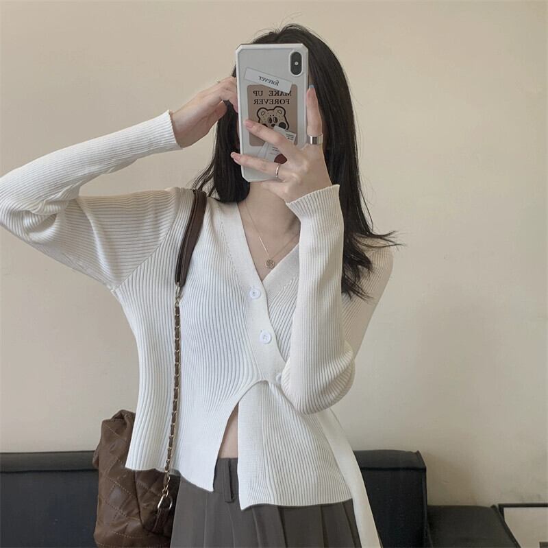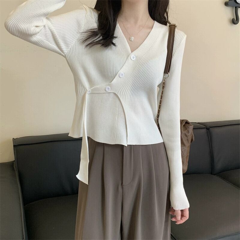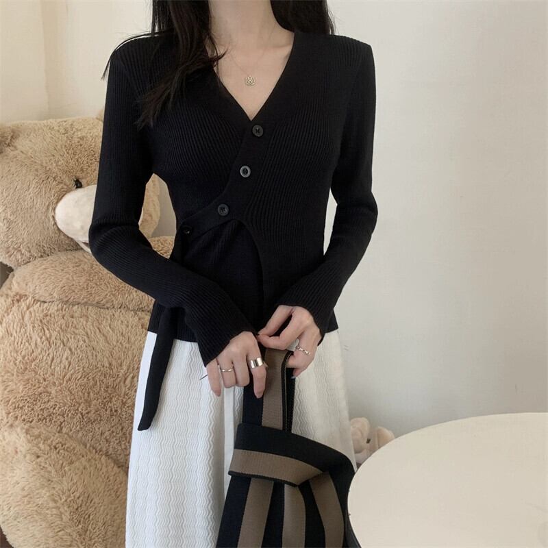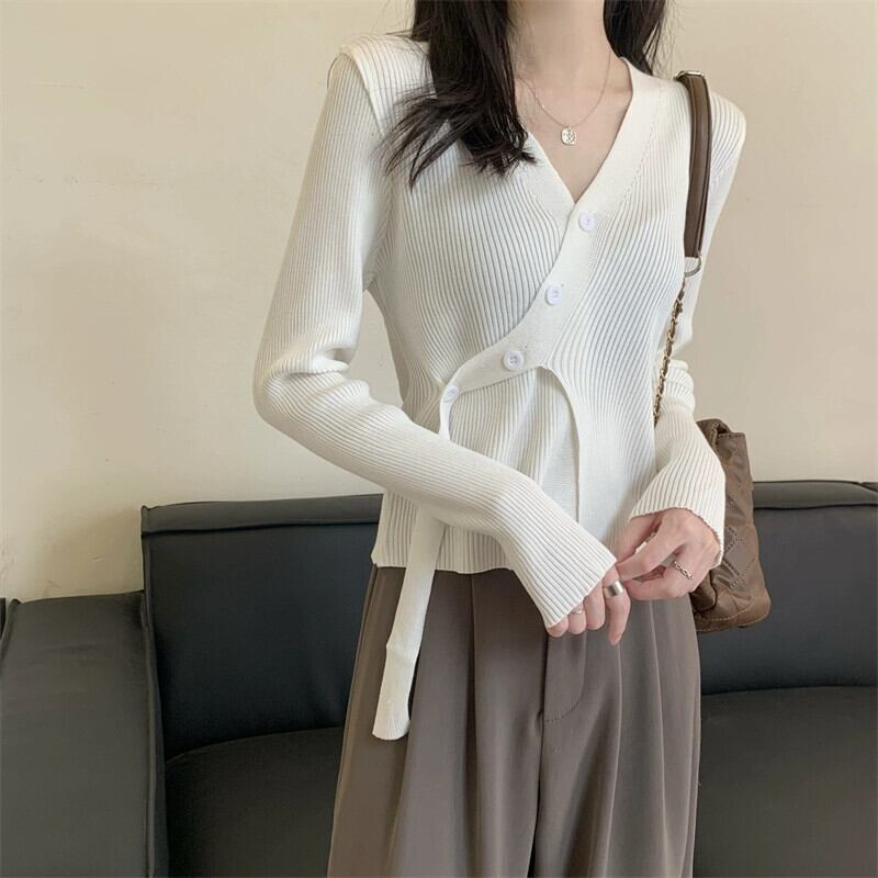 ホワイト V ネックニットボトムシャツ 2023 新しい女性の秋と冬のファッショナブルなスタイルのインナーネクタイショート長袖トップ ロング オータム 秋物 ウィンター 冬物 Vネック 7460057253140101 | framboise21