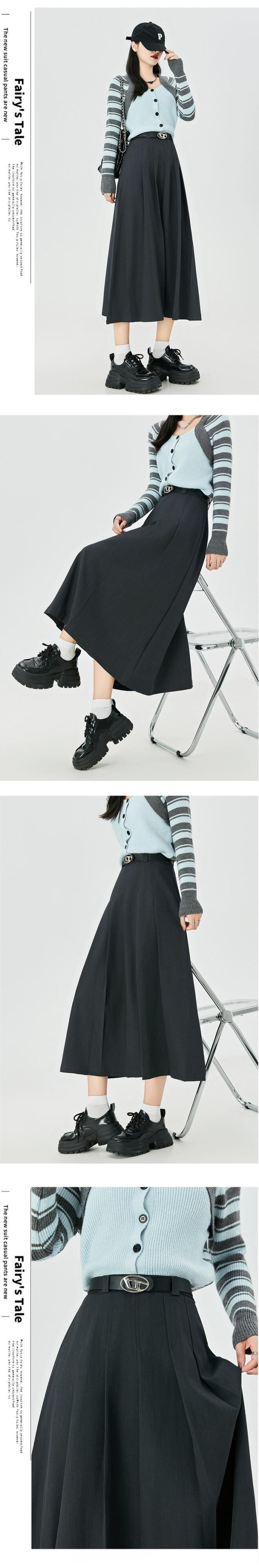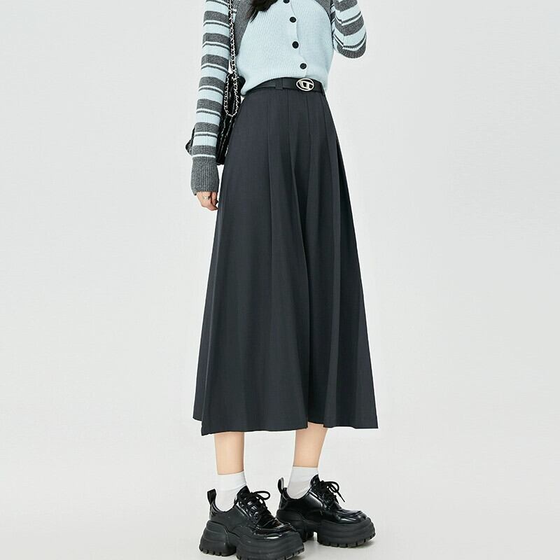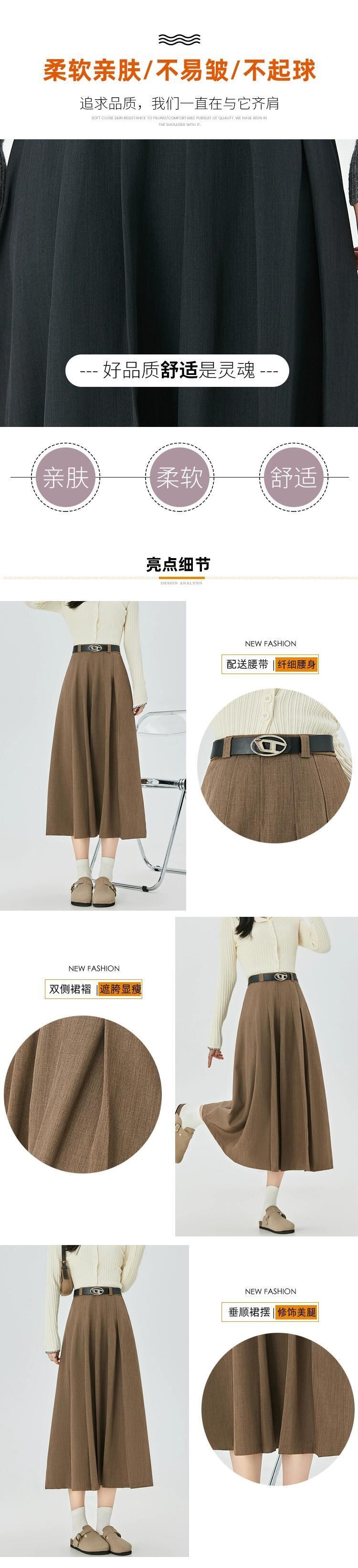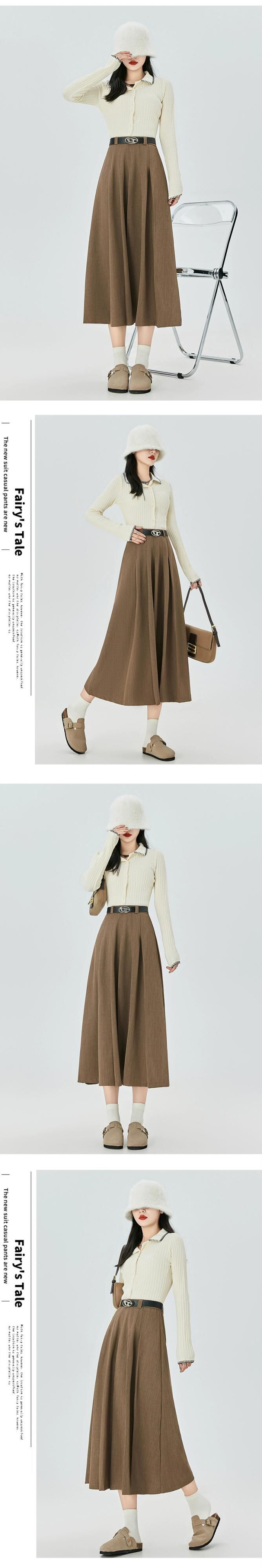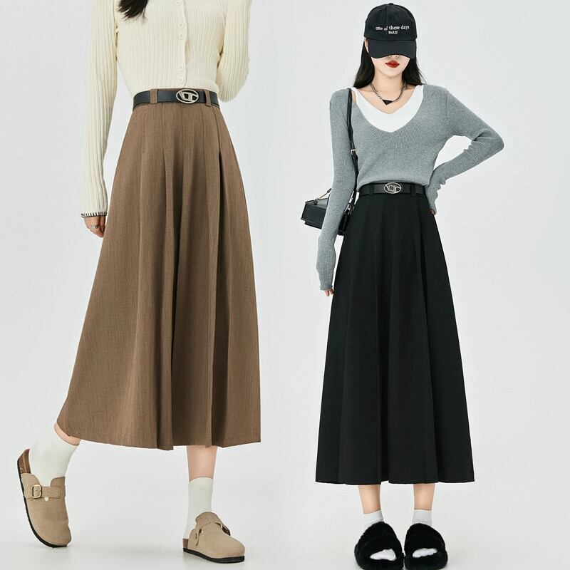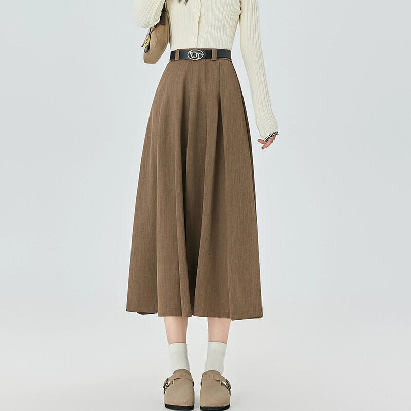 カーキ a ラインスーツスカート女性秋冬 2023 新しいプリーツスカートロング痩身ミッドレングスハイウエスト傘スカート オータム 秋物 ウィンター 冬物 Aライン 7460043676288922 | framboise21