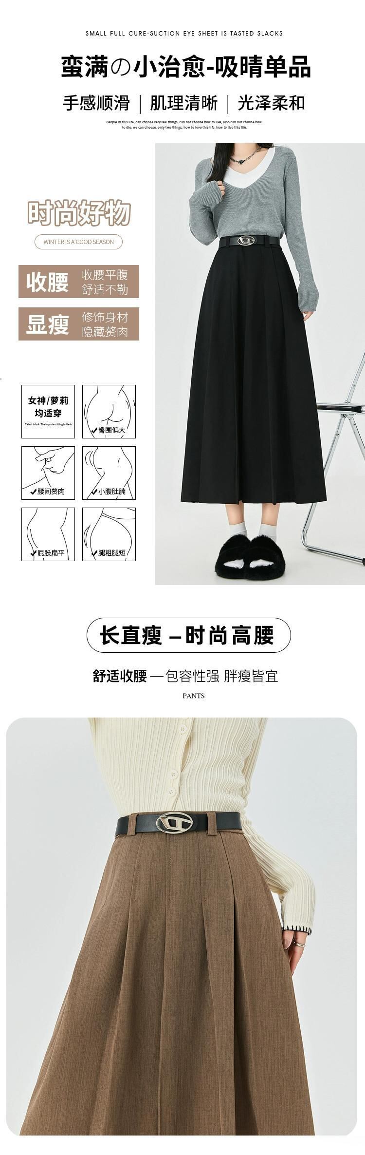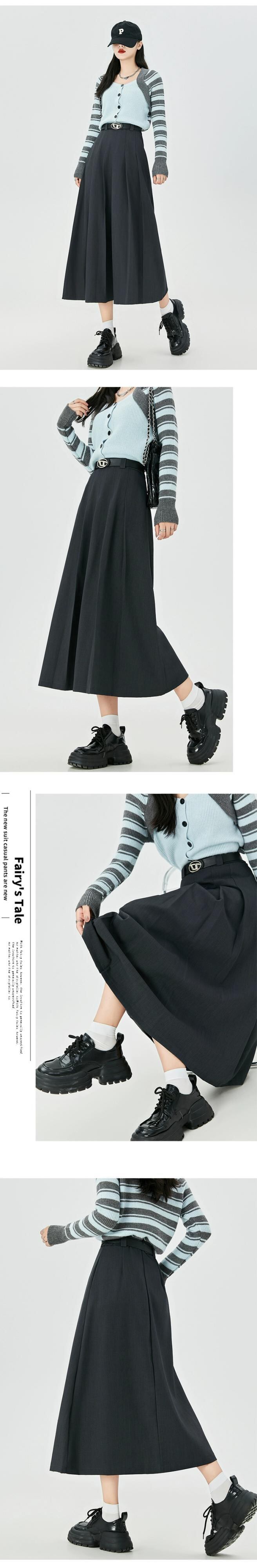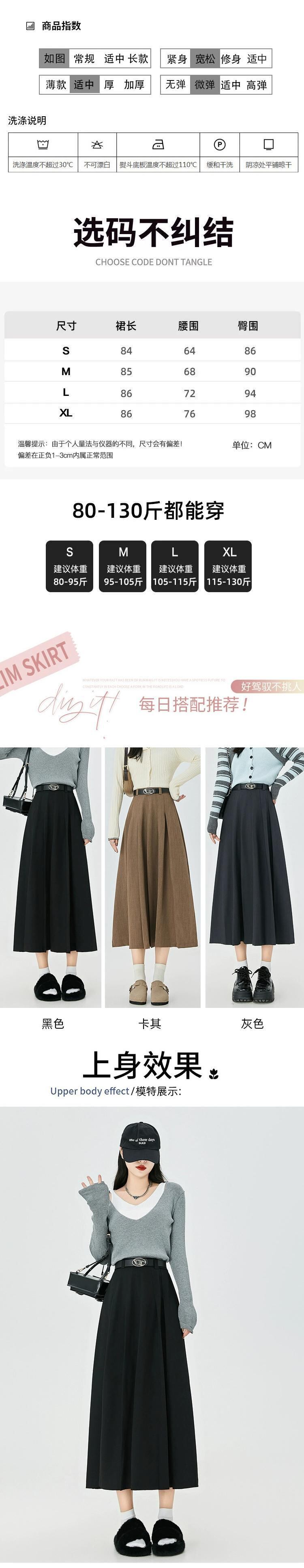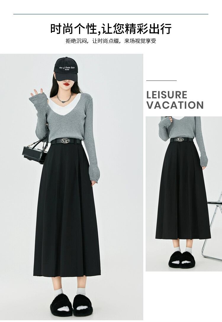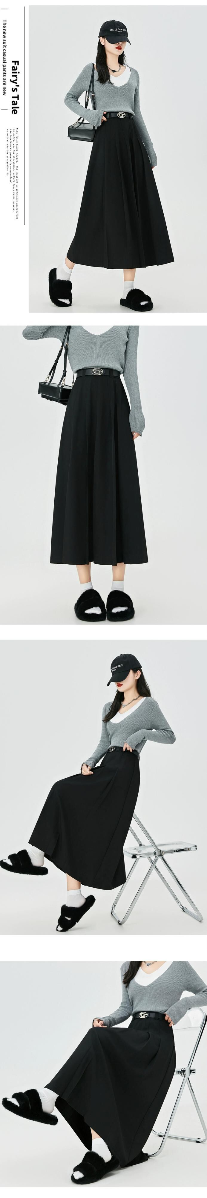 カーキ a ラインスーツスカート女性秋冬 2023 新しいプリーツスカートロング痩身ミッドレングスハイウエスト傘スカート オータム 秋物 ウィンター 冬物 Aライン 7460043676288922 | framboise21
