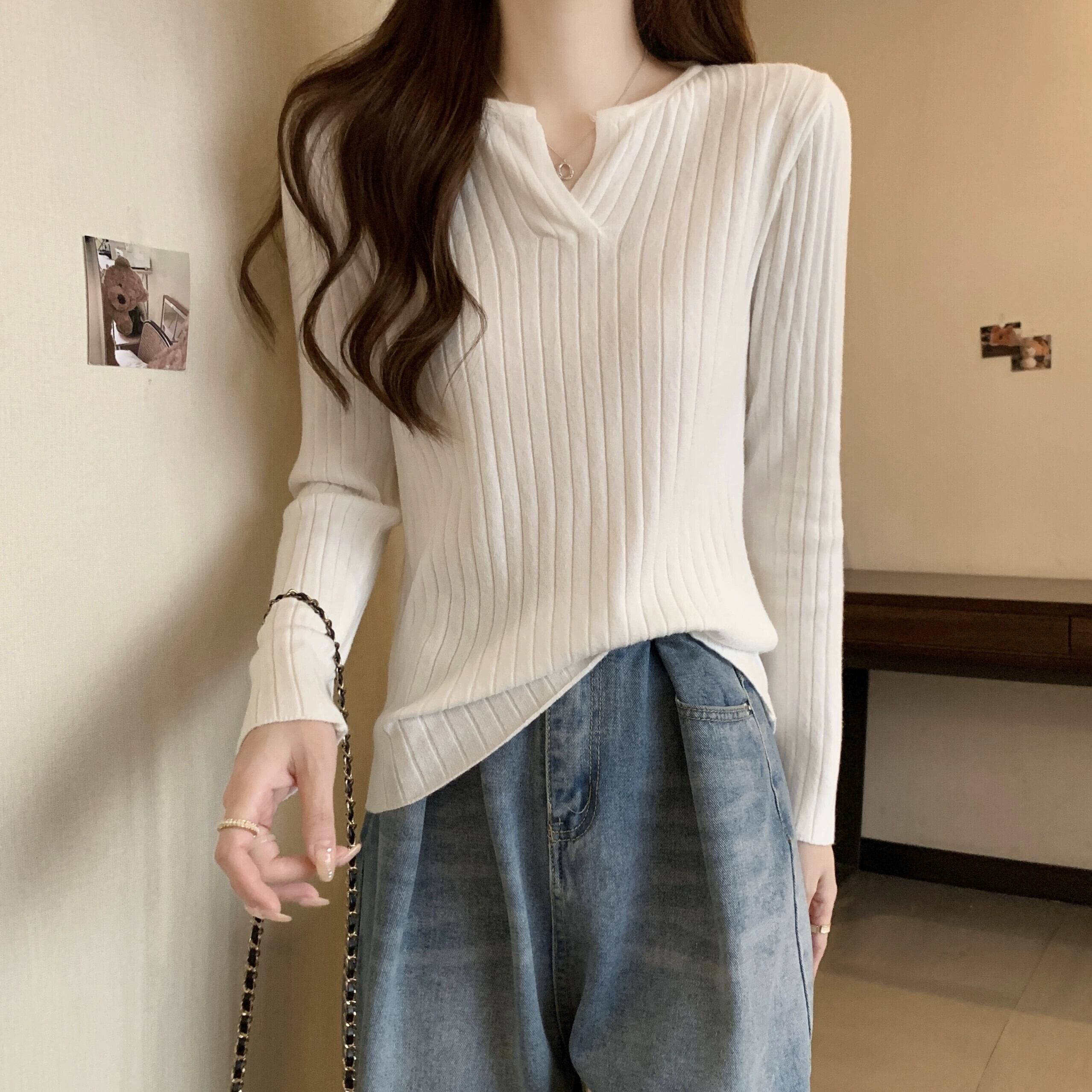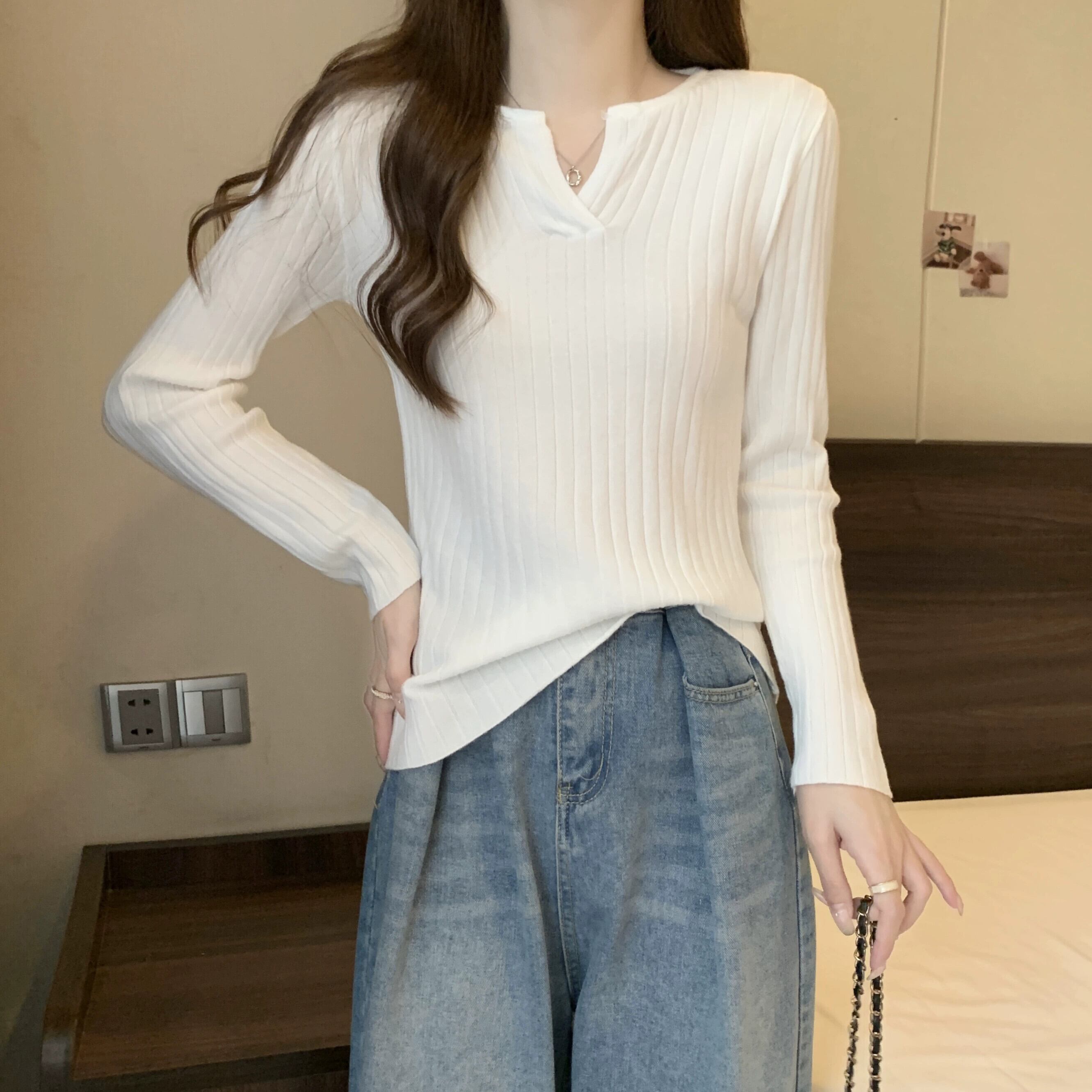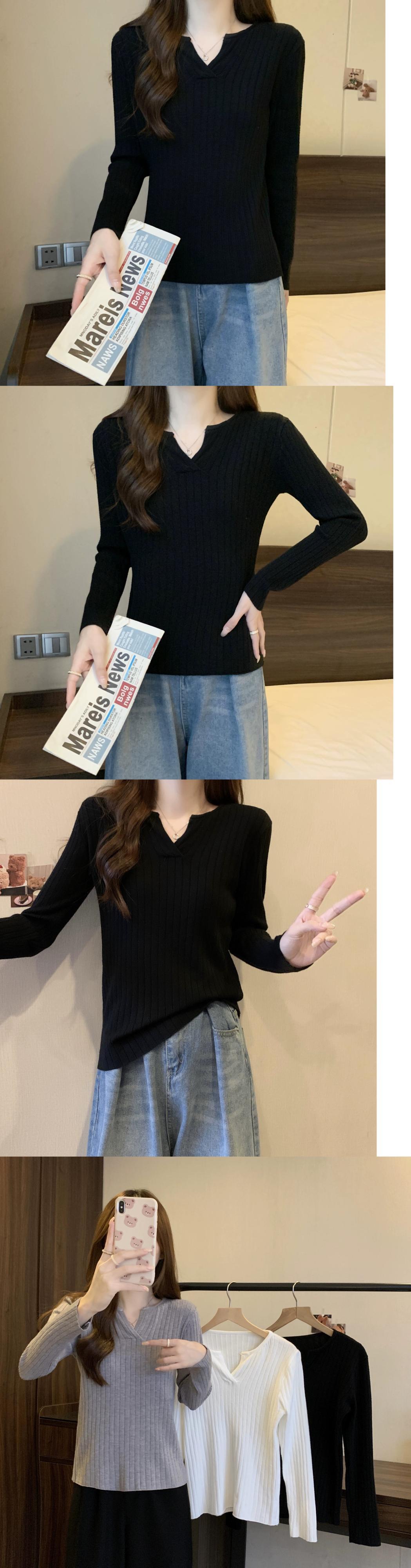 2023 年秋冬の黒のニットボトムシャツ女性新しいハイエンドスリムフィット長袖 V ネックセーター ロング ブラック オータム 秋物 ウィンター 冬物 Vネック 7460022496659856 | framboise21
