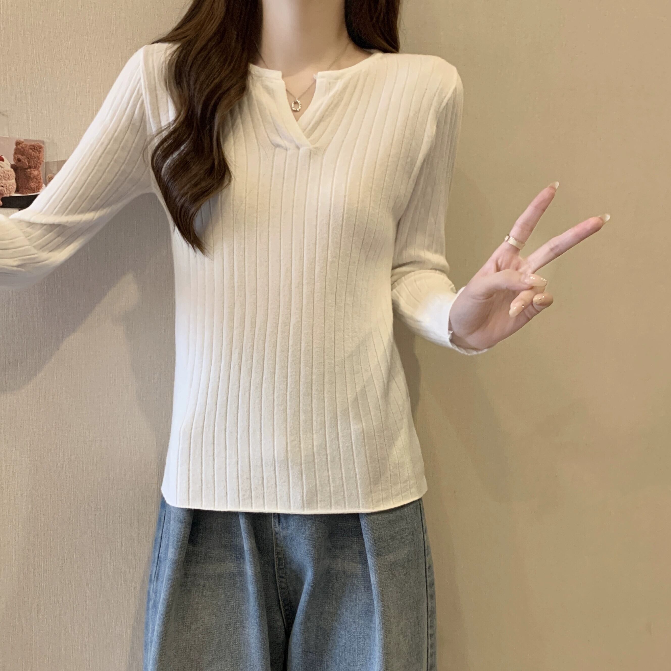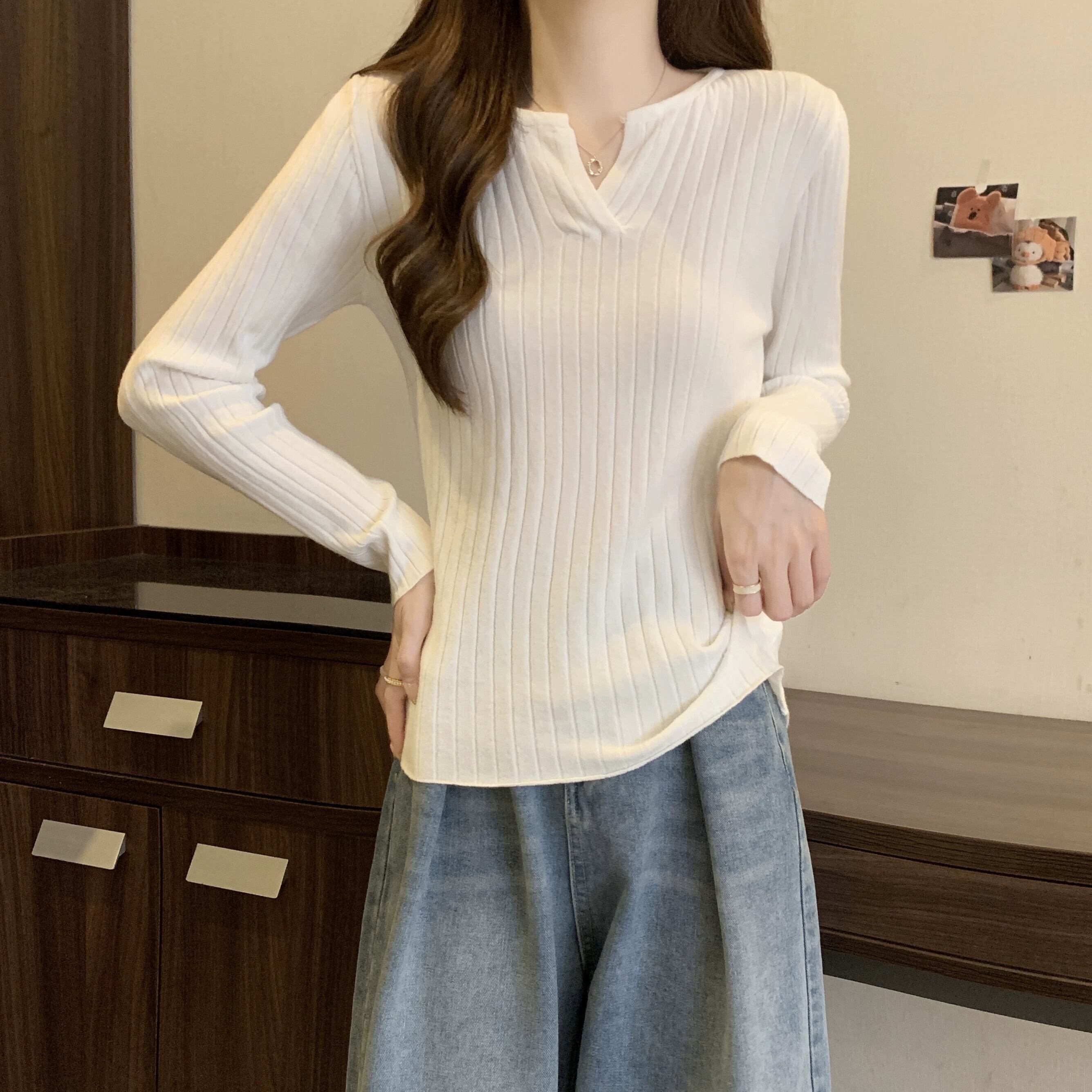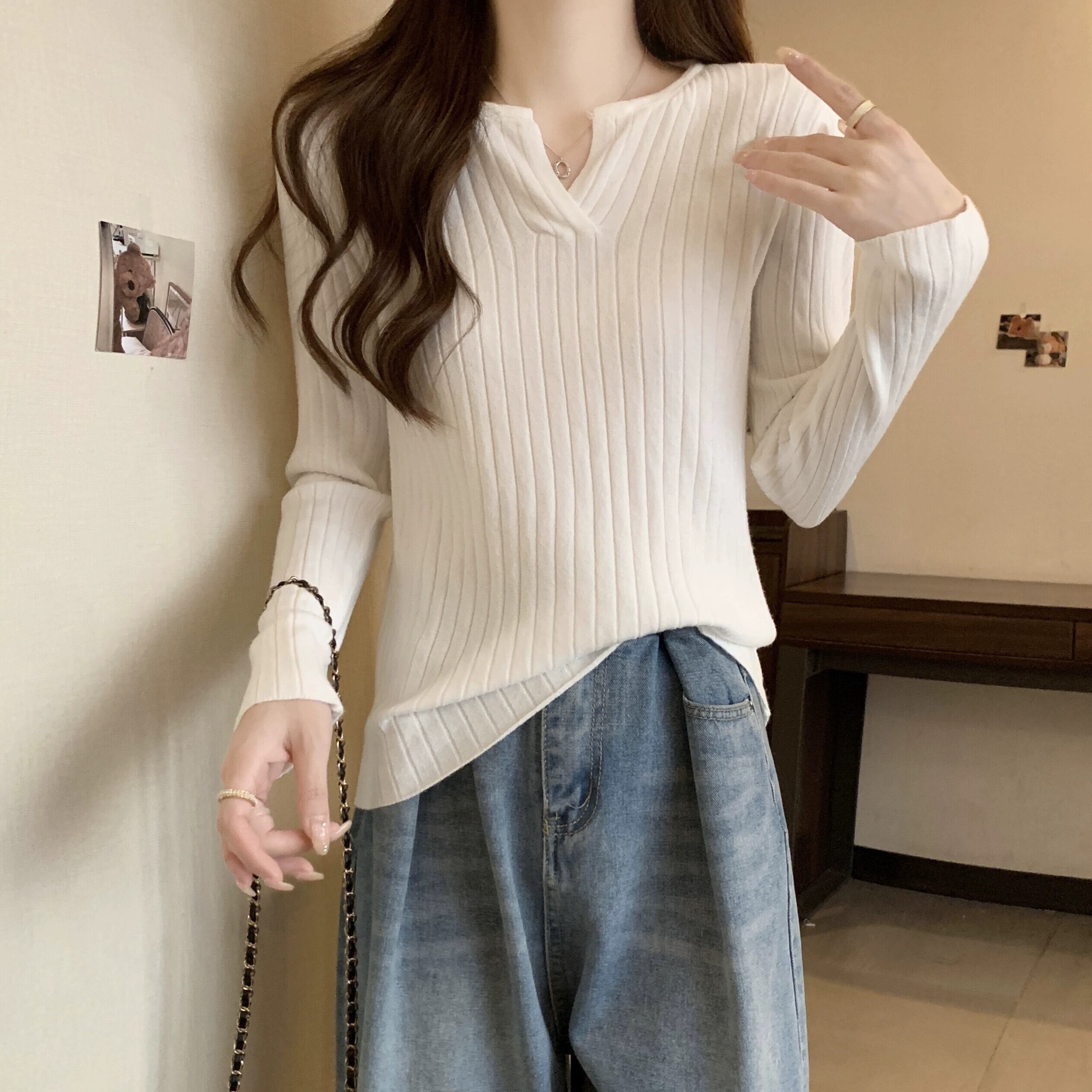 2023 年秋冬の黒のニットボトムシャツ女性新しいハイエンドスリムフィット長袖 V ネックセーター ロング ブラック オータム 秋物 ウィンター 冬物 Vネック 7460022496659856 | framboise21