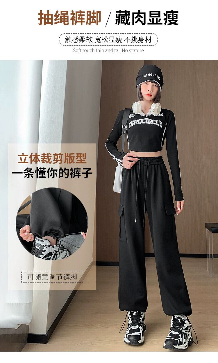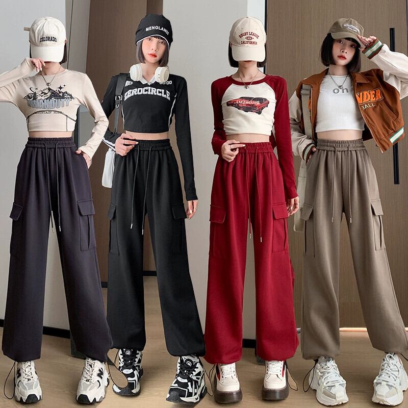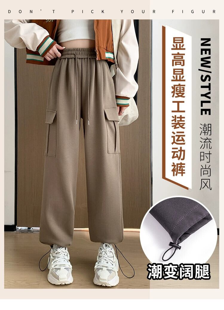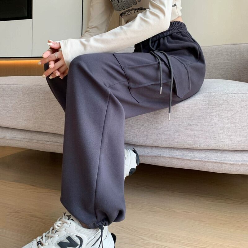 アメリカンスタイルのストレートレッグレギンスオーバーオールレディース、春と秋のルーズカジュアルグレースポーツパンツ、ハイウエストドレープ、狭いワイドレッグパンツ スプリング 春物 オータム 秋物 7460040604012010 | framboise21