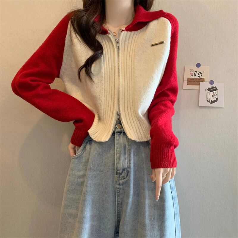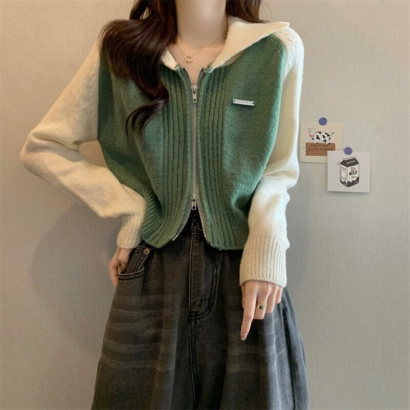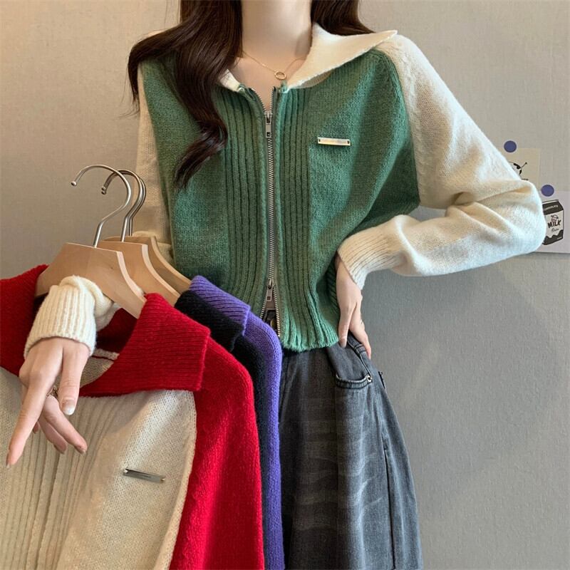 ショートラグランスリーブカーディガンセータージャケットレディース、秋と冬のアメリカンレトロデザイン、ルーズアウターウェアラペルセーター オータム 秋物 ウィンター 冬物 7460070272733322