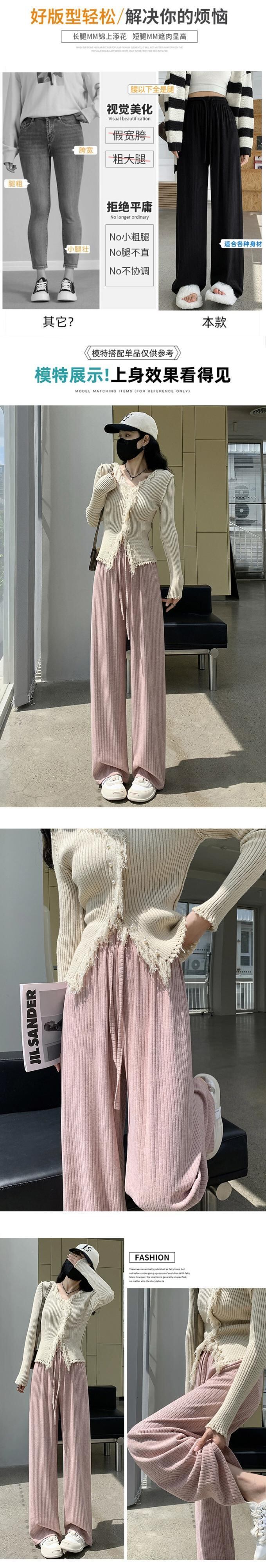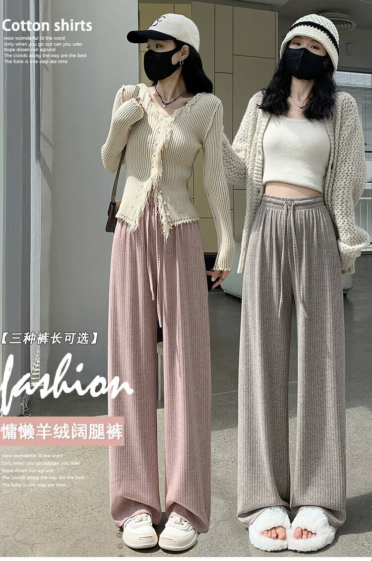 厚いカシミアニットワイドレッグパンツの女性の秋冬 2023 新しいルーズスリミングハイウエストストレートカジュアルパンツ オータム 秋物 ウィンター 冬物 7460081884638283 | framboise21