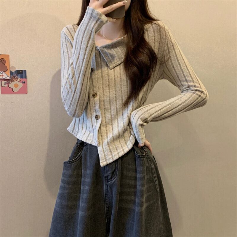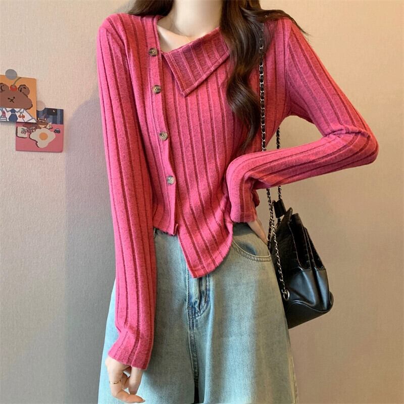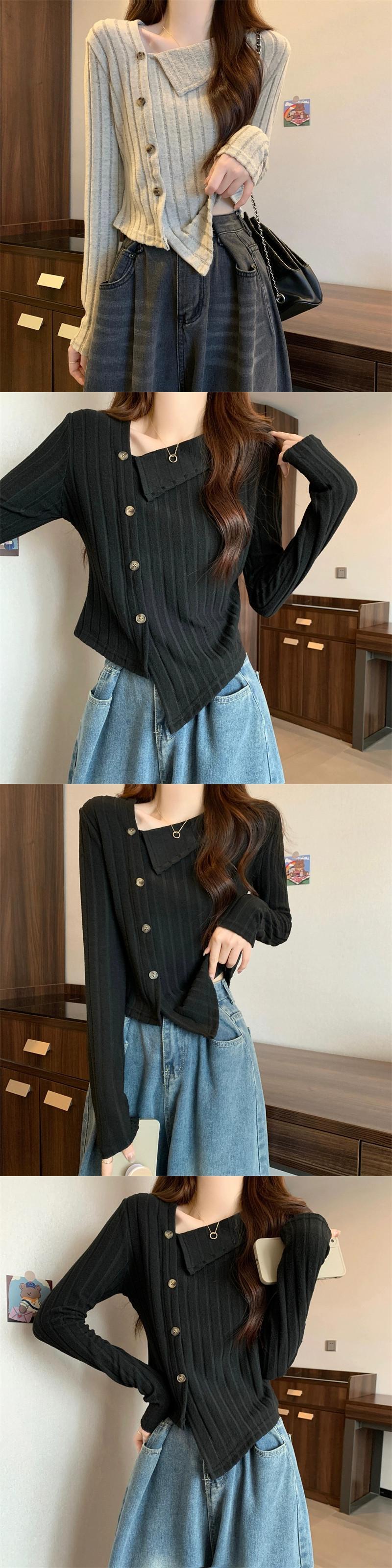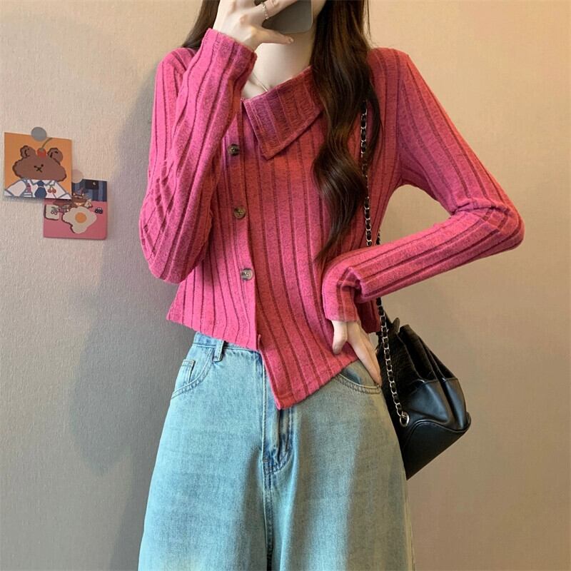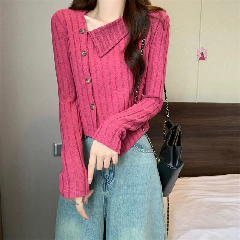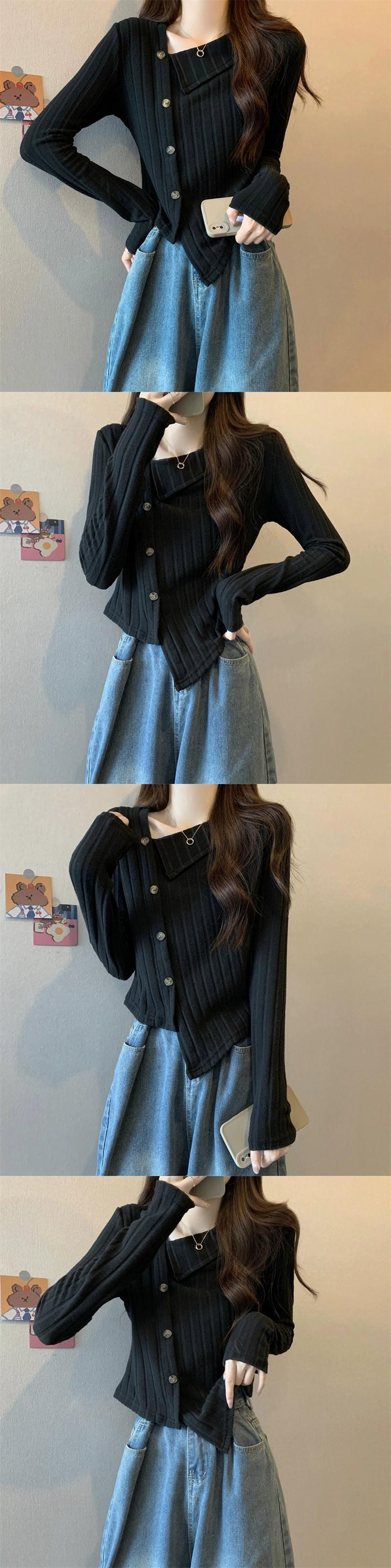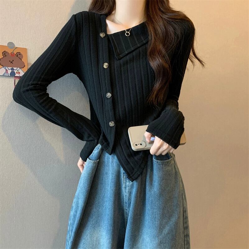 ファッショナブルなデザイン、ウエスタンスタイル、スリムフィットの黒の長袖トップを備えた秋と冬の不規則な短いニットボトムシャツの女性 ショート ロング ブラック オータム 秋物 ウィンター 冬物 7460064803271166 | framboise21