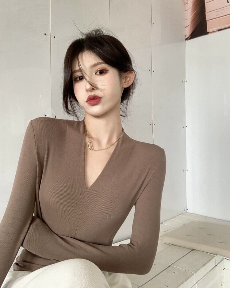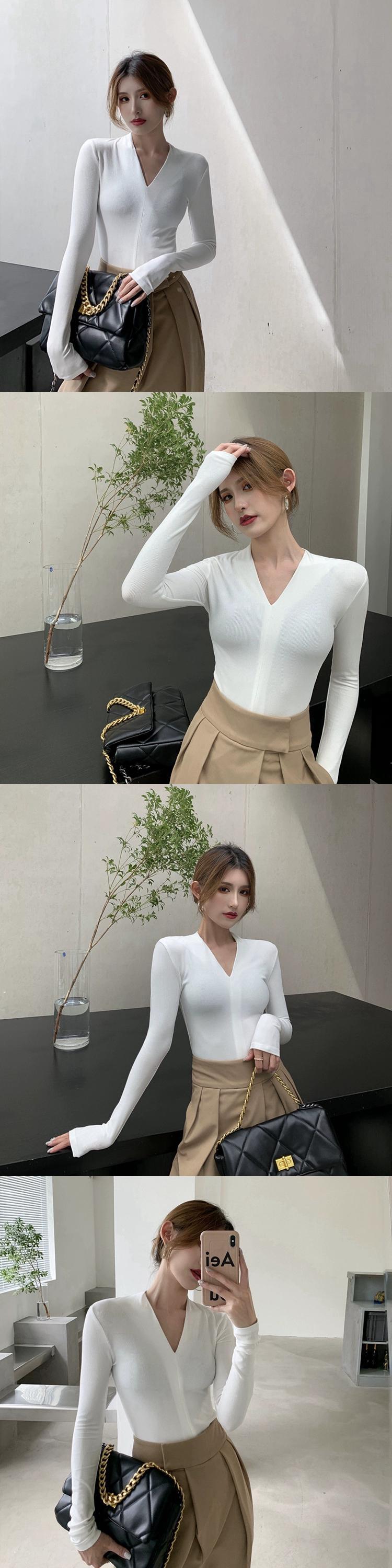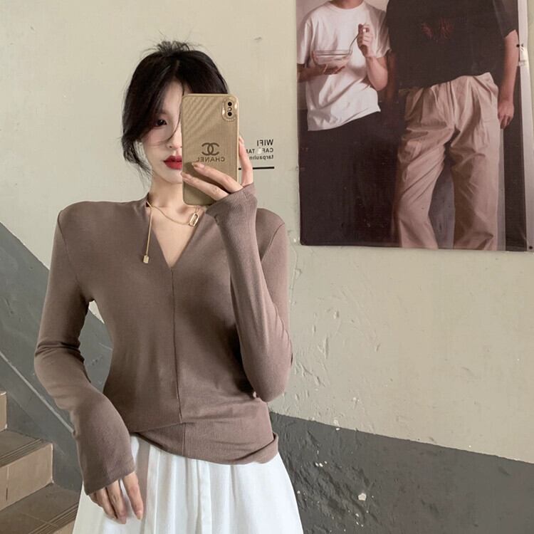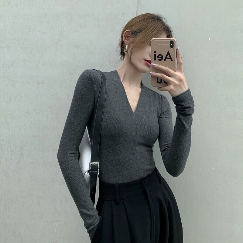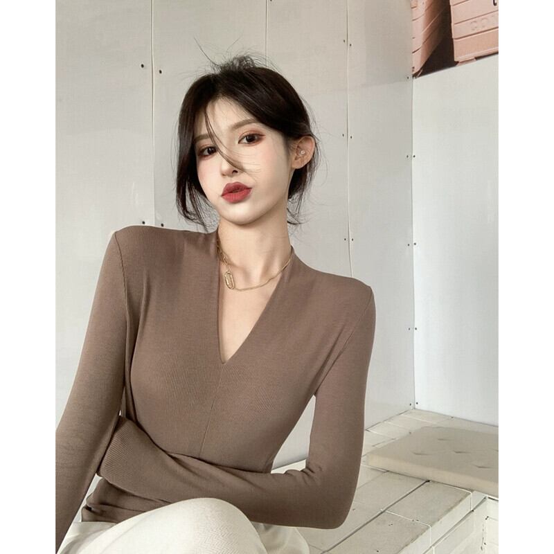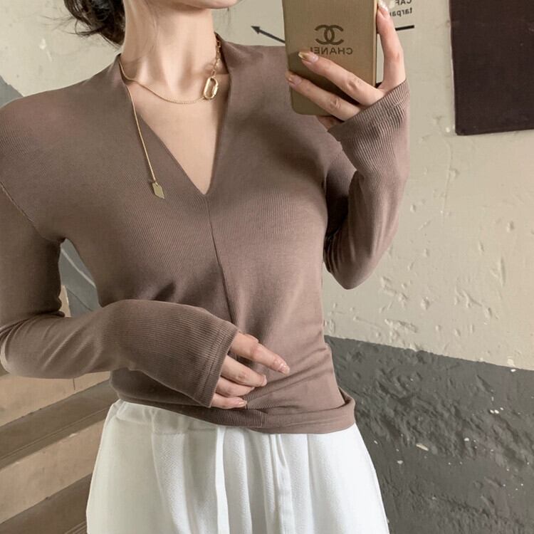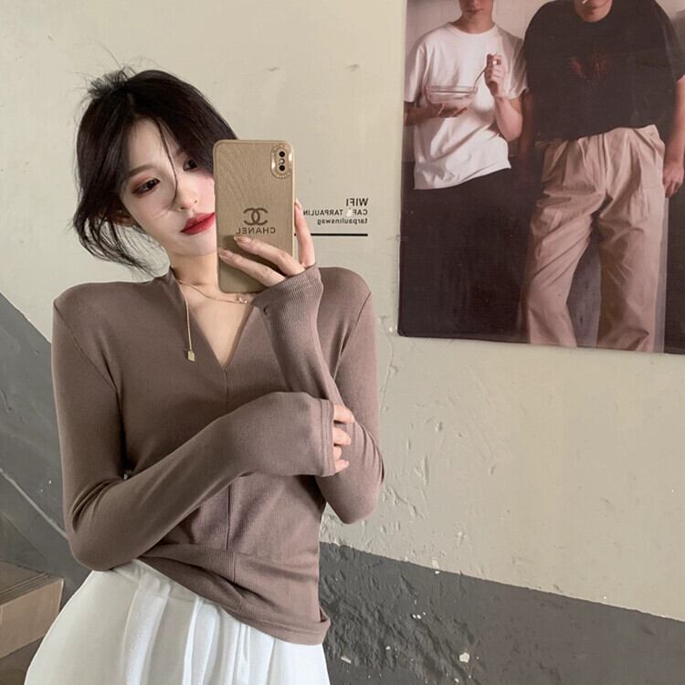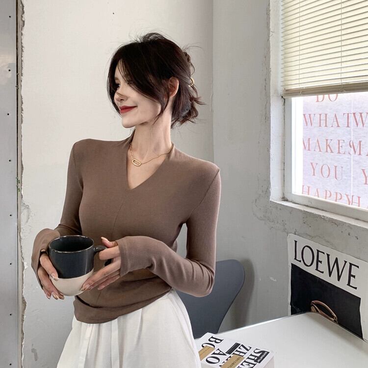 秋と冬の厚いベルベットのローカラーボトムシャツレディース、ウエスタンスタイルのぴったりとしたショートトップ、スリムフィットのスレッド長袖Tシャツ ロング オータム 秋物 ウィンター 冬物 7460094946359316 | framboise21