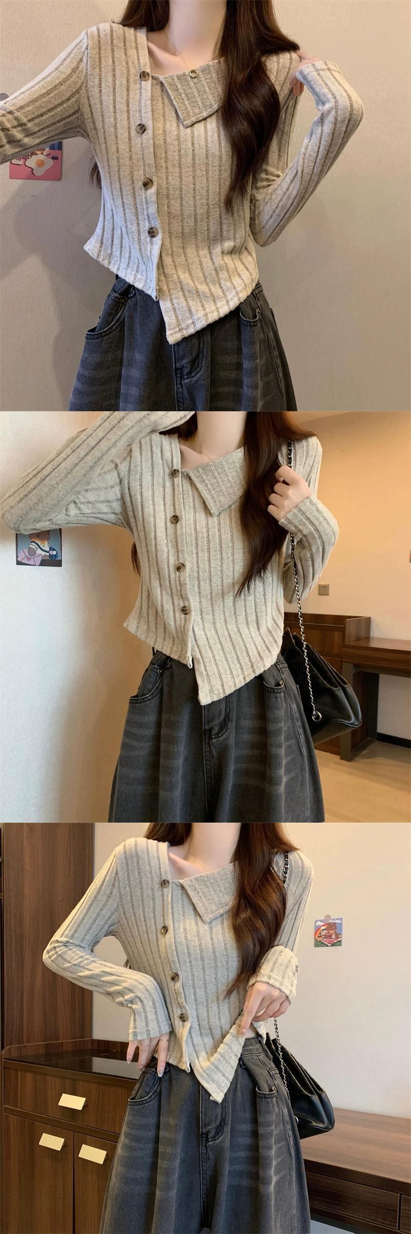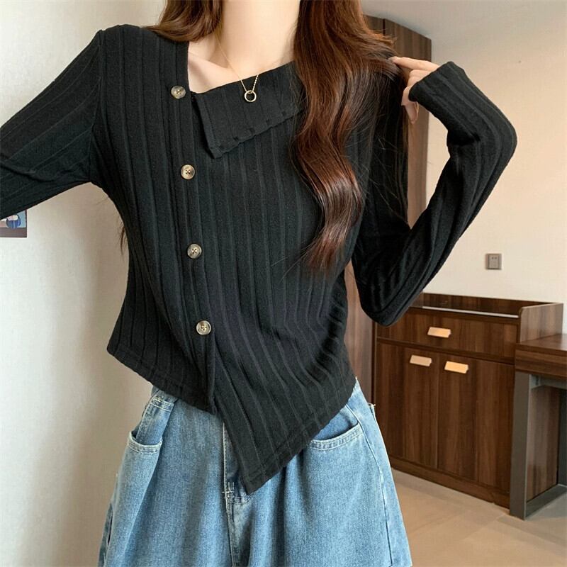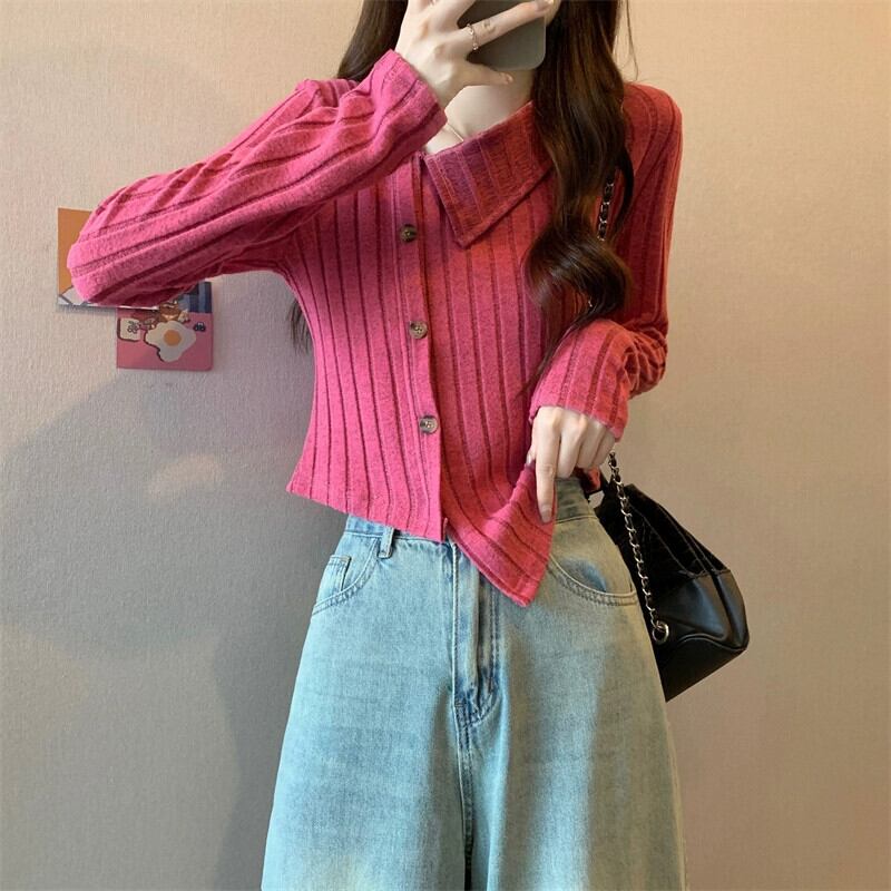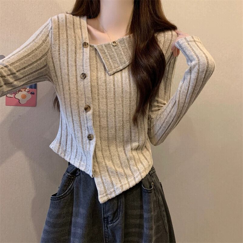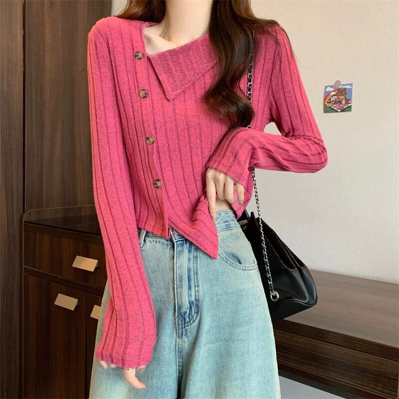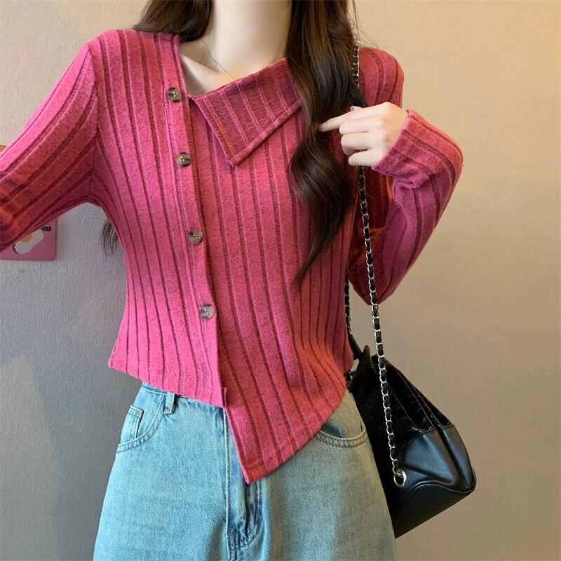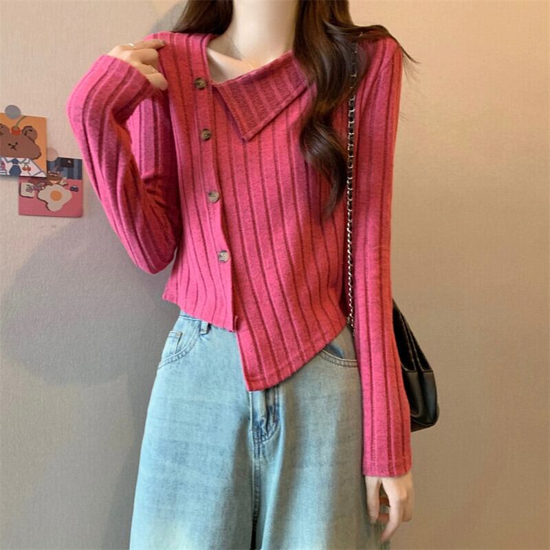 不規則な短い長袖ボトリングシャツの女性の秋と冬のフレンチスリムフィット、Vネックセーターニットカーディガン ショート ロング オータム 秋物 ウィンター 冬物 7460016459022129 | framboise21