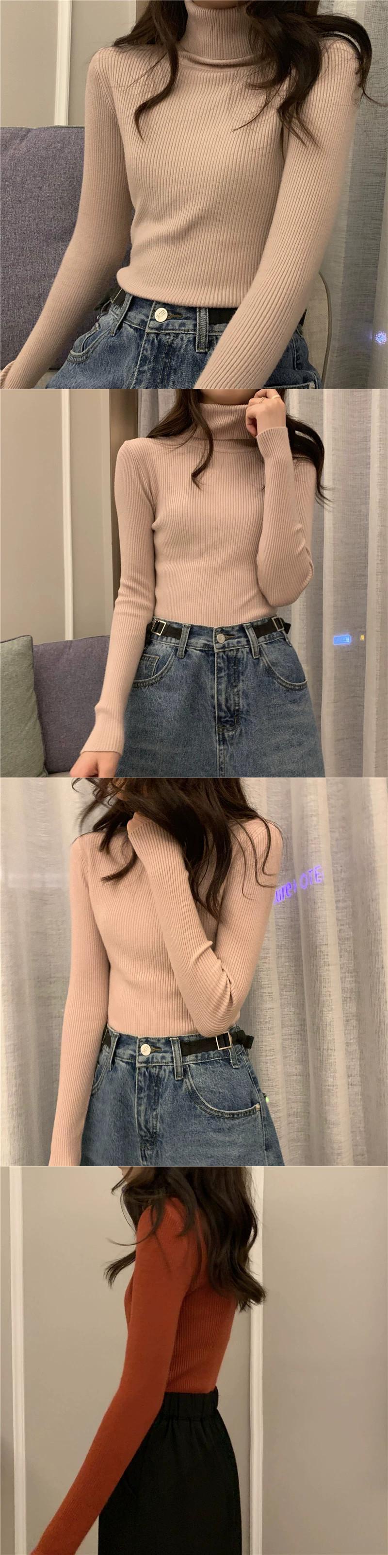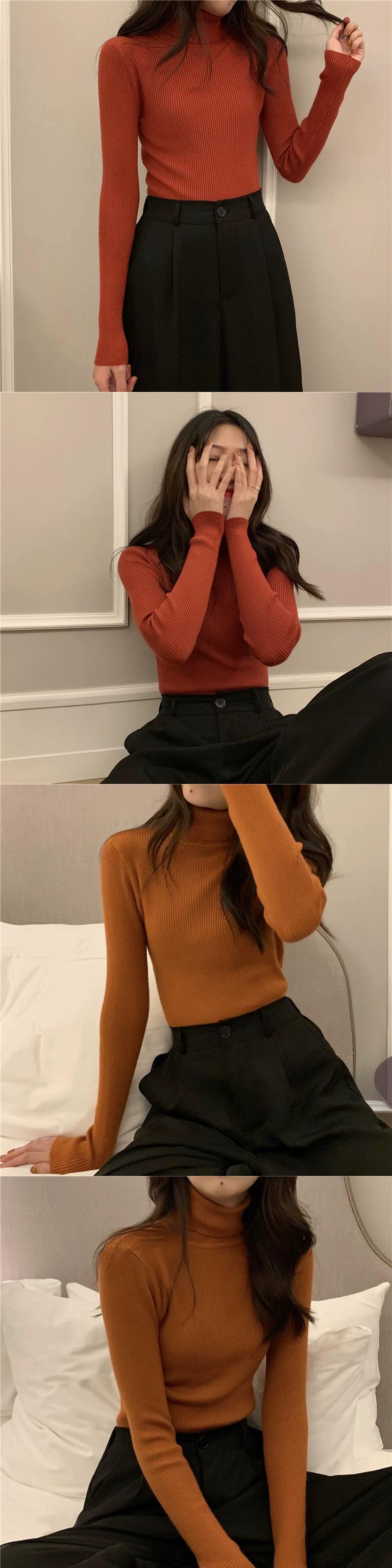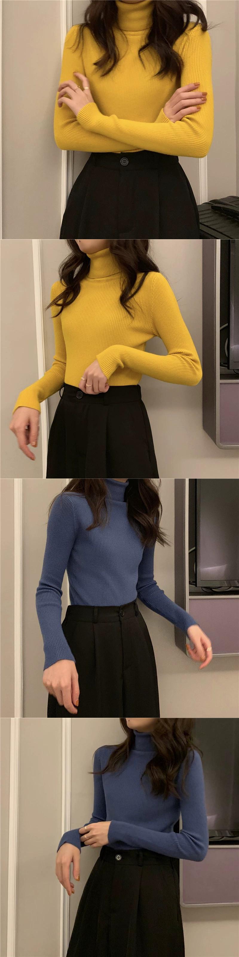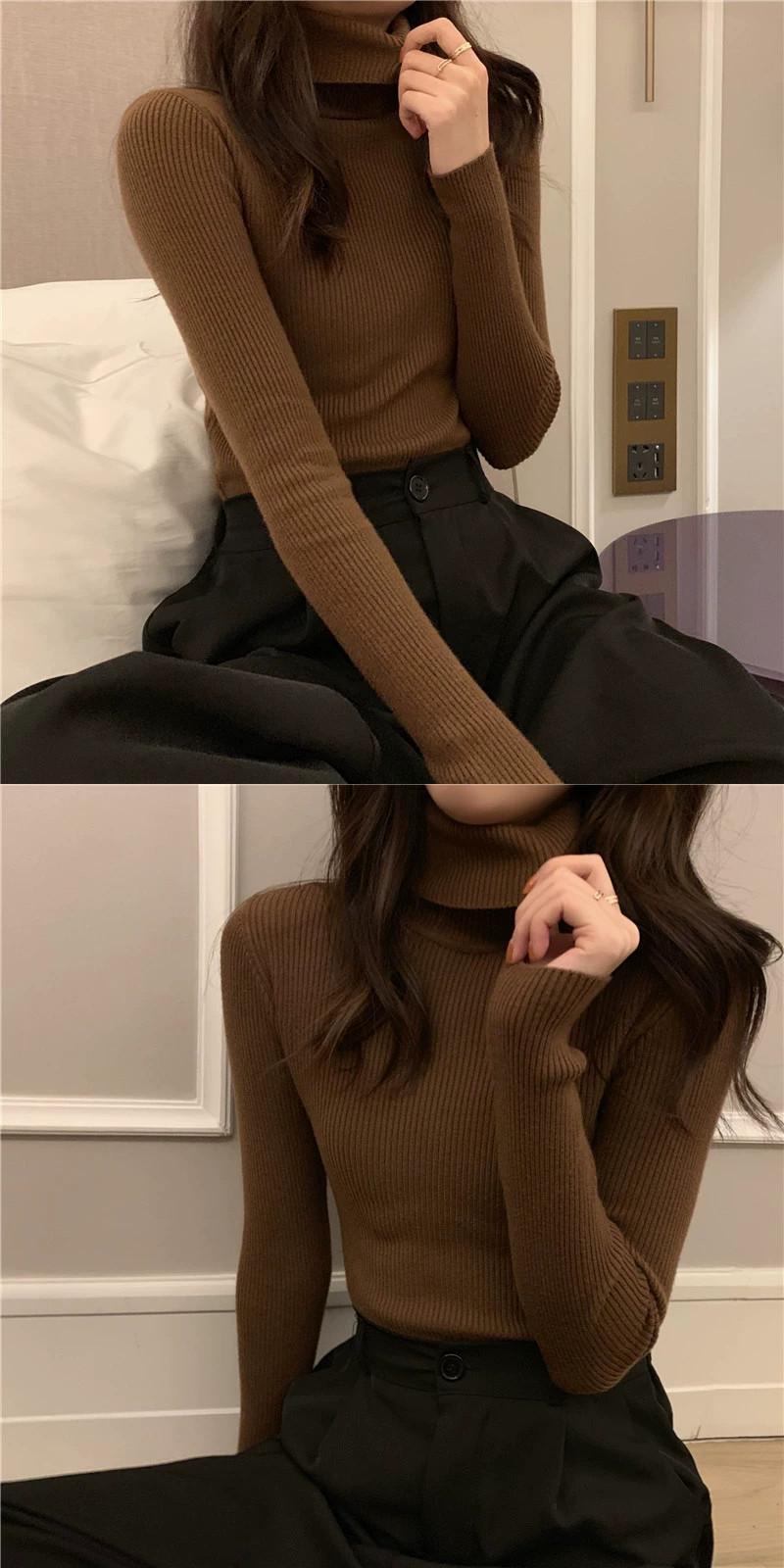 ハイネックのボトムシャツのスタック、2023年の新しい女性の秋冬スタイル、スタイリッシュでスリムフィット、ベーシックな長袖ニットセーター付き ロング オータム 秋物 ウィンター 冬物 7460051422581677 | framboise21