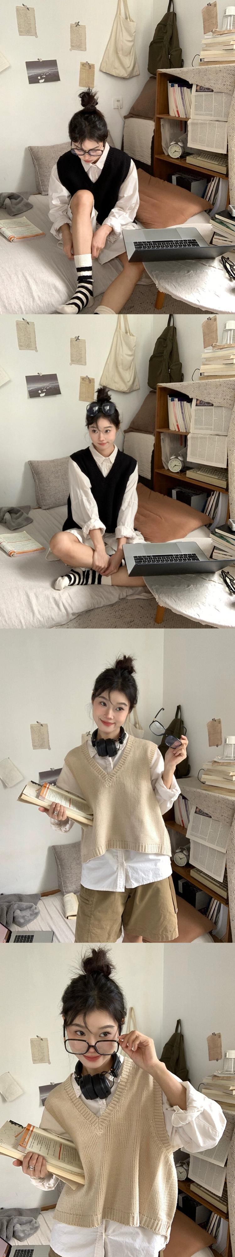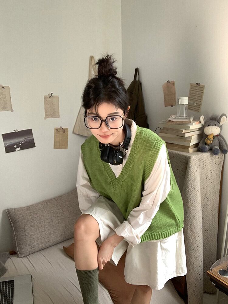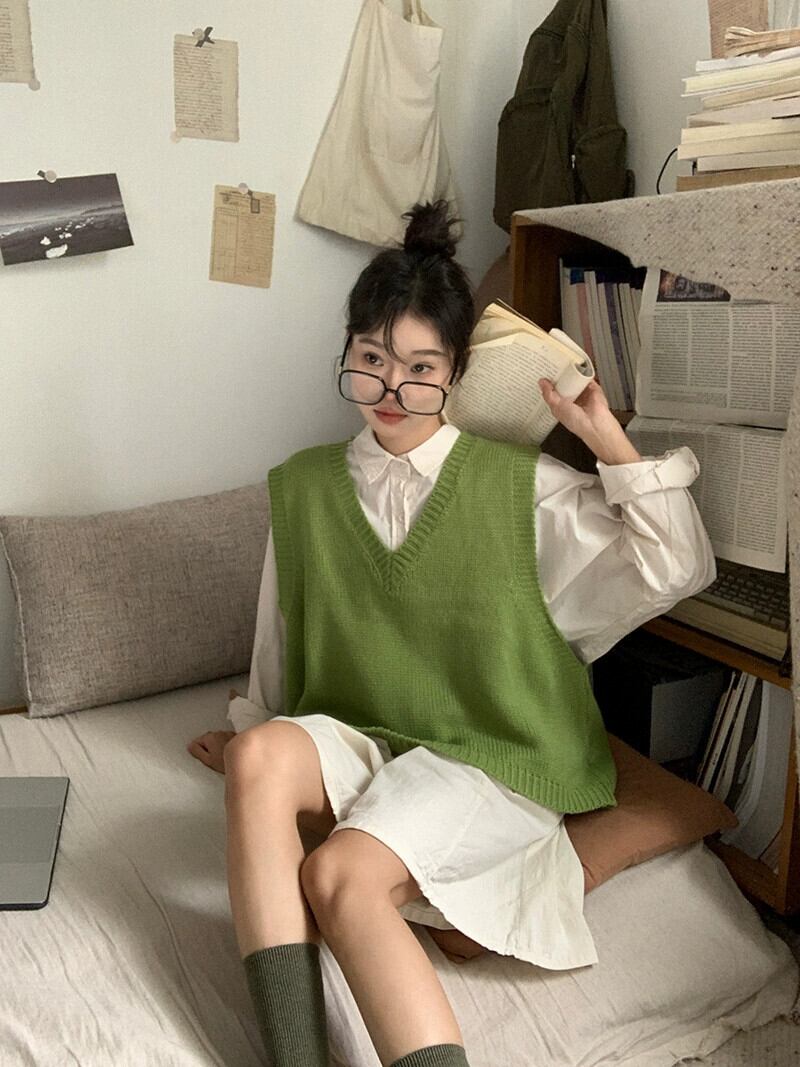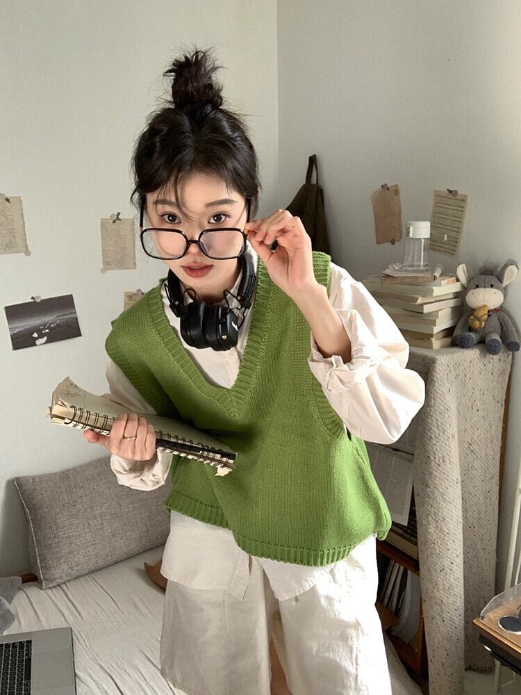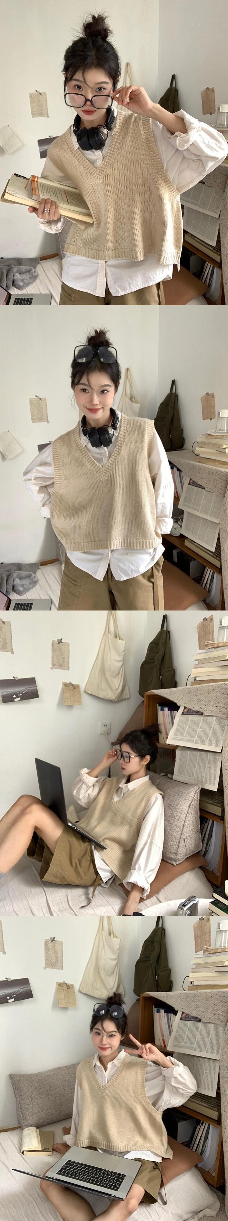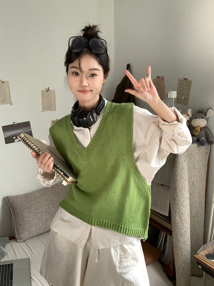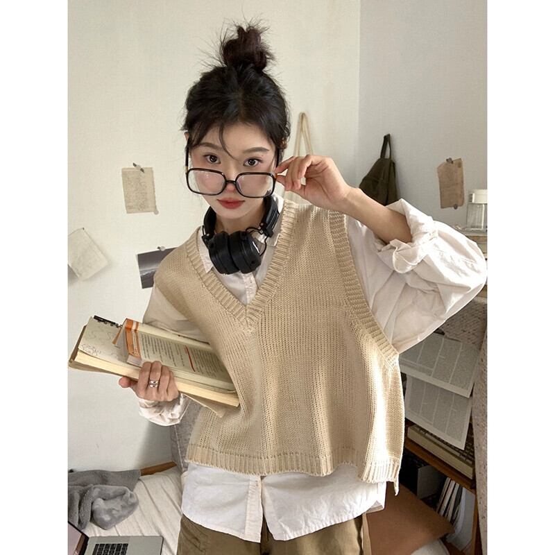 ショルダーレスノースリーブニットベストの女性、春と秋のスタイル、ルーズで怠惰なアウターレイヤリング、ショートVネックセーターの年齢軽減 スプリング 春物 オータム 秋物 7460021521818761 | framboise21