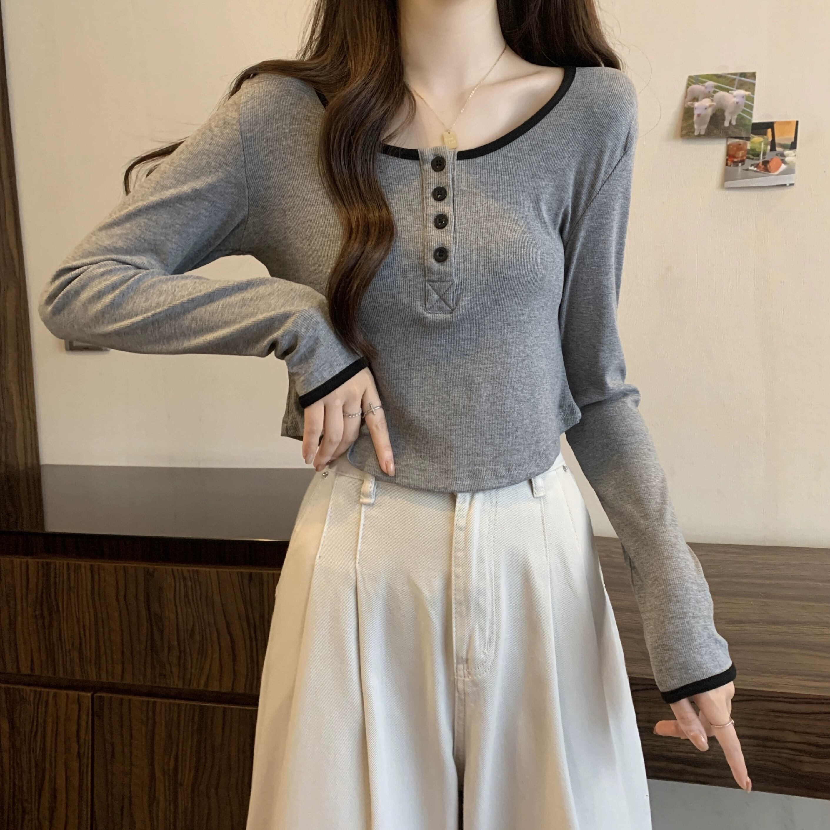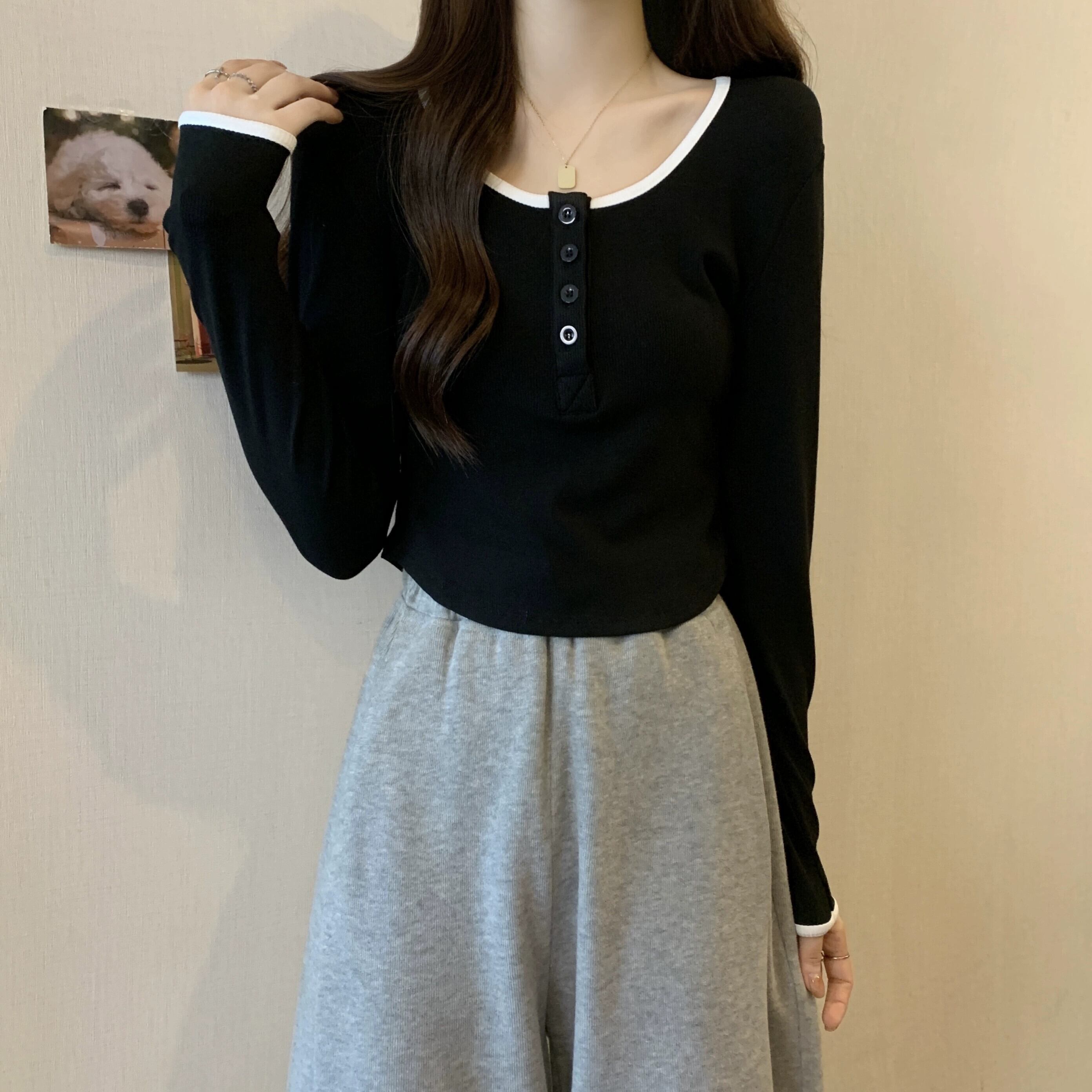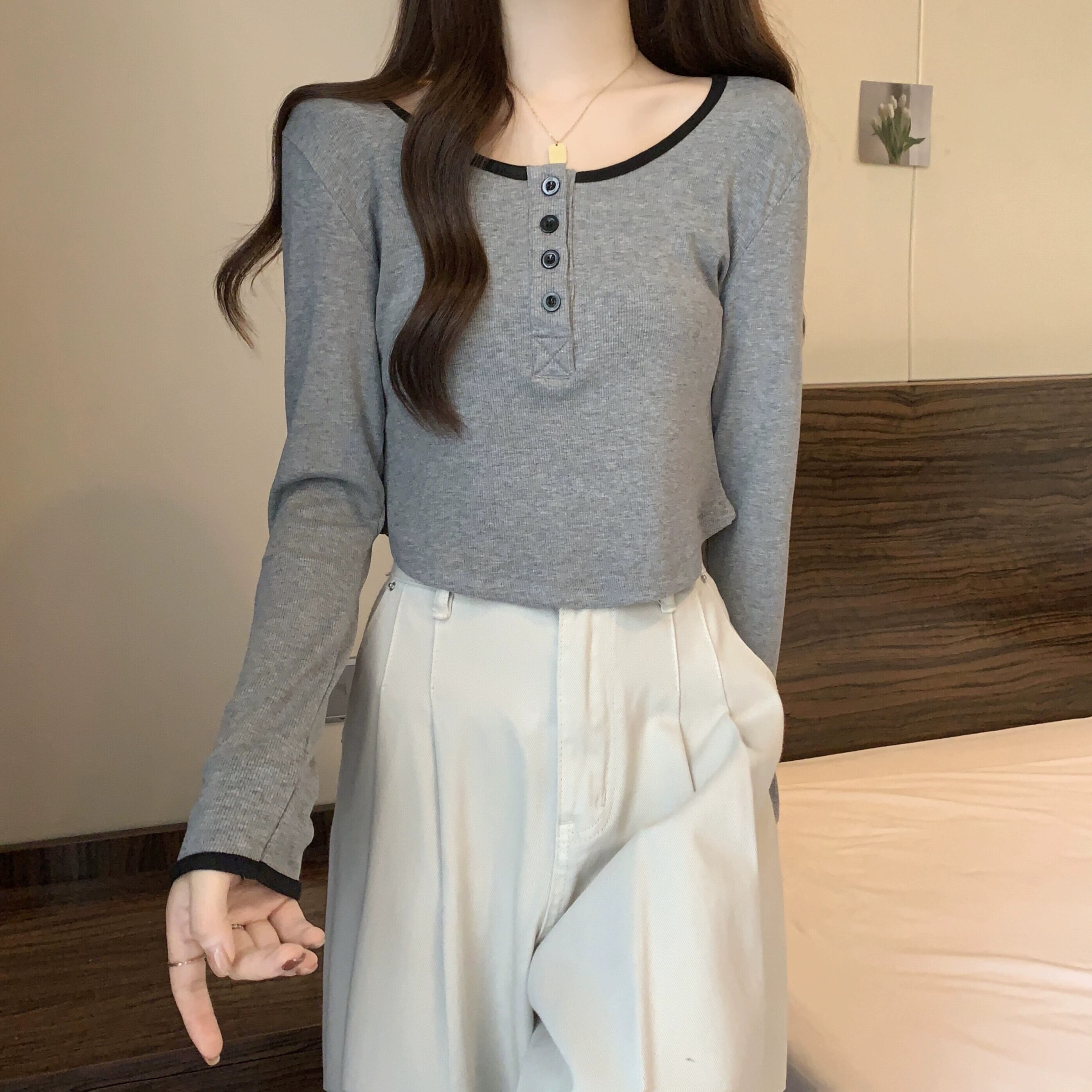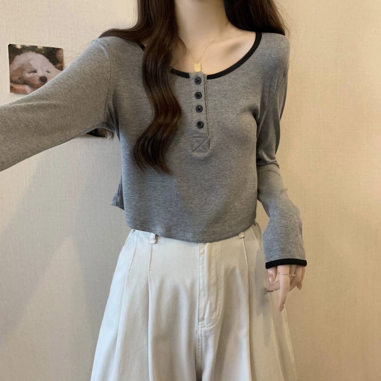 春、秋、冬用の小さな半袖長袖ボトムストップ、カーブした裾のスリムフィット、ラウンドネックTシャツ ショート ロング スプリング 春物 オータム 秋物 ウィンター 冬物 Oネック 7460078519655993 | framboise21