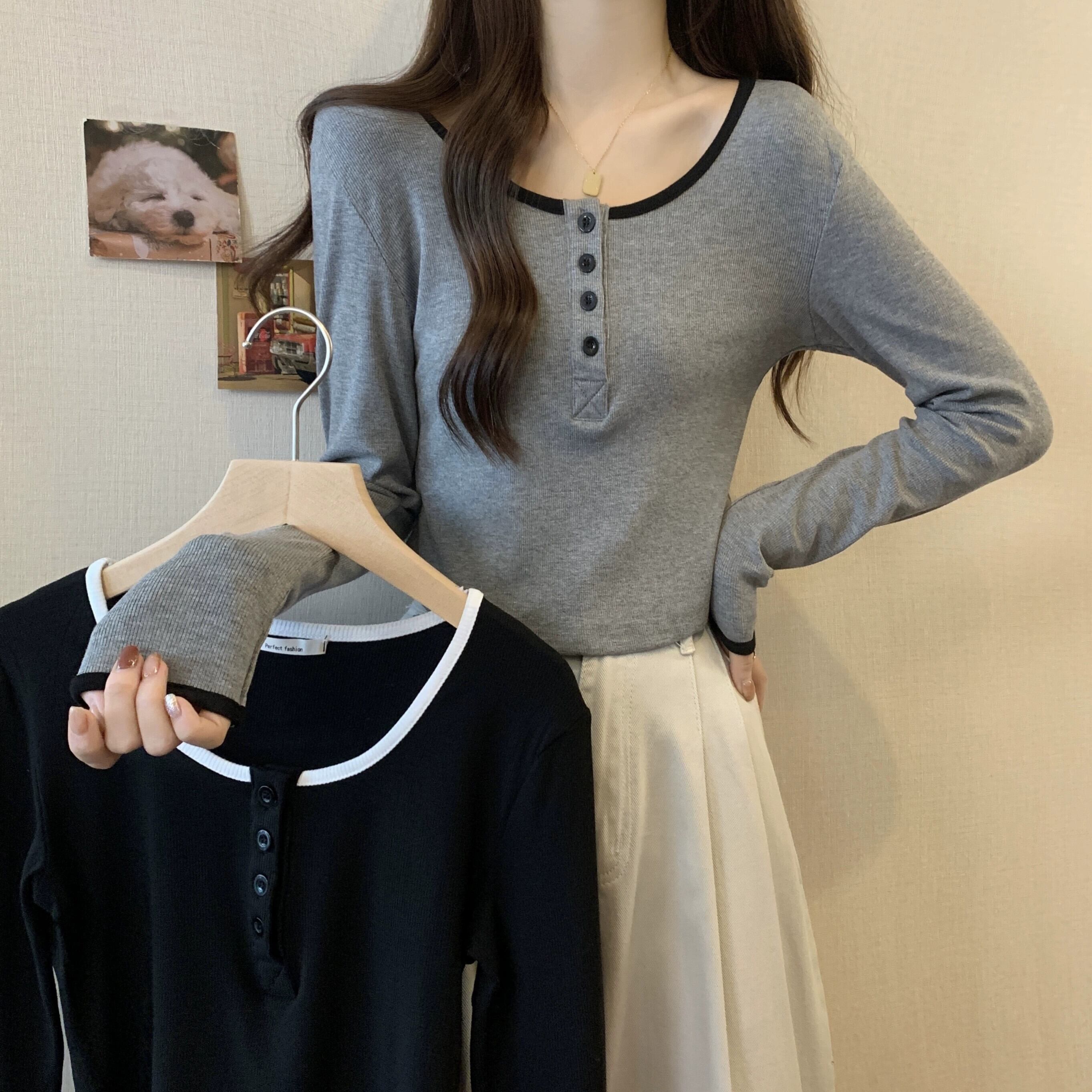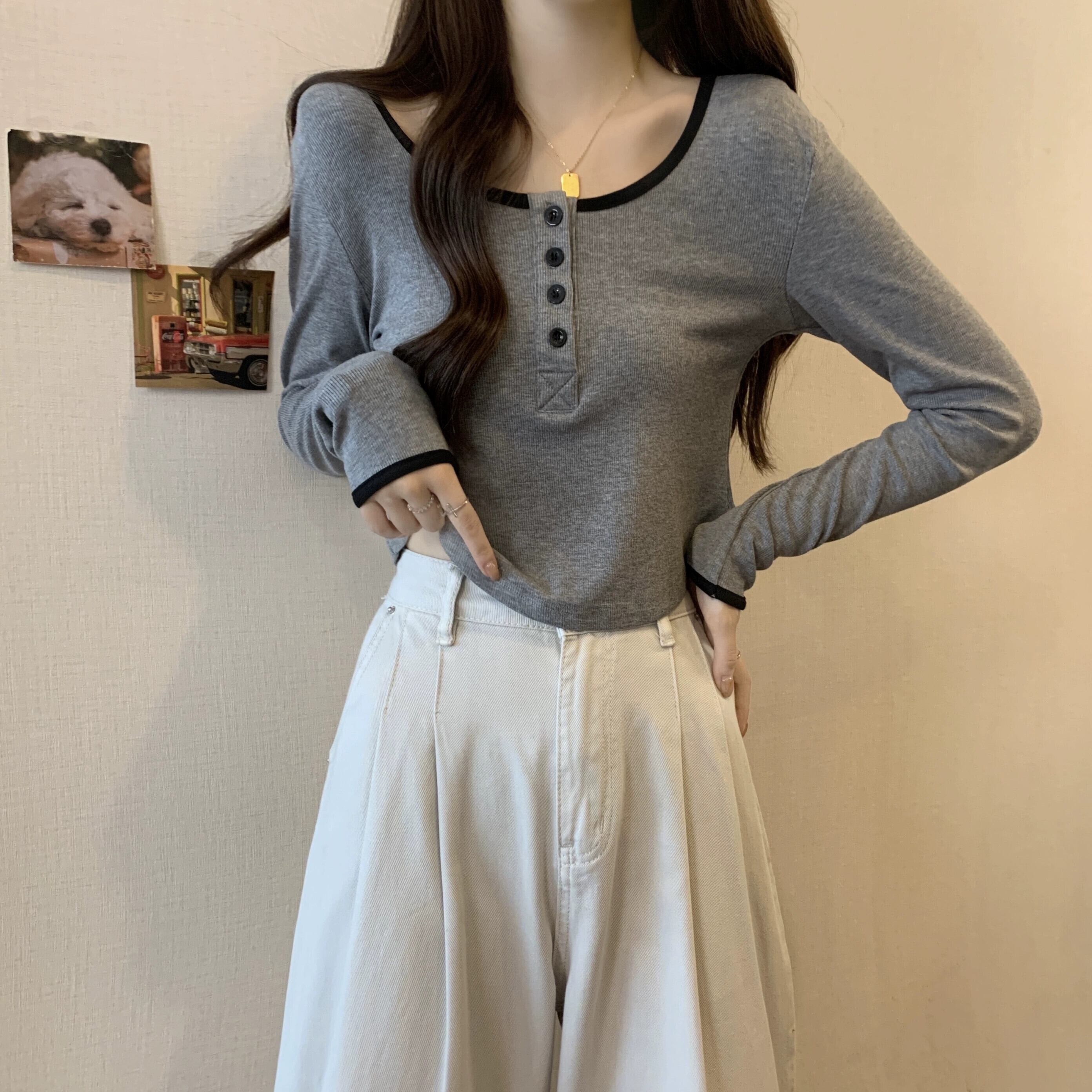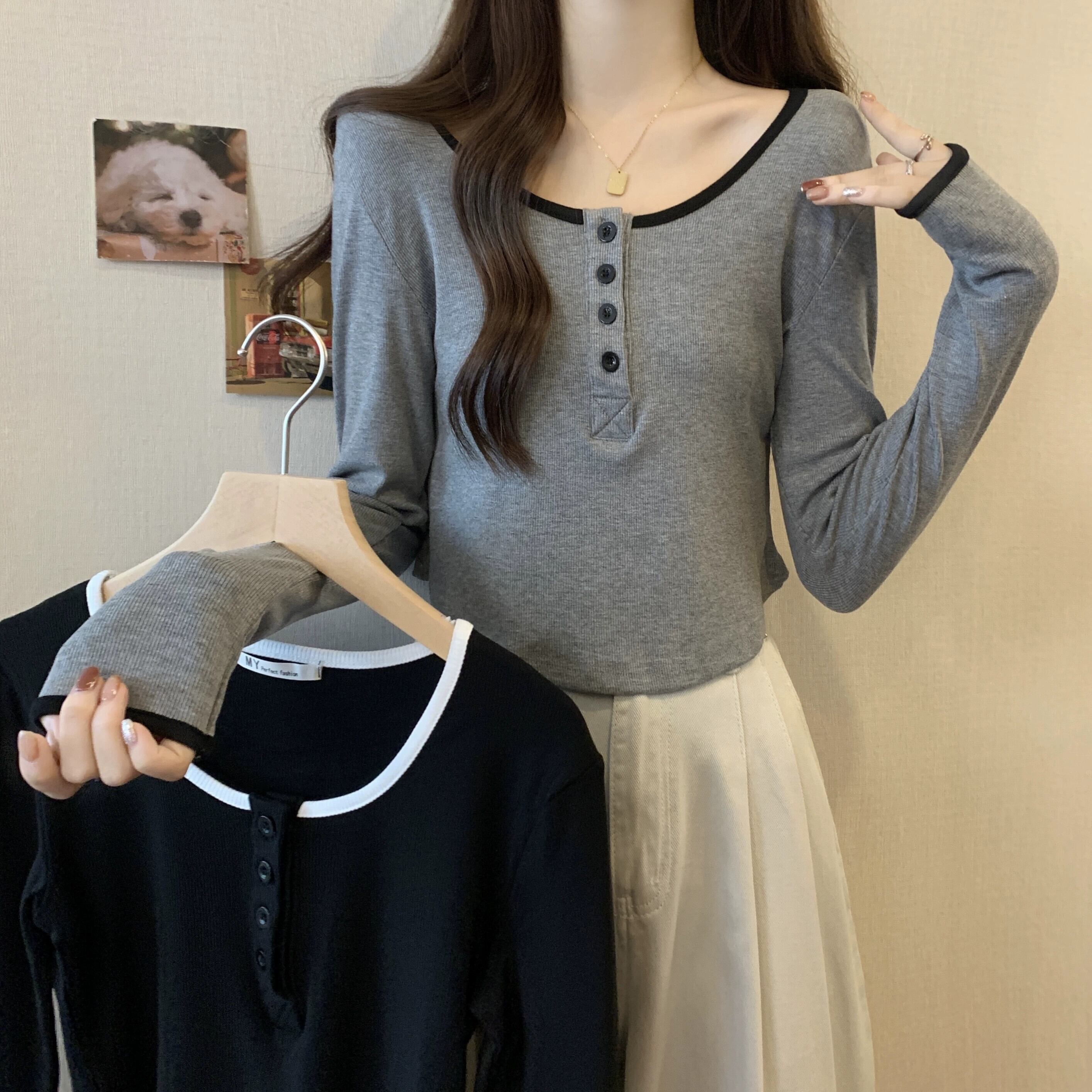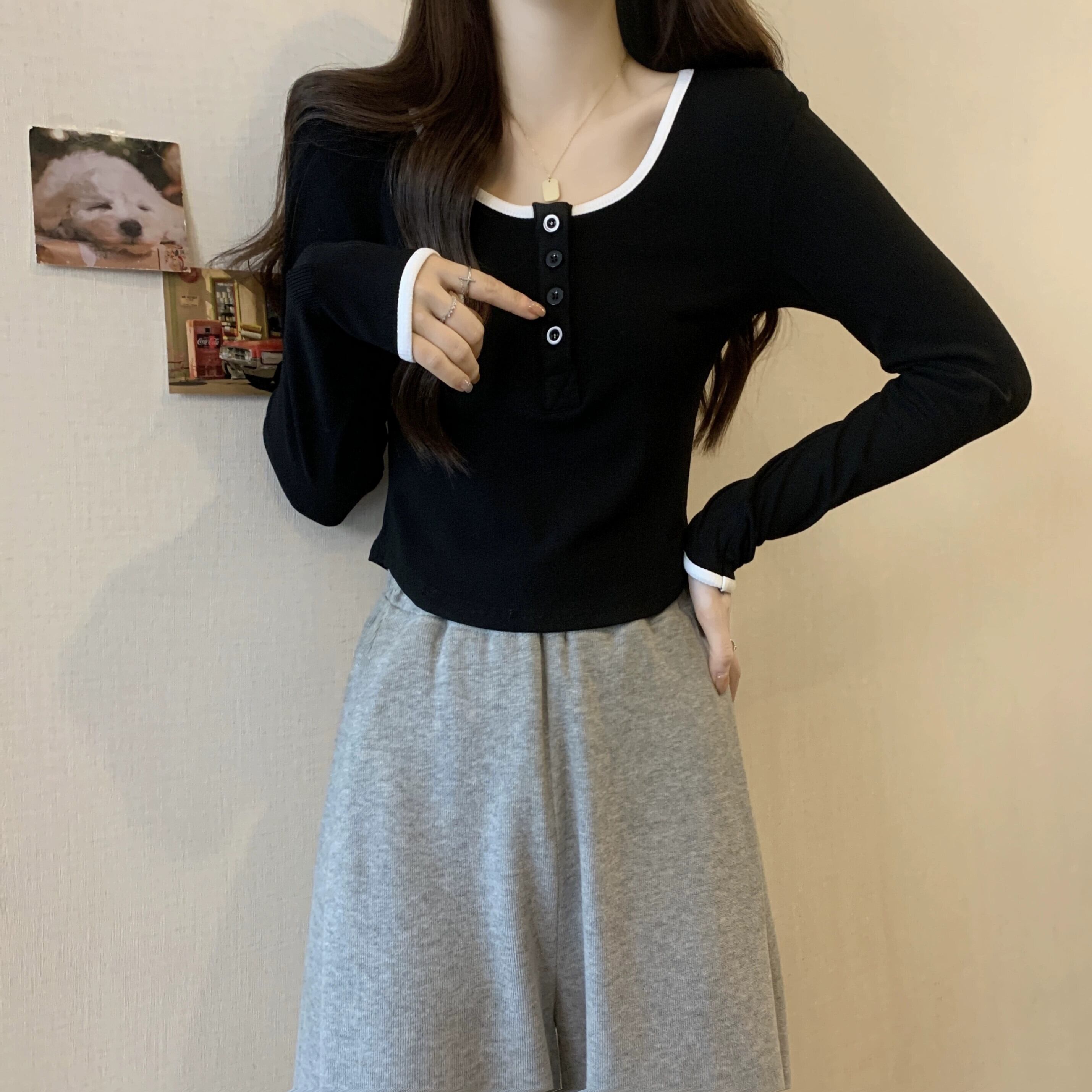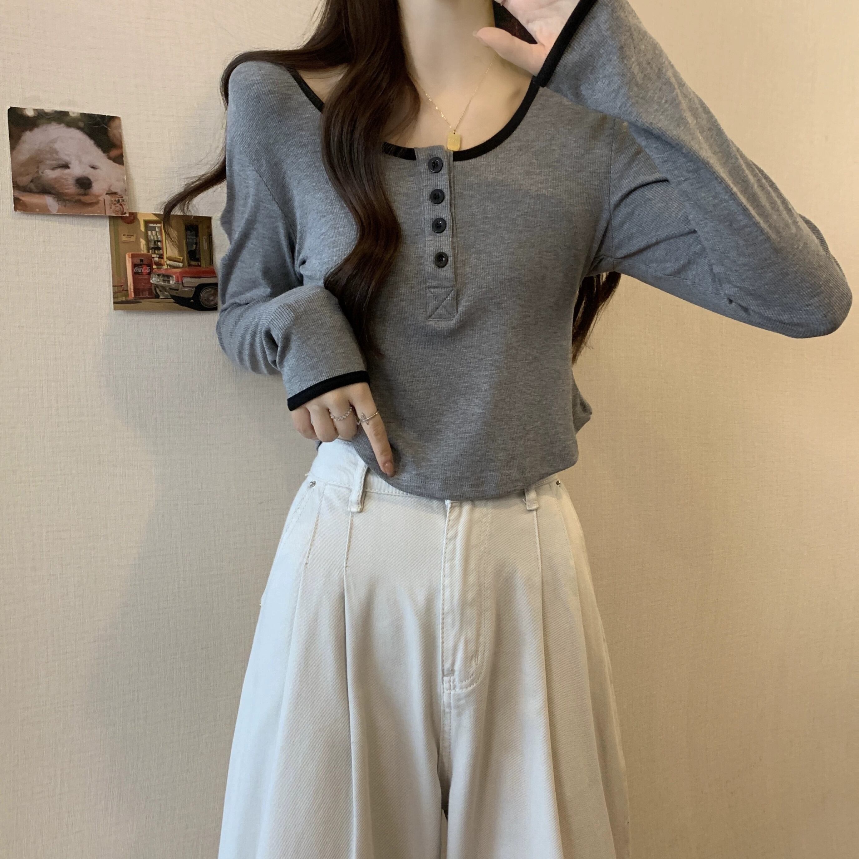 春、秋、冬用の小さな半袖長袖ボトムストップ、カーブした裾のスリムフィット、ラウンドネックTシャツ ショート ロング スプリング 春物 オータム 秋物 ウィンター 冬物 Oネック 7460078519655993 | framboise21