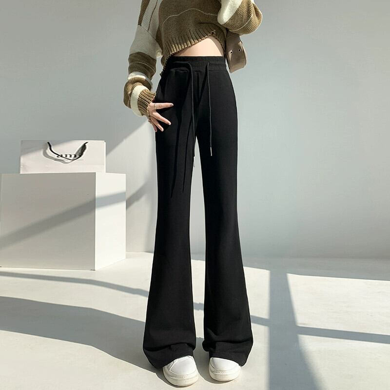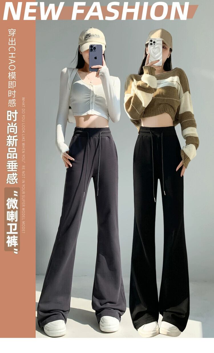 黒ハイウエストフレアパンツ女性春と秋 2023 新しいカジュアルパンツルーズストレートドレープ床長さのスポーツパンツ レッド ブラック スプリング 春物 オータム 秋物 7460090895565410 | framboise21