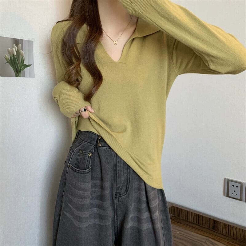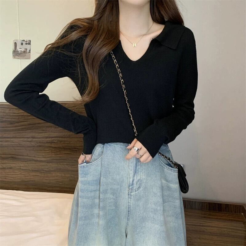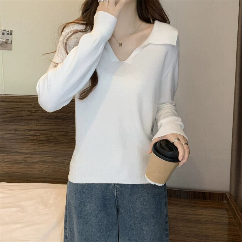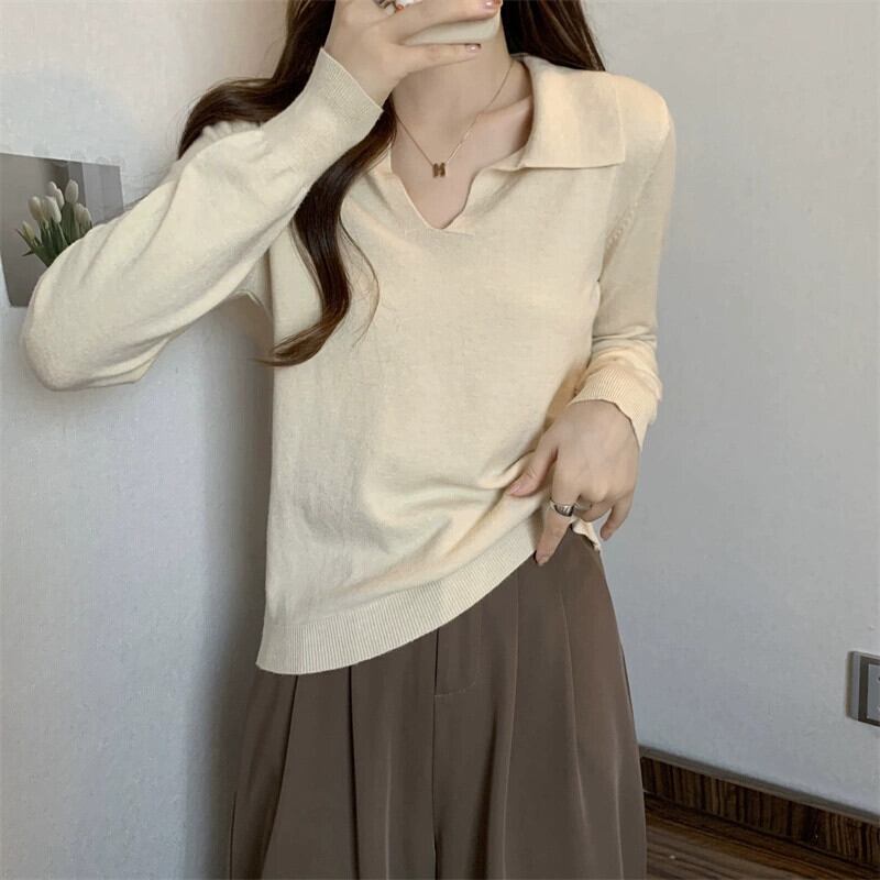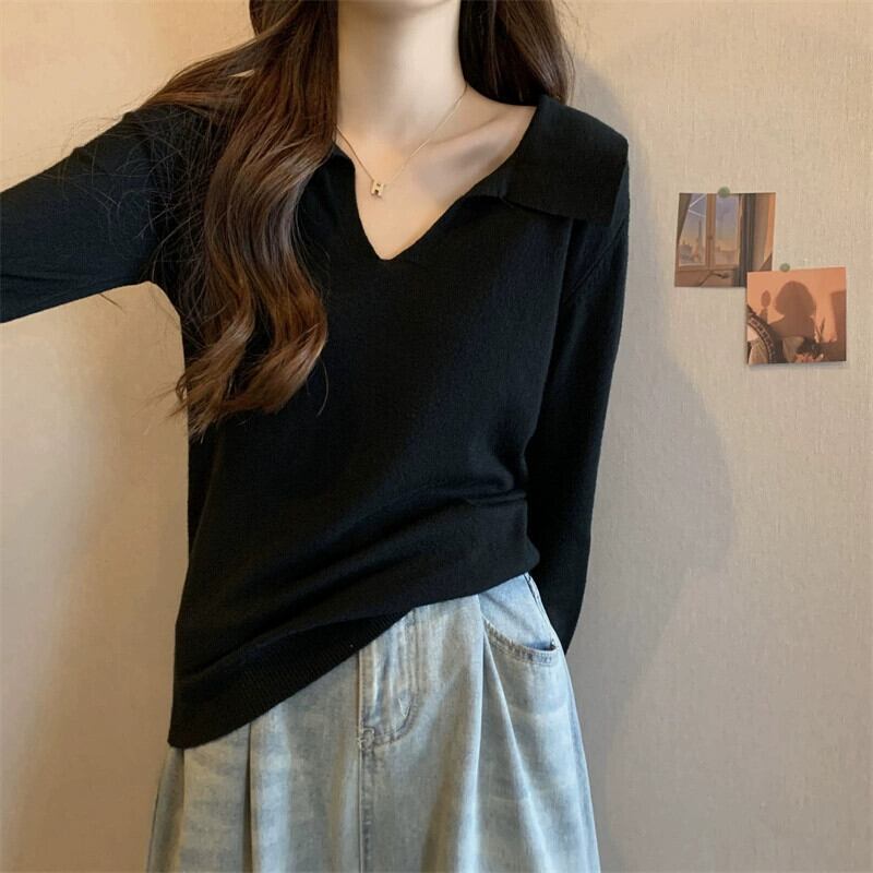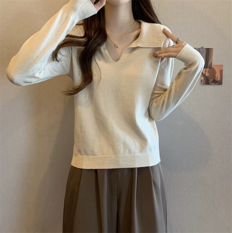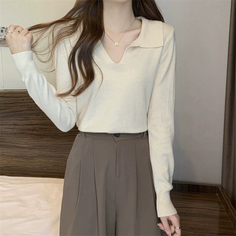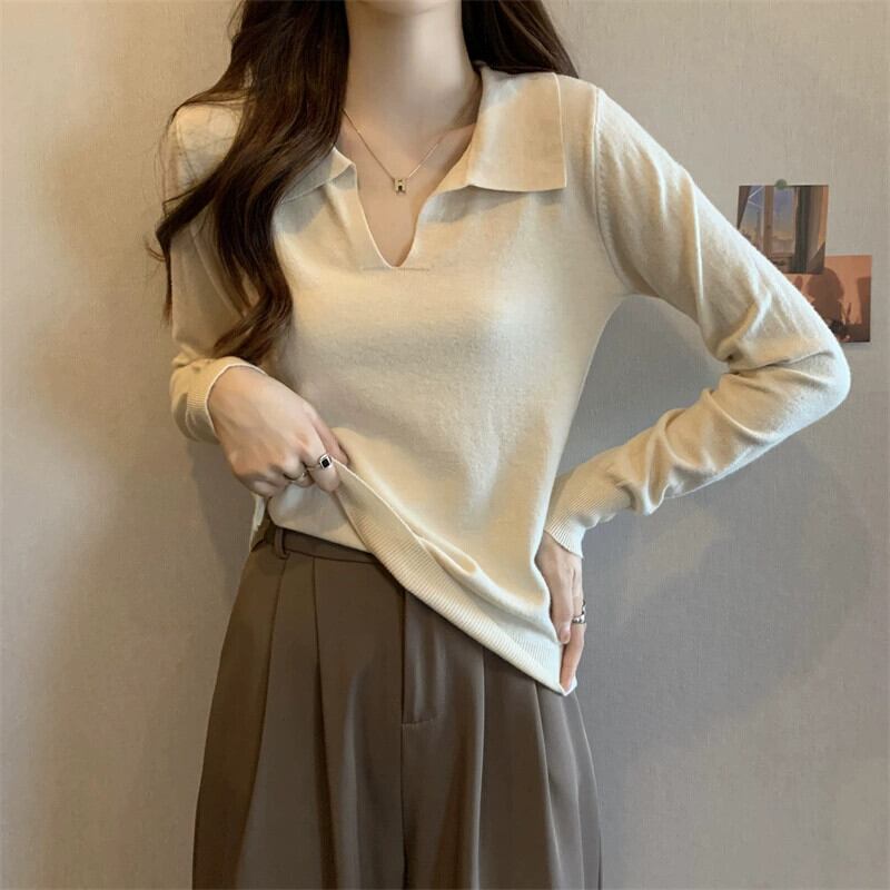 ポロカラーニットボトシャツ女性の秋と冬 2023 新しいファッショナブルなスタイルルーズインナーウェアスリムラペルセータートレンド オータム 秋物 ウィンター 冬物 7460031504051917 | framboise21