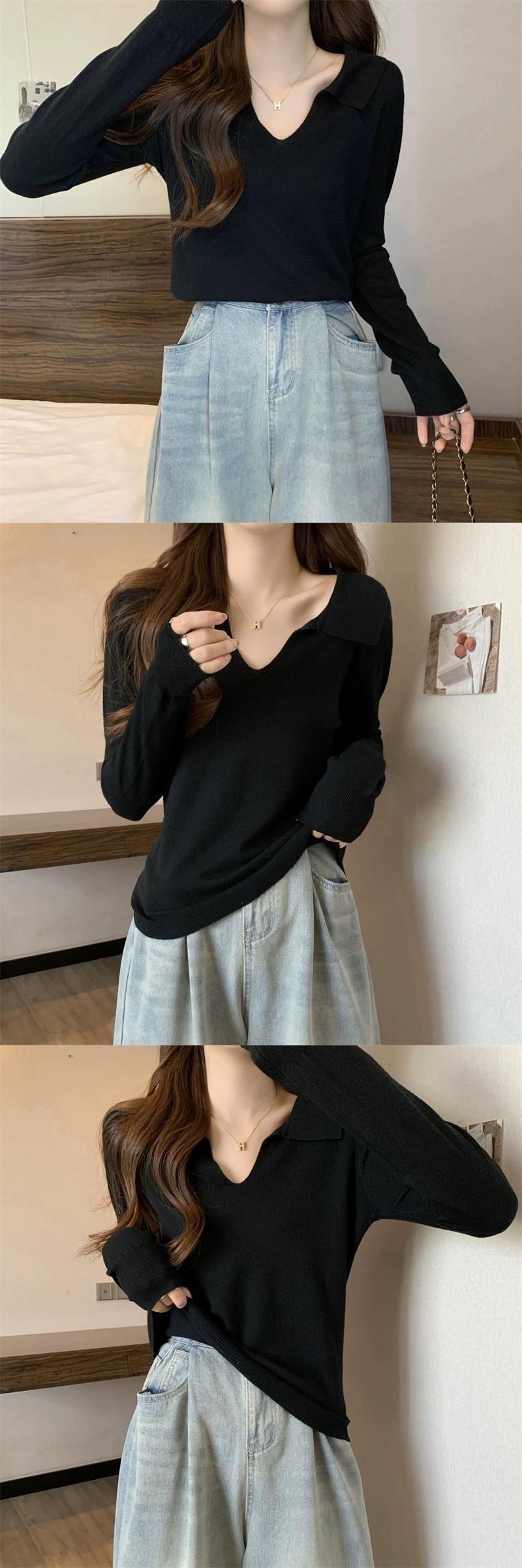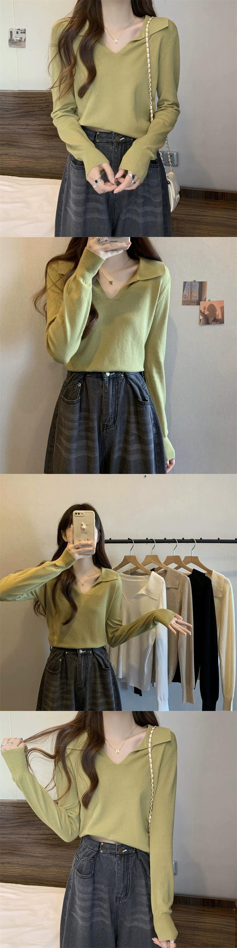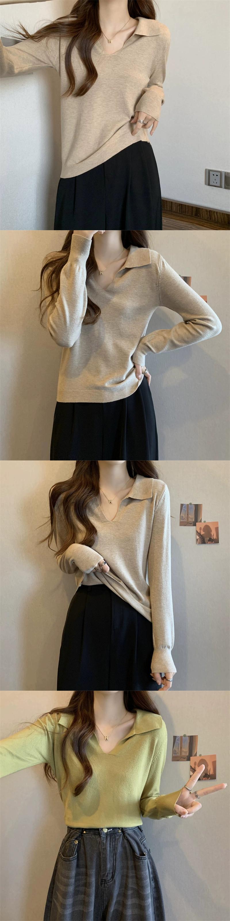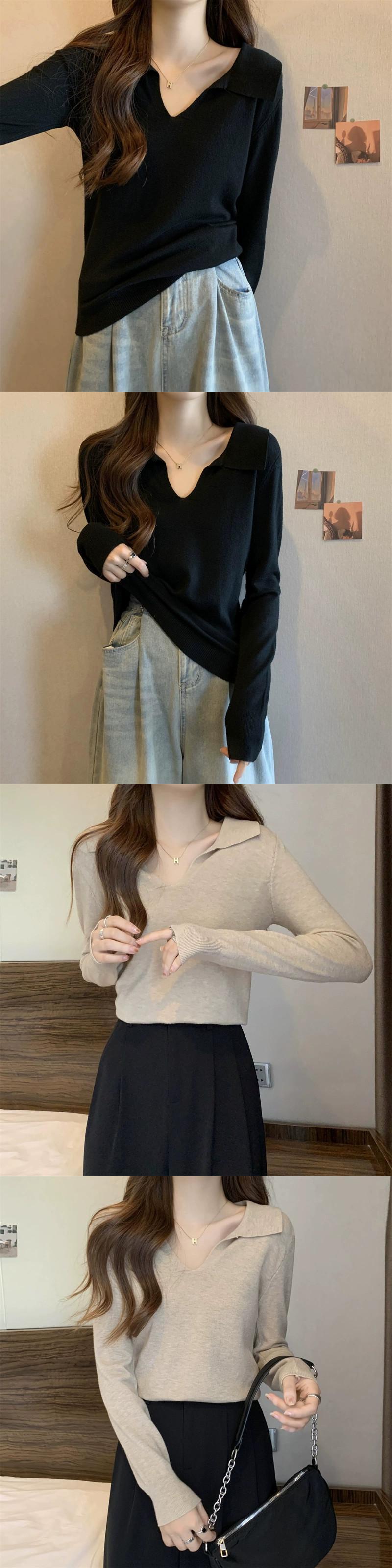 ポロカラーニットボトシャツ女性の秋と冬 2023 新しいファッショナブルなスタイルルーズインナーウェアスリムラペルセータートレンド オータム 秋物 ウィンター 冬物 7460031504051917 | framboise21