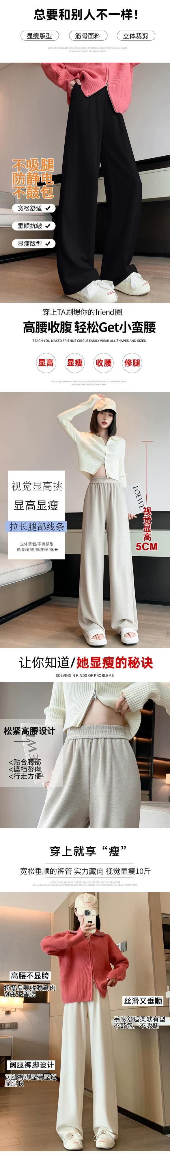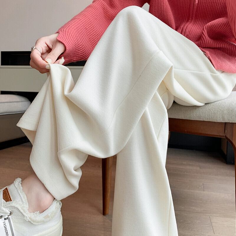 ソフトワックスタオルパンツ女性、春と秋の怠惰なスタイルナローバージョンカシミアワイドレッグパンツハイウエストドレープストレートカジュアルフロアモップパンツ ハイウェスト スプリング 春物 オータム 秋物 ワイドパンツ 7460013067295550 | framboise21