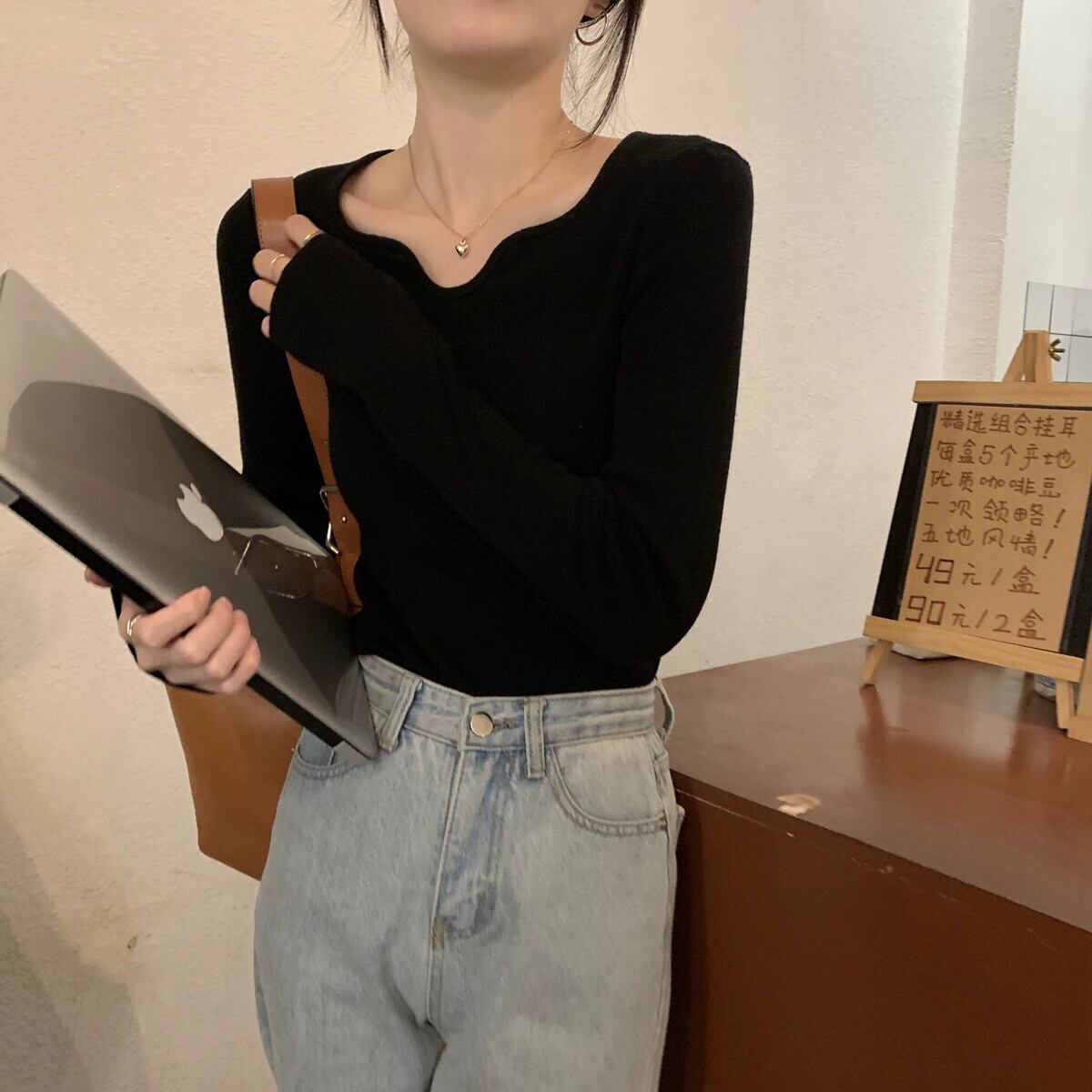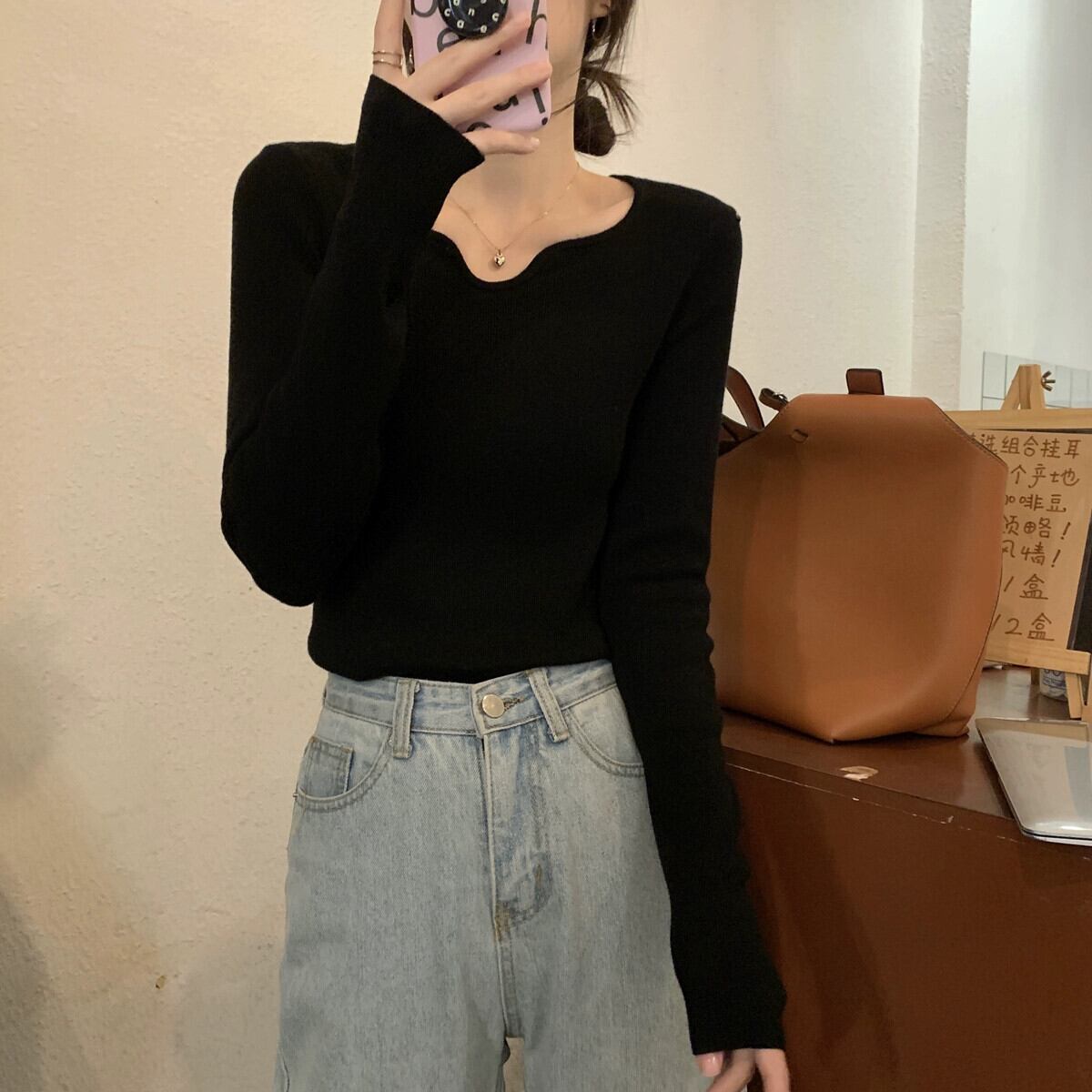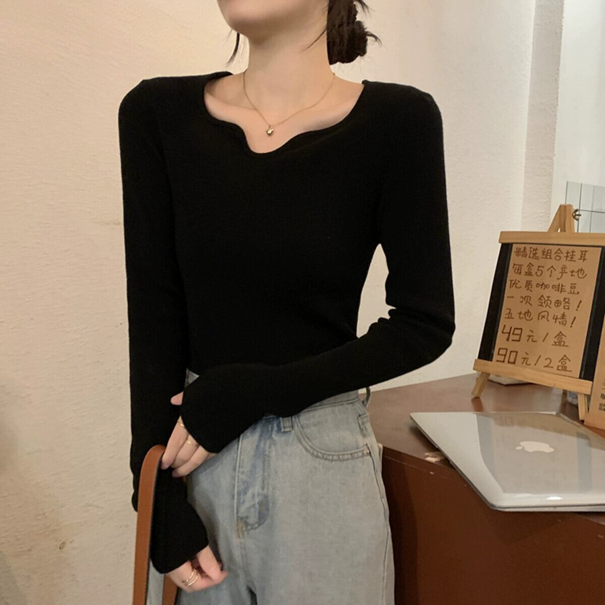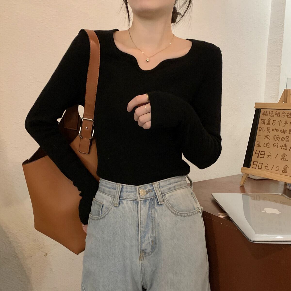 コートの中にVネックボトリングシャツを着た女性、秋冬フレンチファッション、アインスタイル、着痩せ、鎖骨露出ニットセーター、アプリコット オータム 秋物 ウィンター 冬物 Vネック 7460022444480545 | framboise21