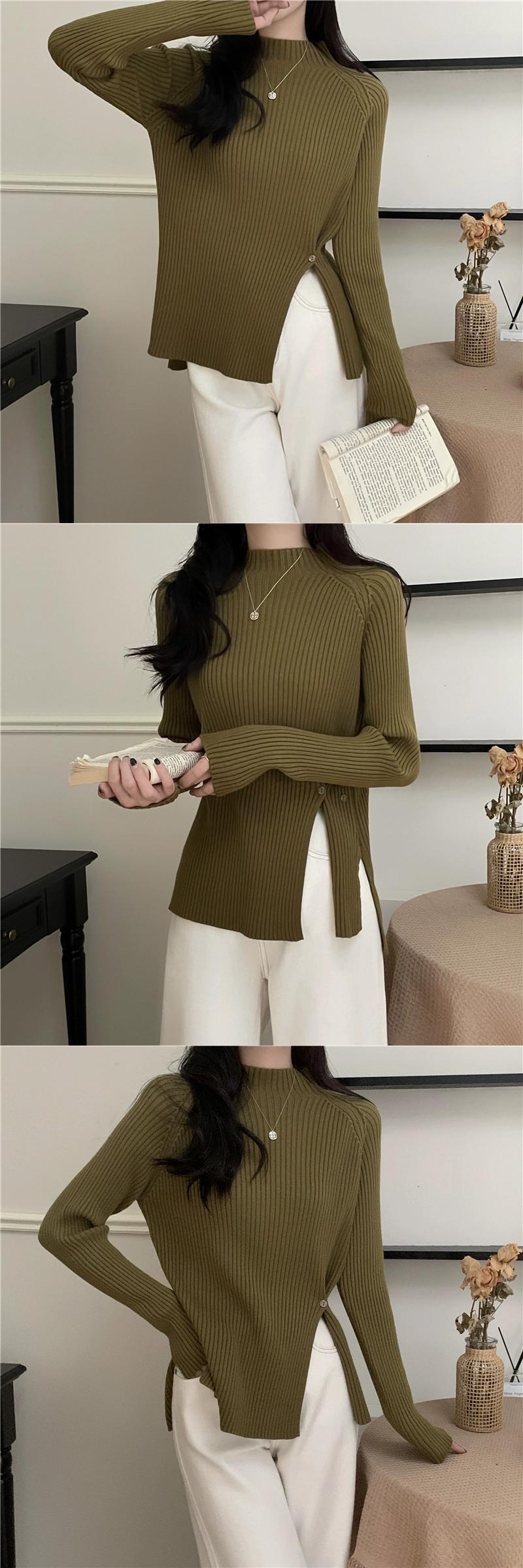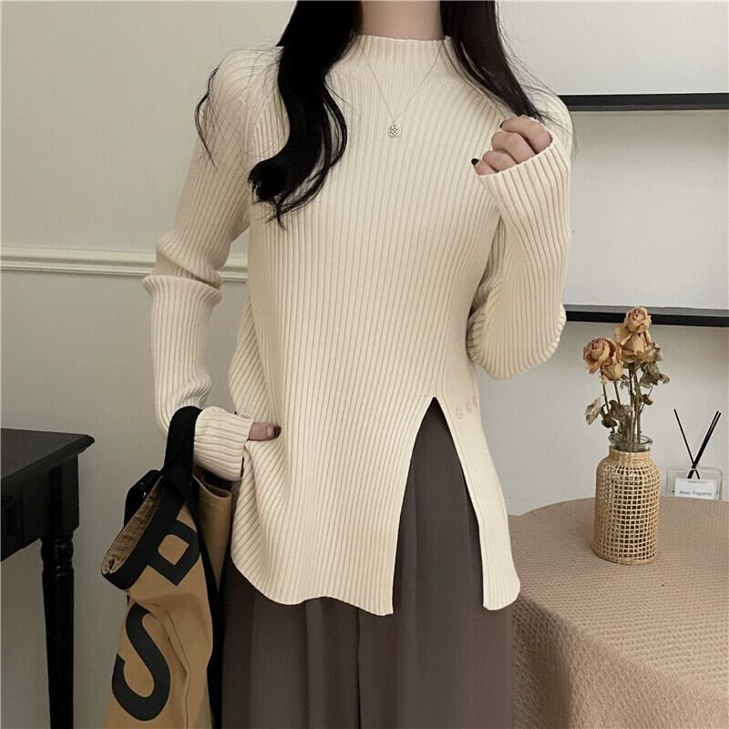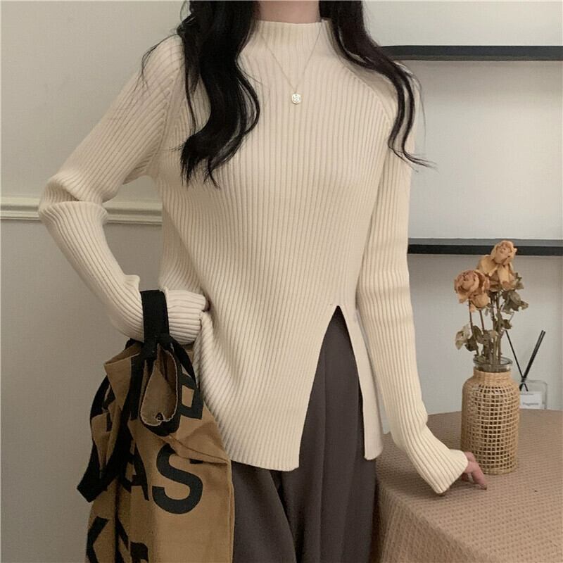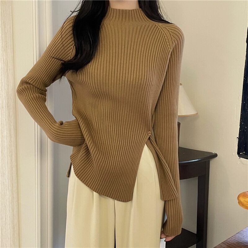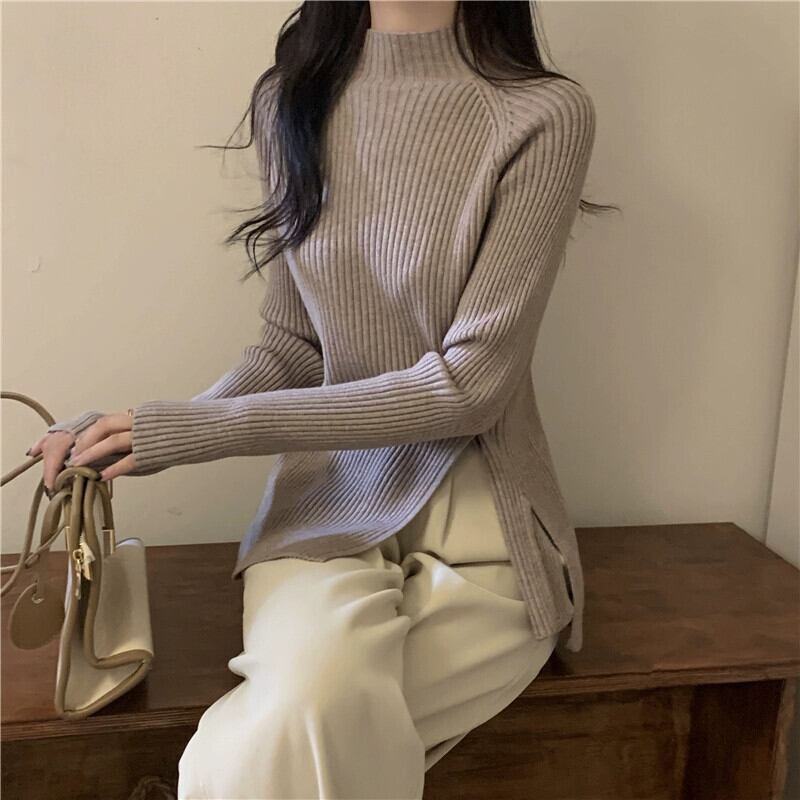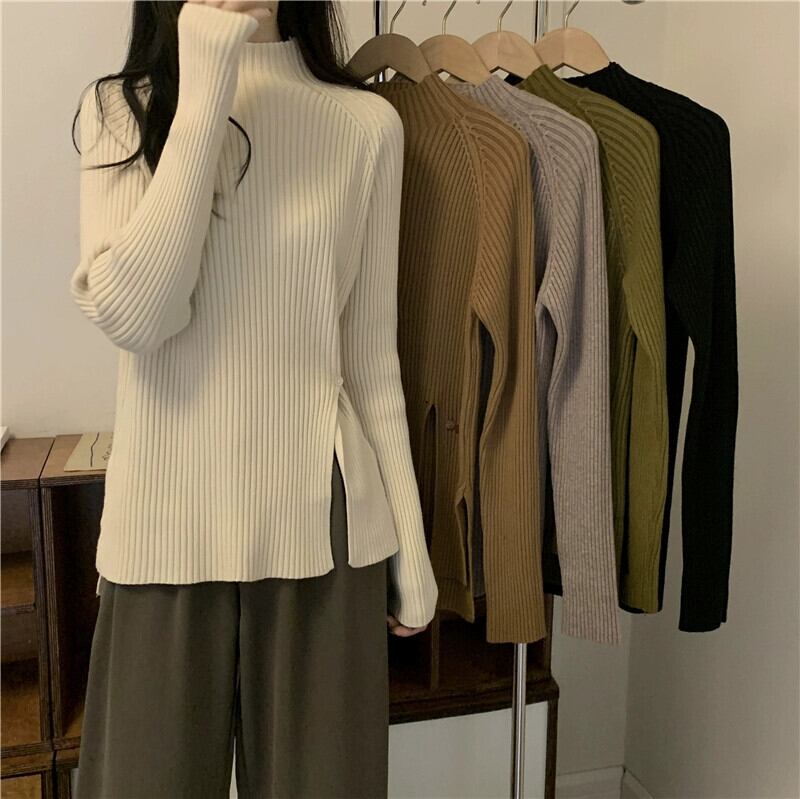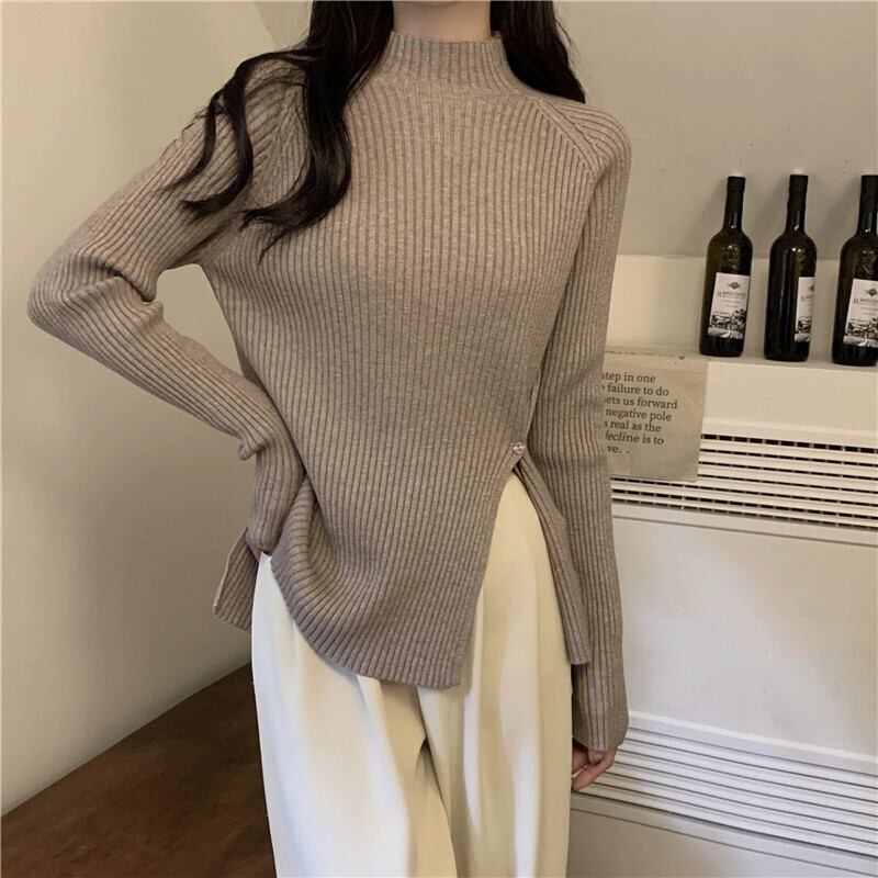 ハーフタートルネックボトリングシャツレディース、秋冬スタイル、ファッショナブル、ルーズでスリム、万能スリット長袖ニットセーター ロング オータム 秋物 ウィンター 冬物 7460082017511280 | framboise21