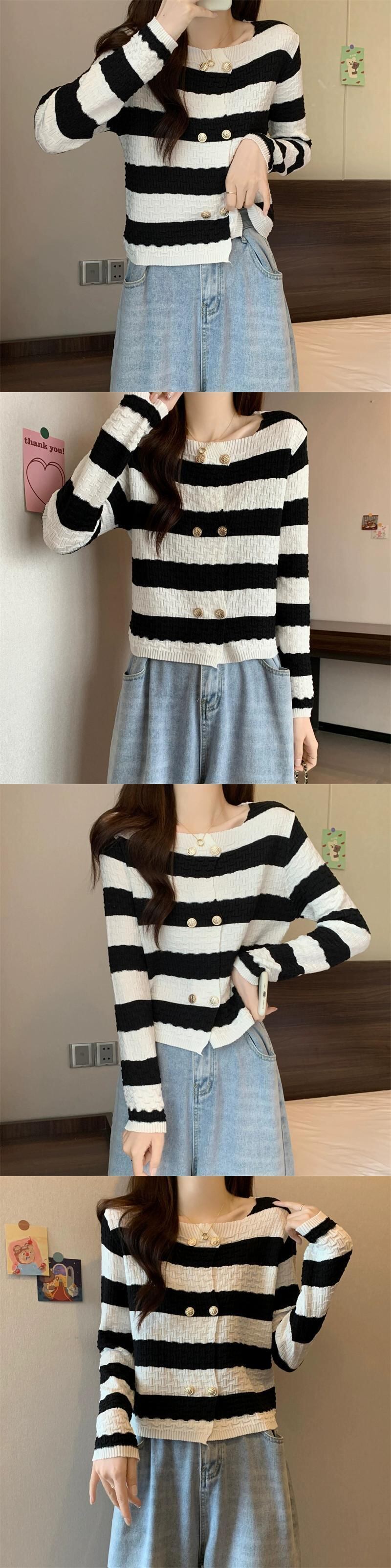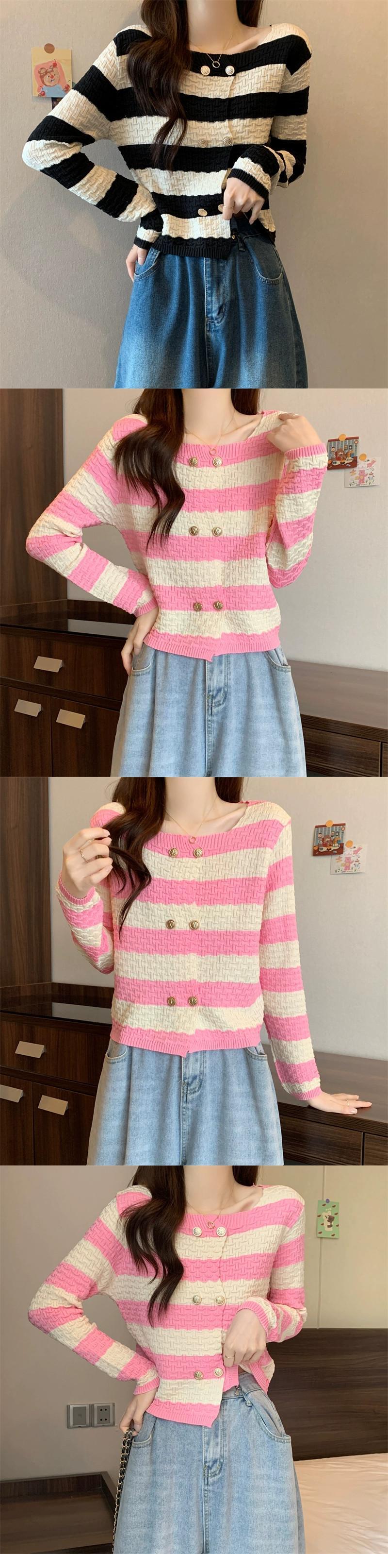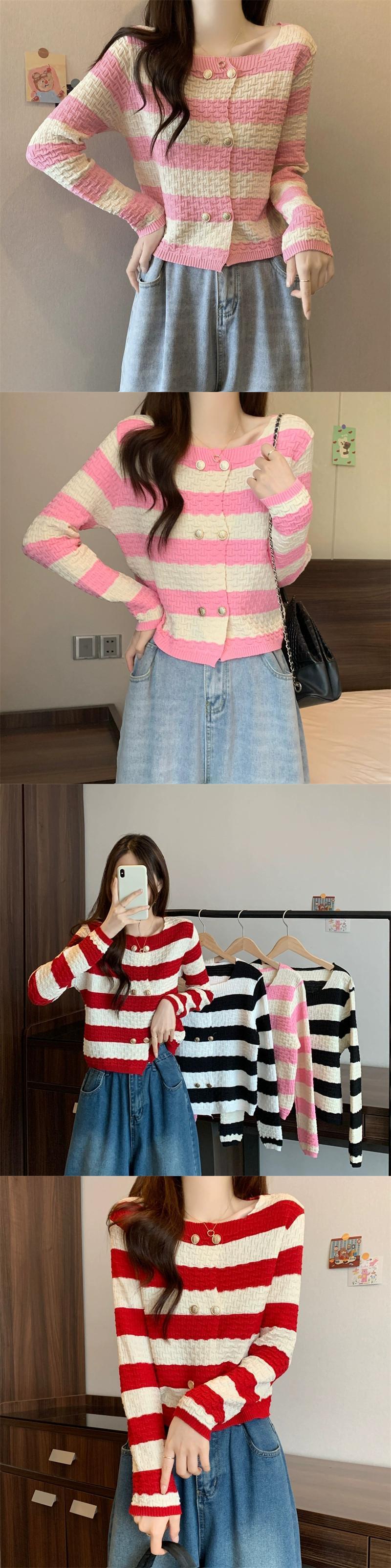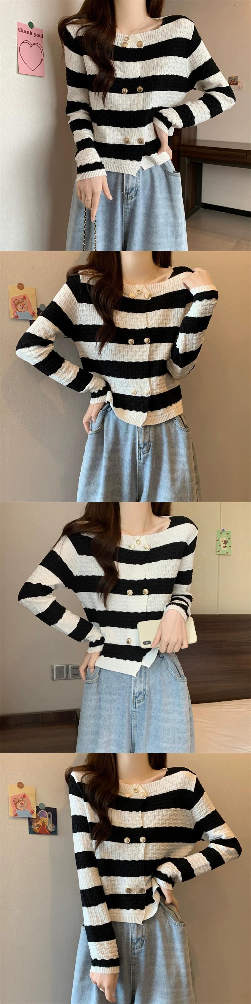 春、秋、冬のストライプのニットカーディガンジャケットの女性、高級、小さな香り、ゆったりとしたアウターウェア、スリムでシックなショートセーター スプリング 春物 オータム 秋物 ウィンター 冬物 7460048097712545 | framboise21