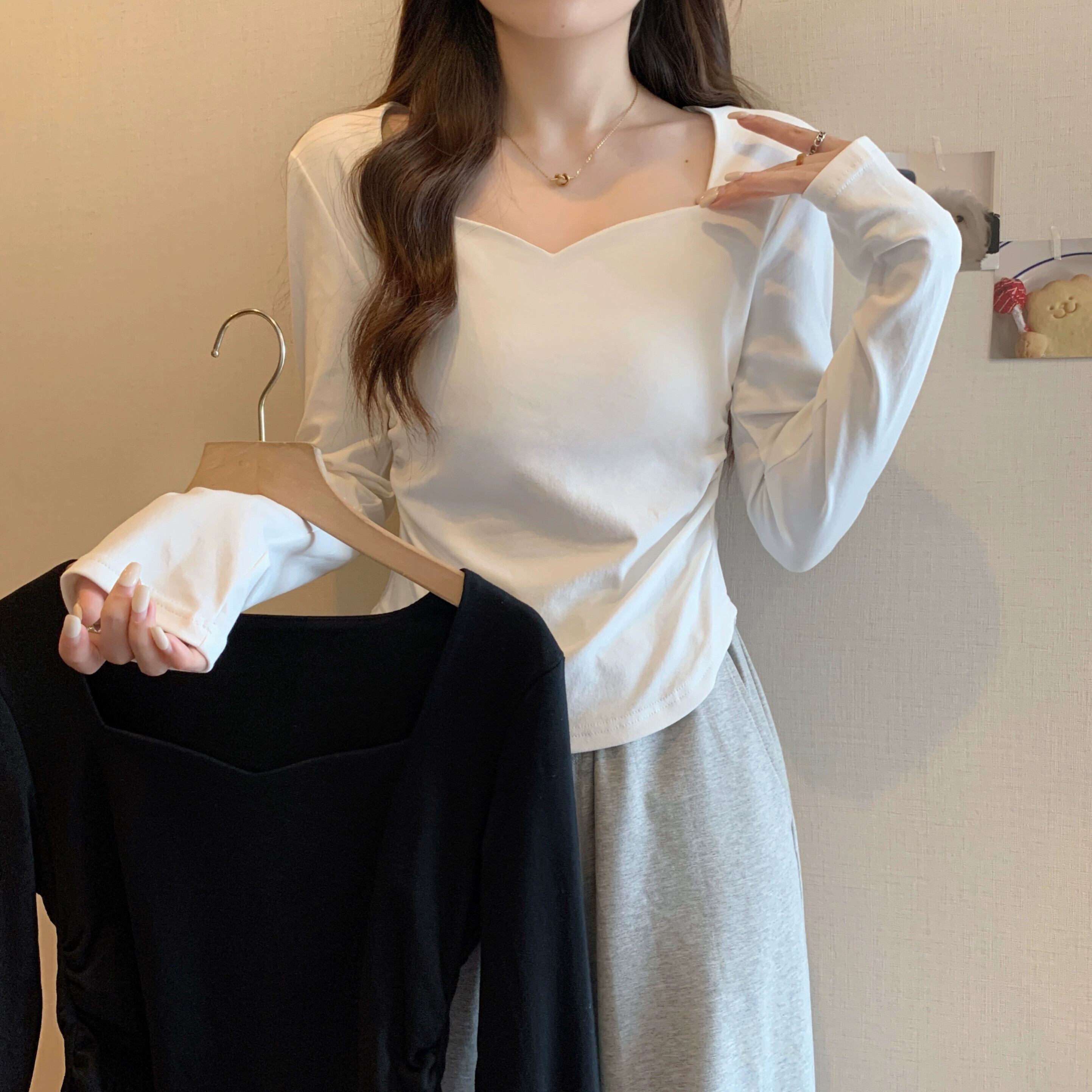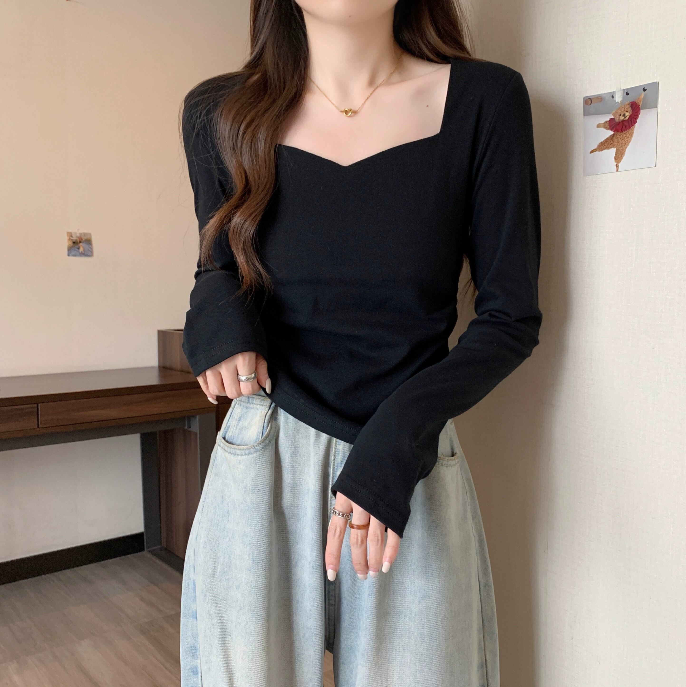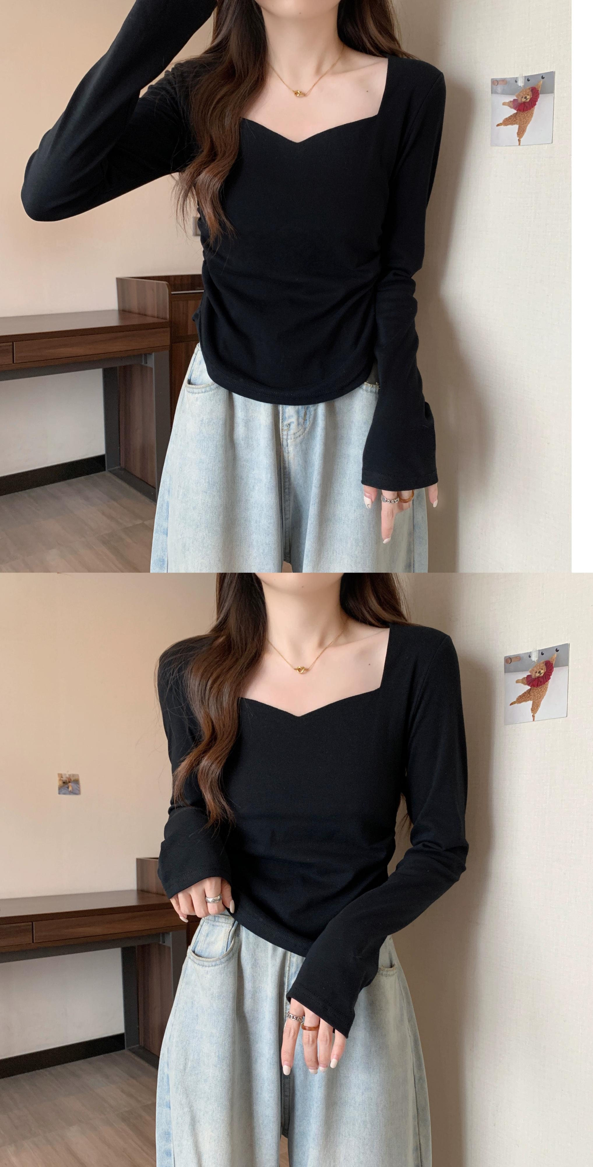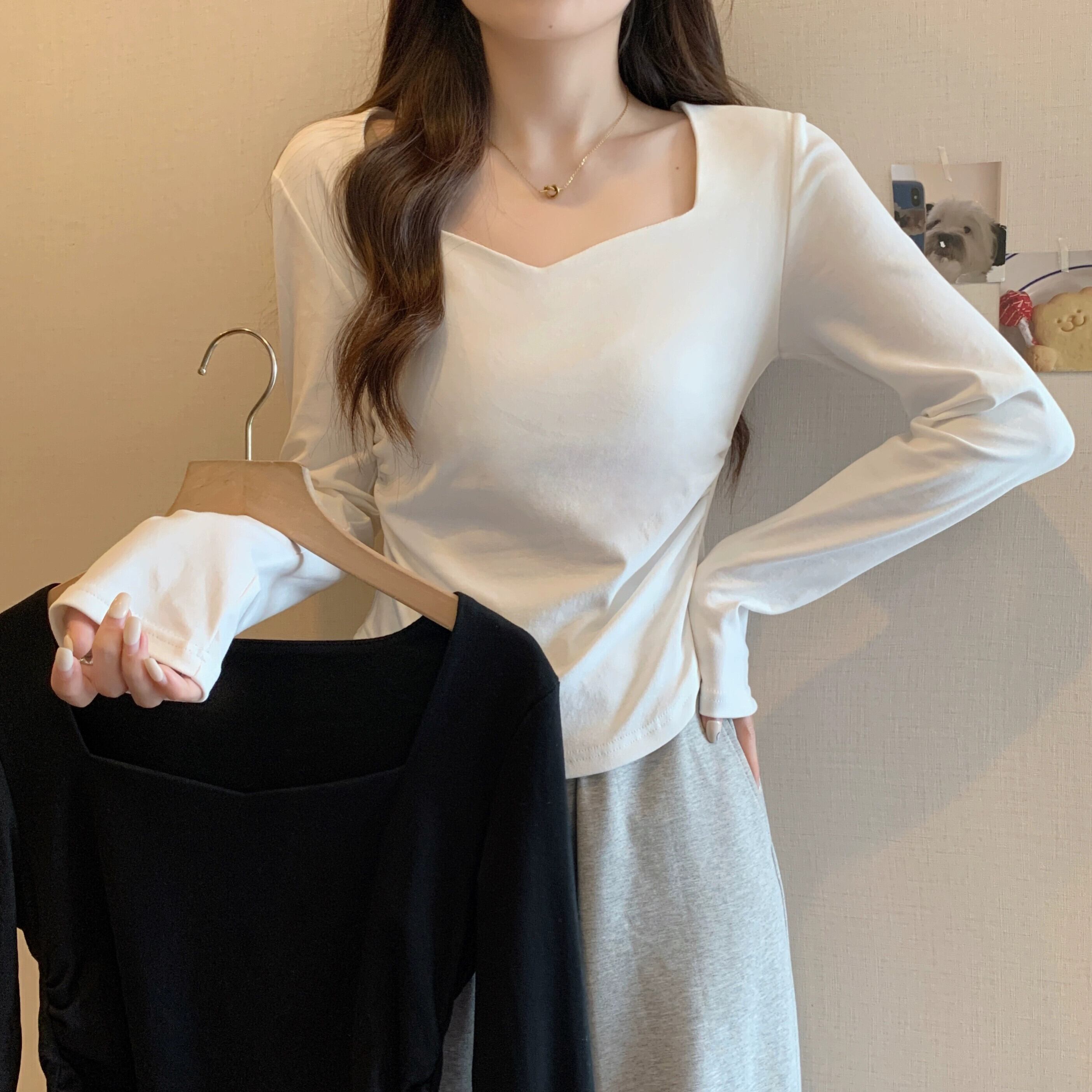 春、秋、冬のスクエアネック長袖トップス、ファッショナブルでスリムフィットのインナーレイヤリングシャツ、カーブした裾のTシャツ ロング スプリング 春物 オータム 秋物 ウィンター 冬物 スクウェア 7460060175611079 | framboise21