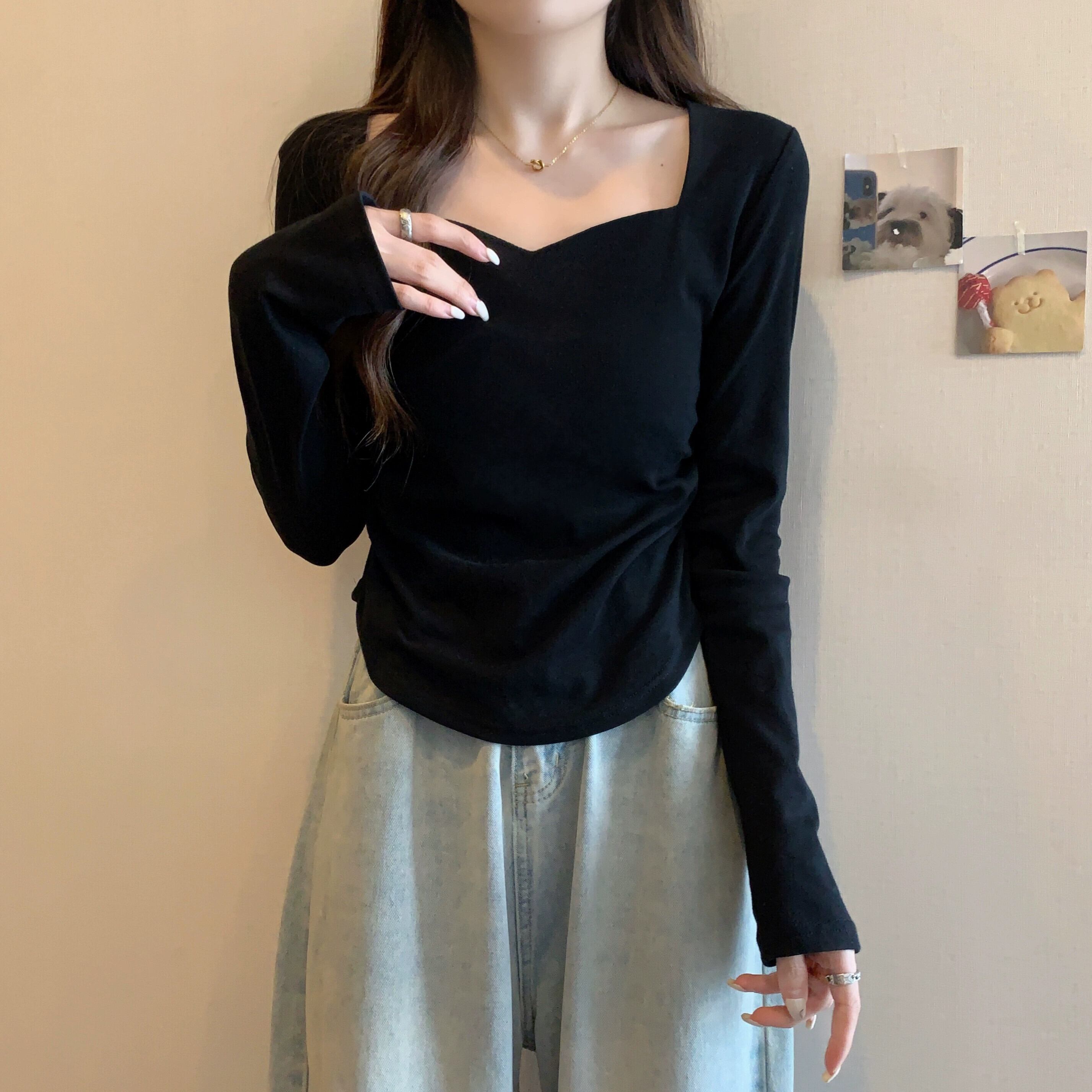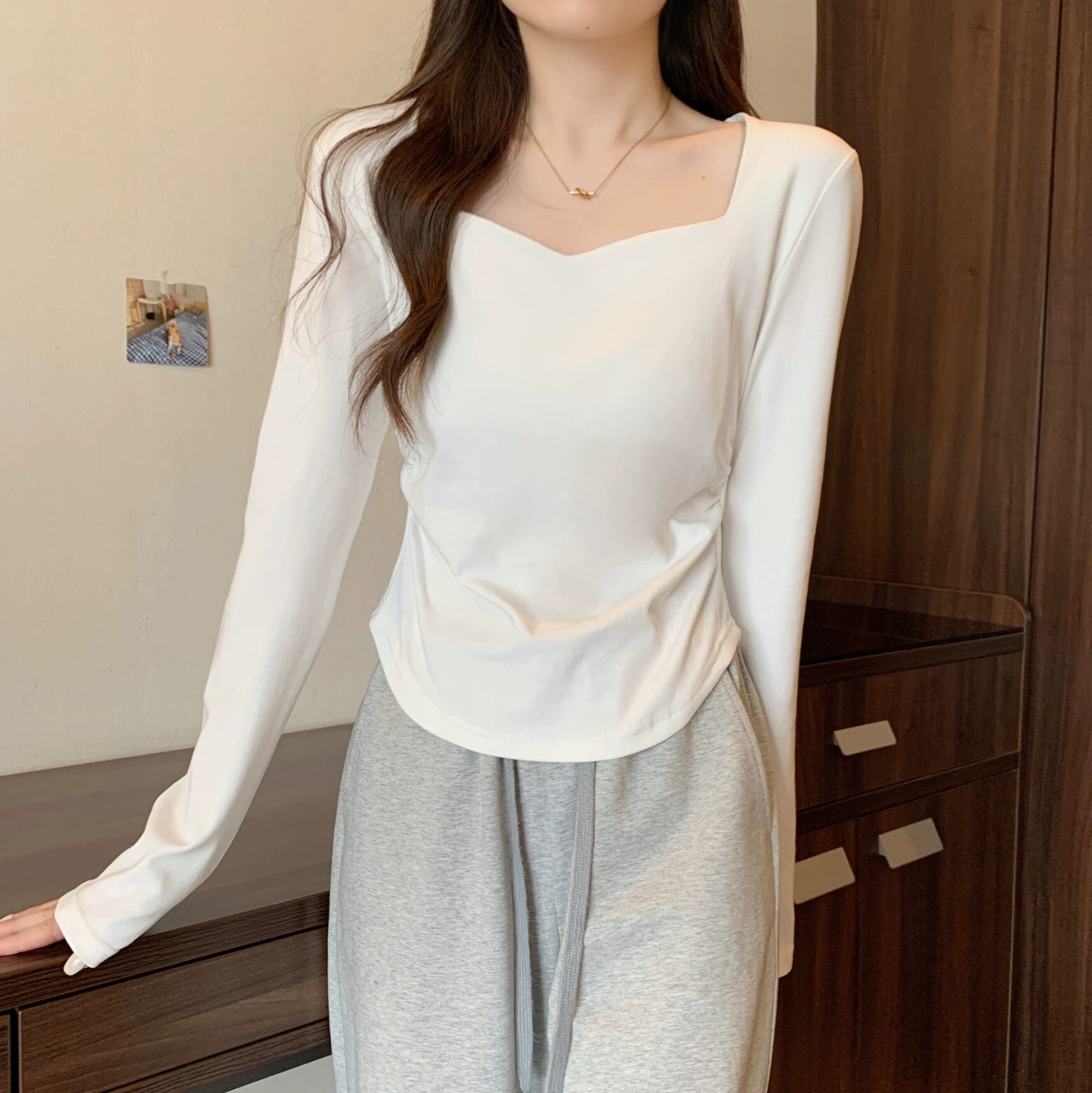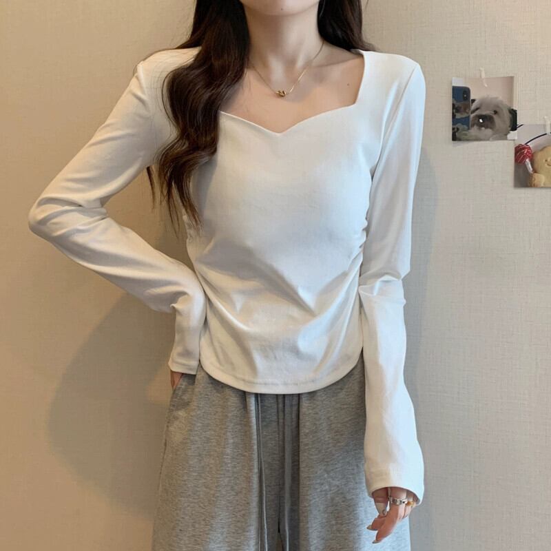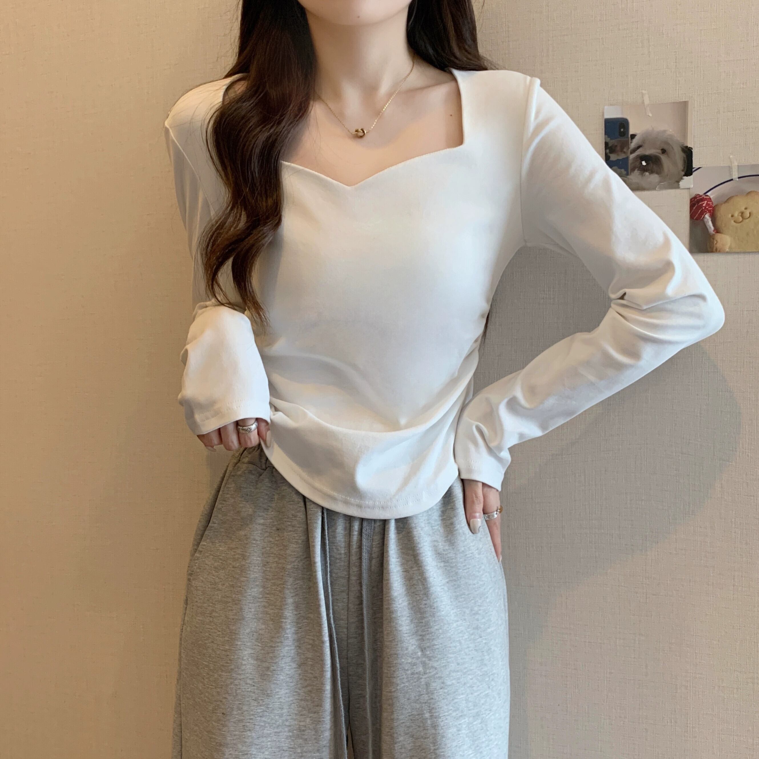春、秋、冬のスクエアネック長袖トップス、ファッショナブルでスリムフィットのインナーレイヤリングシャツ、カーブした裾のTシャツ ロング スプリング 春物 オータム 秋物 ウィンター 冬物 スクウェア 7460060175611079 | framboise21