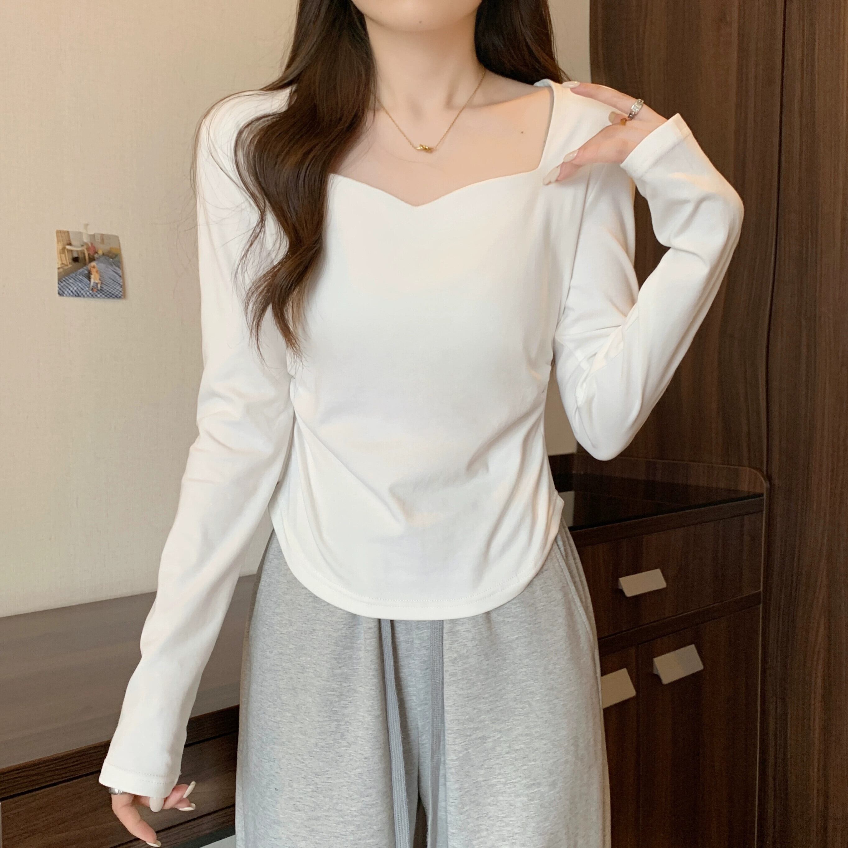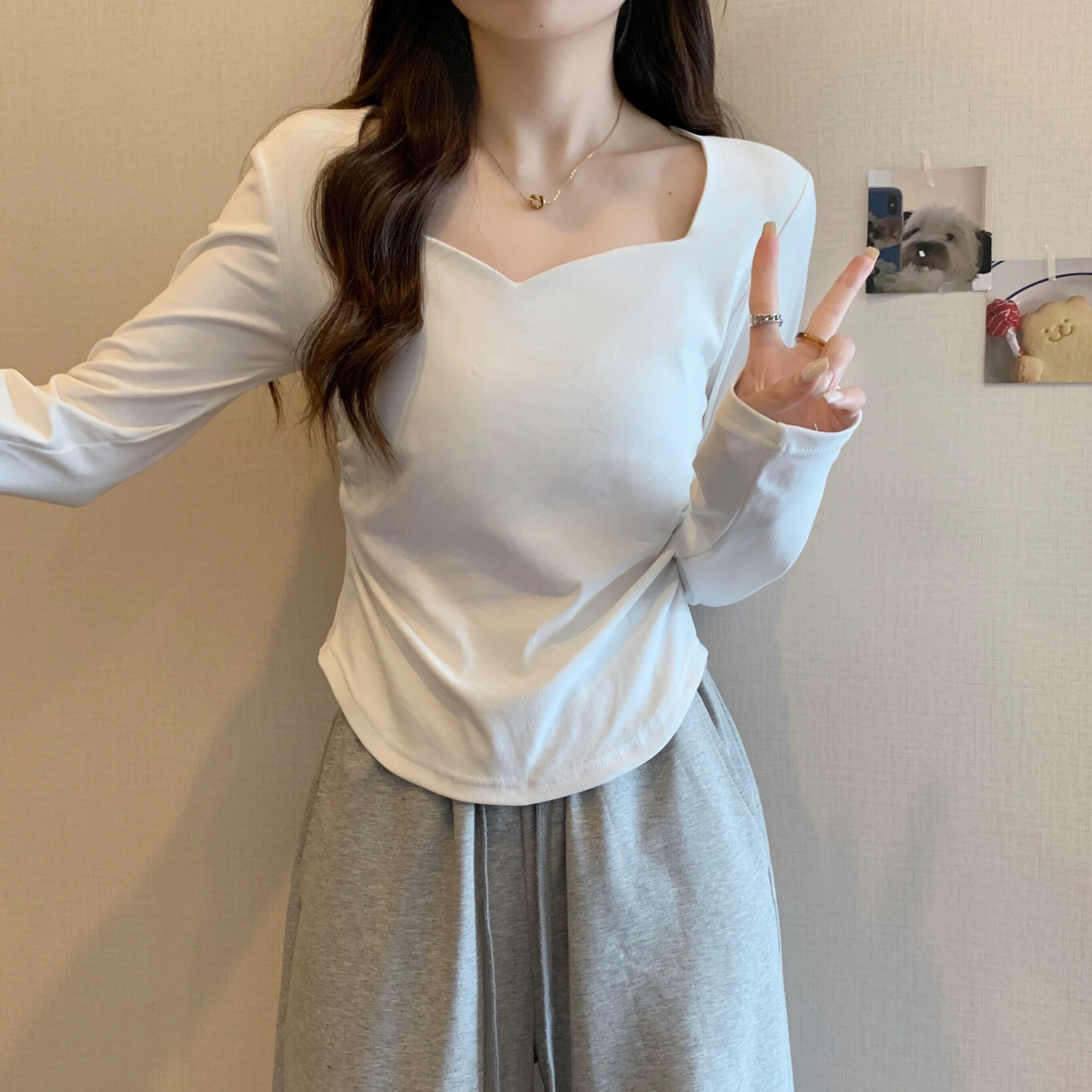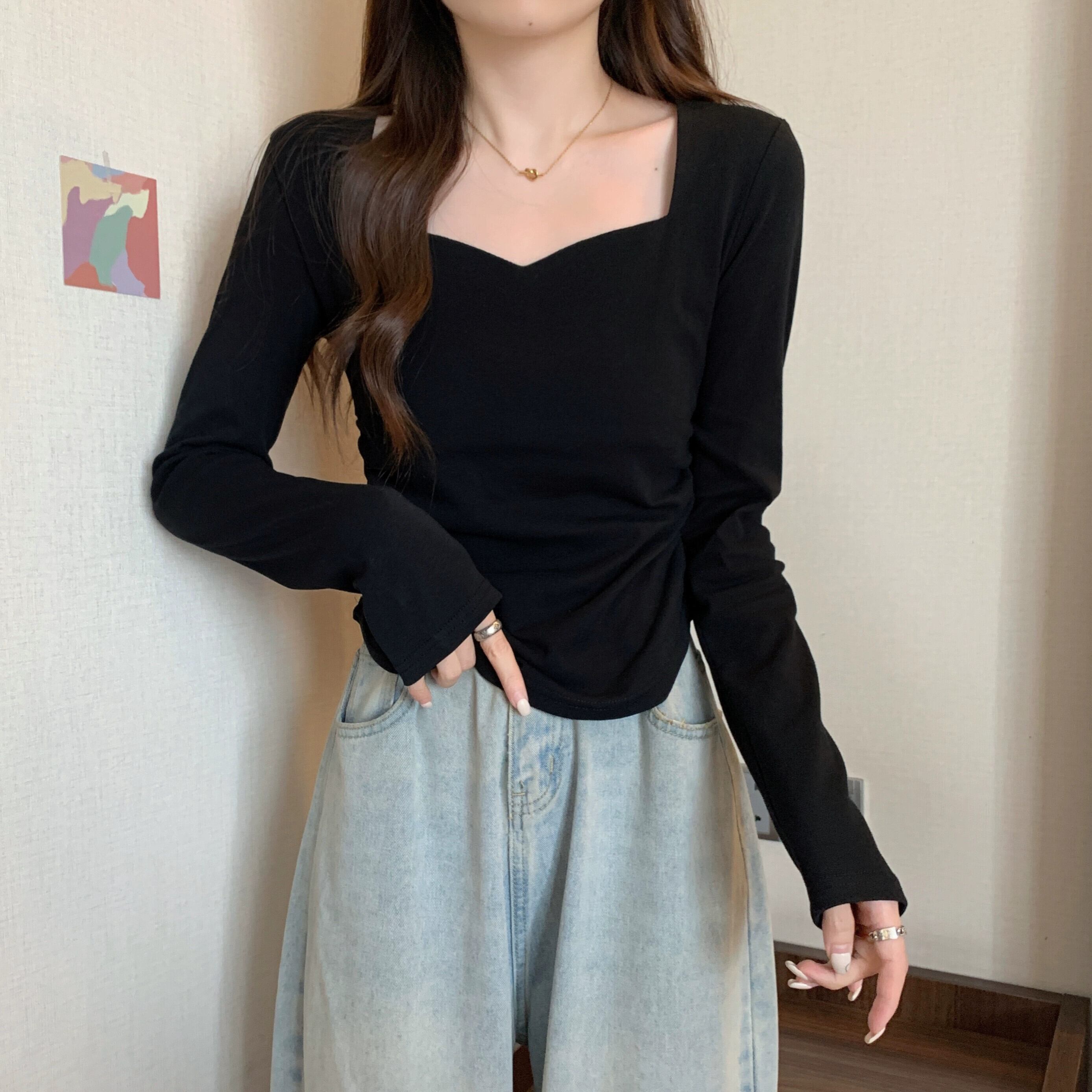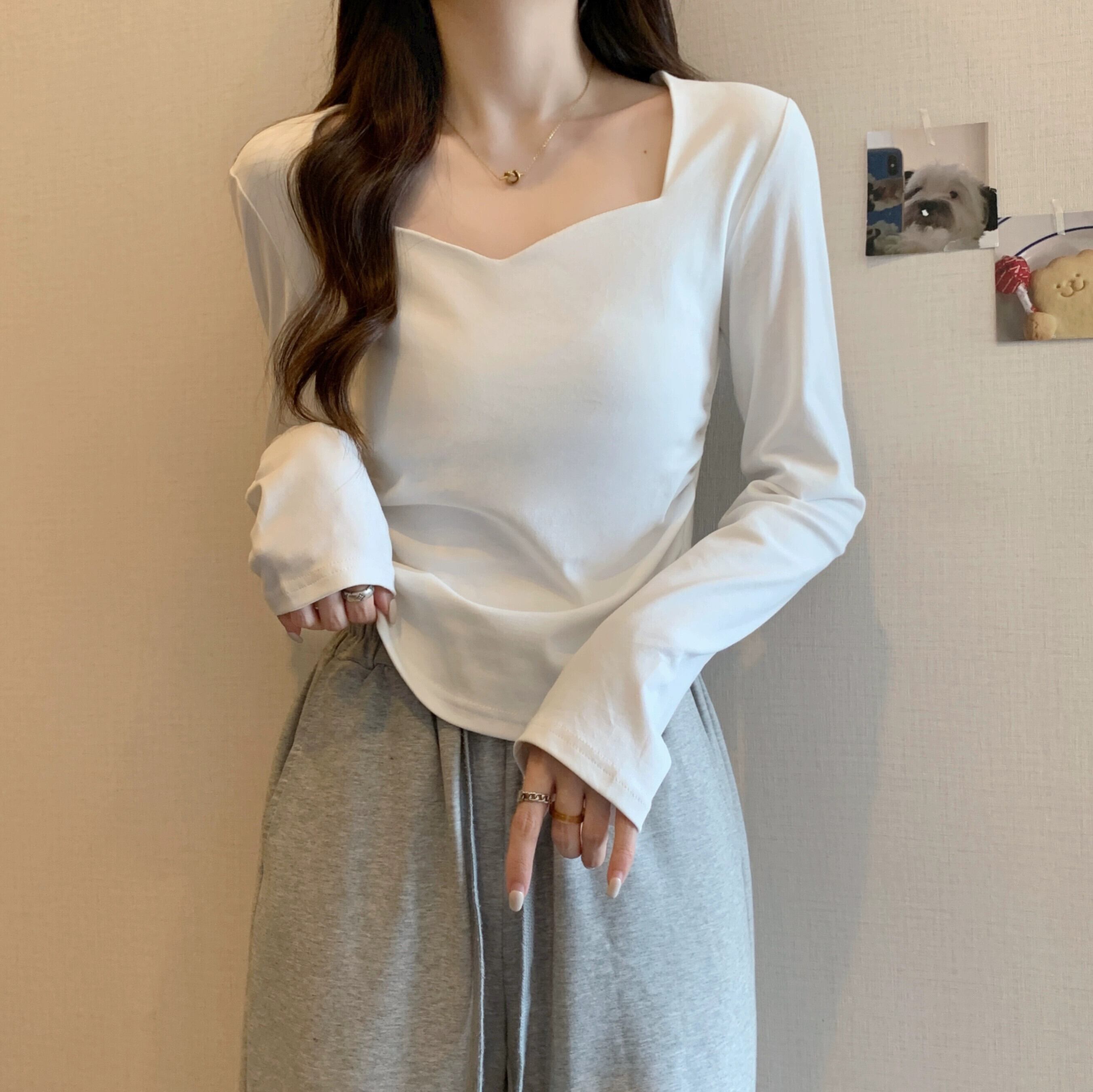 春、秋、冬のスクエアネック長袖トップス、ファッショナブルでスリムフィットのインナーレイヤリングシャツ、カーブした裾のTシャツ ロング スプリング 春物 オータム 秋物 ウィンター 冬物 スクウェア 7460060175611079 | framboise21