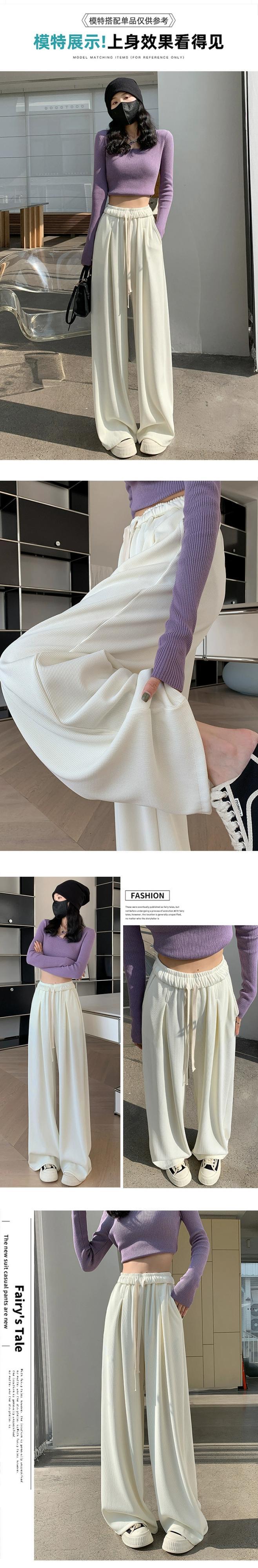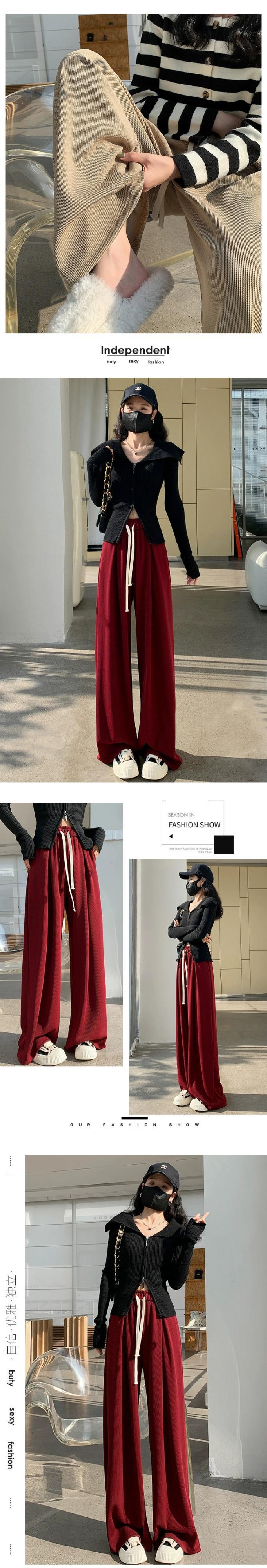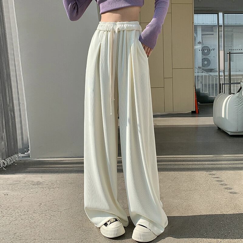 細身のワイドレッグパンツの女性、春と秋のスタイル、洋ナシ型、ルーズ、ストレート、ハイウエスト、スリムでドレープ、床までの長さのカジュアルパンツの女性 スプリング 春物 オータム 秋物 7460011471116348 | framboise21
