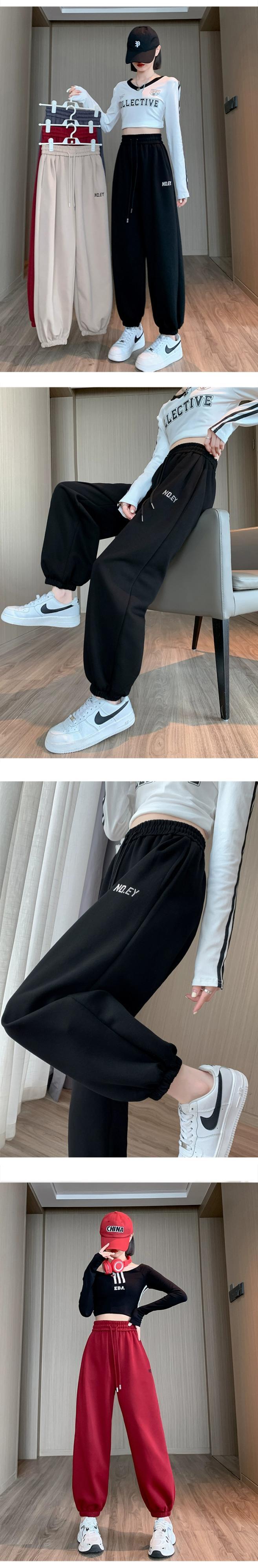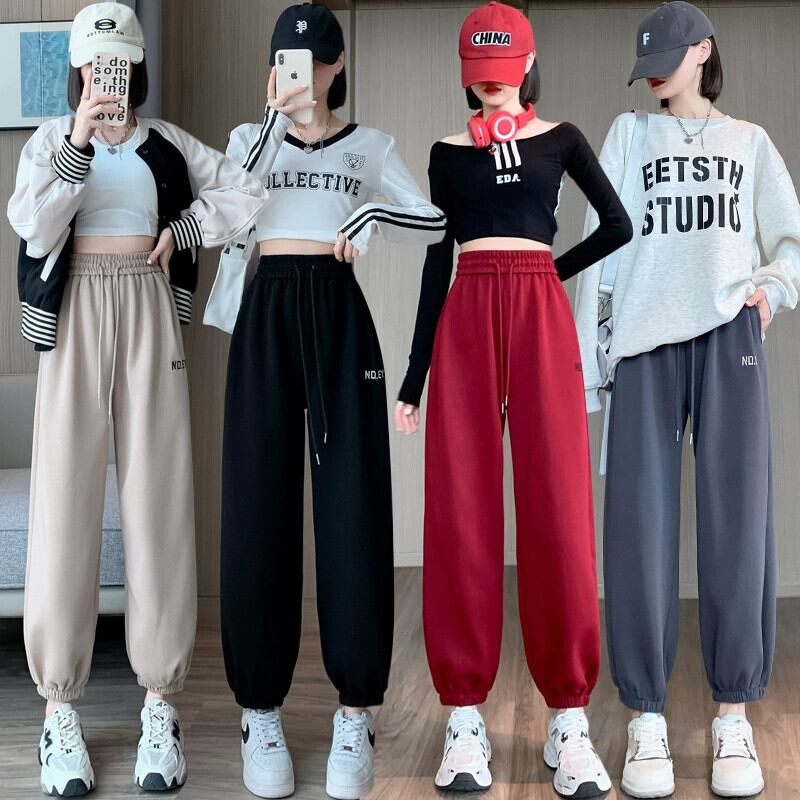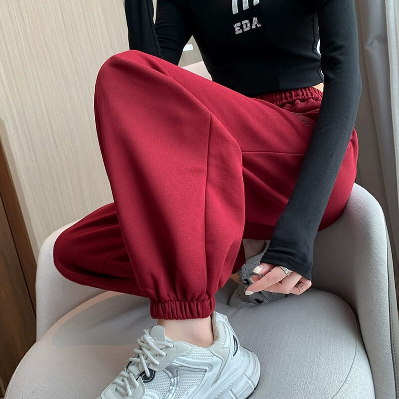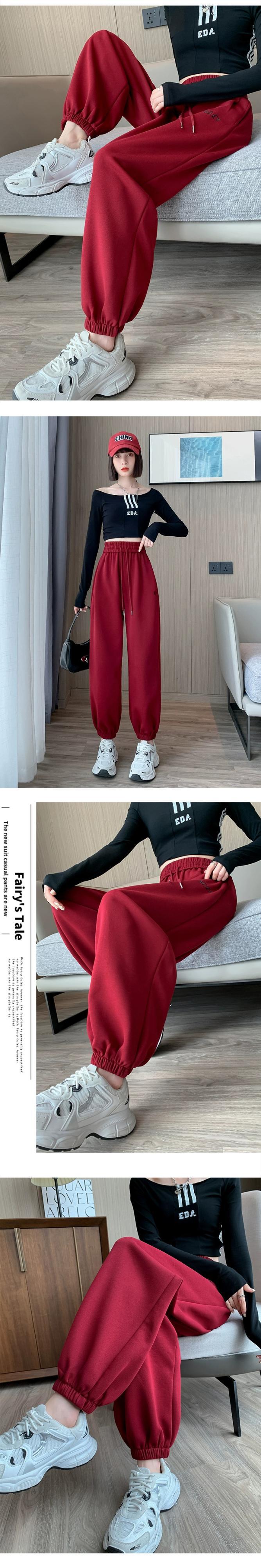 バーガンディカジュアルスポーツパンツレディース、春と秋のアメリカンスタイルレギンス、ルーズストレートハイウエスト9点大根ハーレムパンツ スプリング 春物 オータム 秋物 7460045813155059 | framboise21