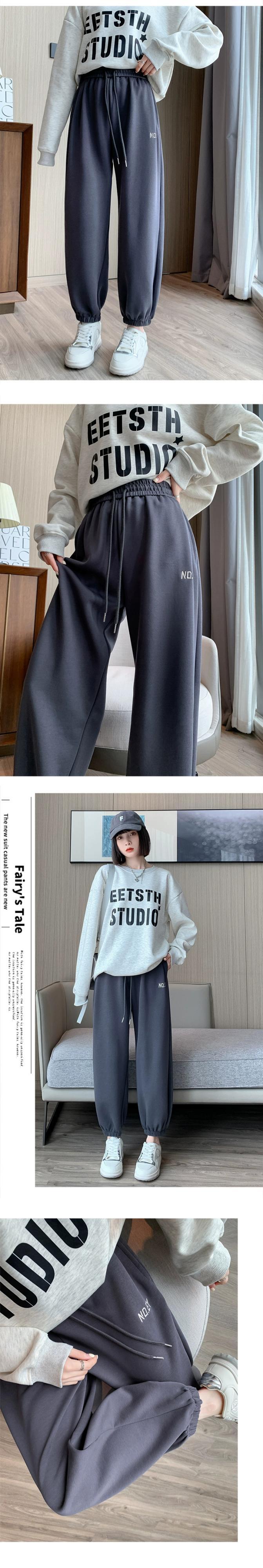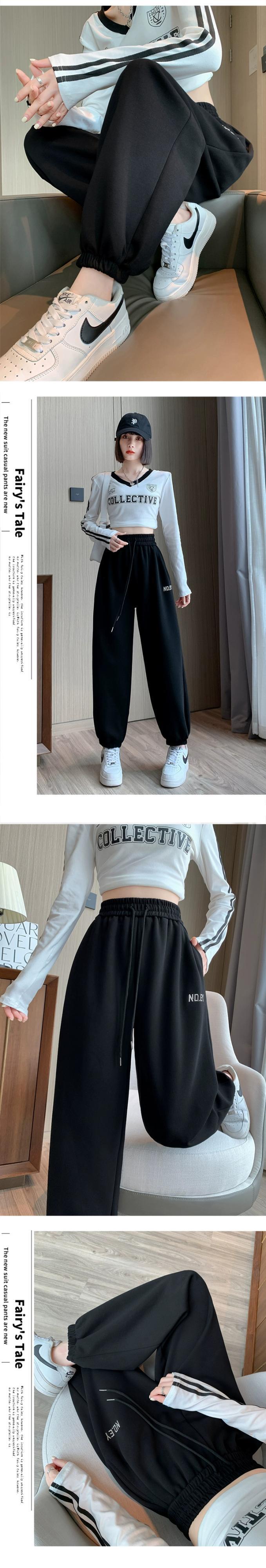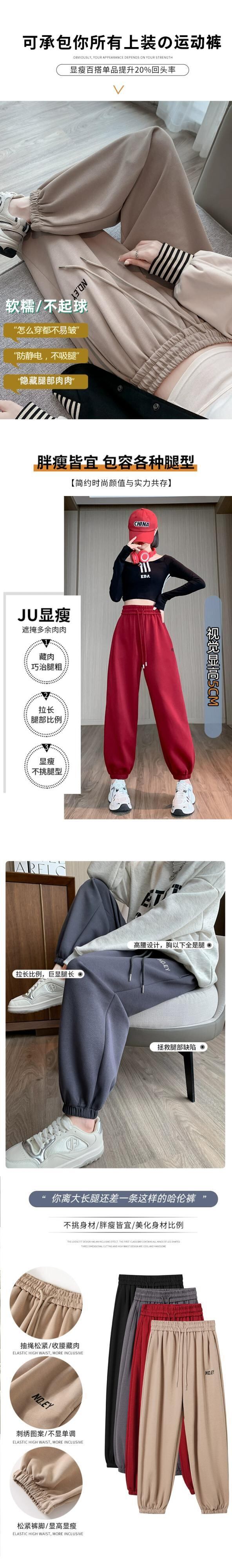 バーガンディカジュアルスポーツパンツレディース、春と秋のアメリカンスタイルレギンス、ルーズストレートハイウエスト9点大根ハーレムパンツ スプリング 春物 オータム 秋物 7460045813155059 | framboise21