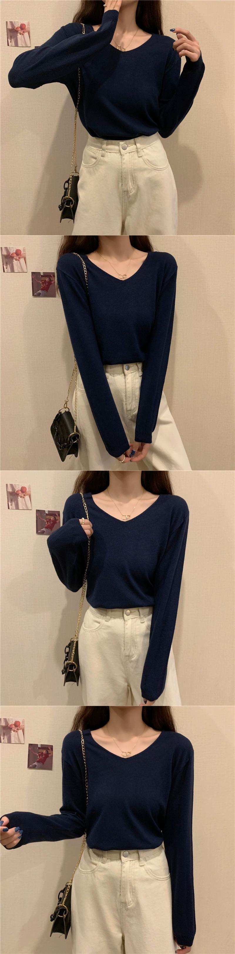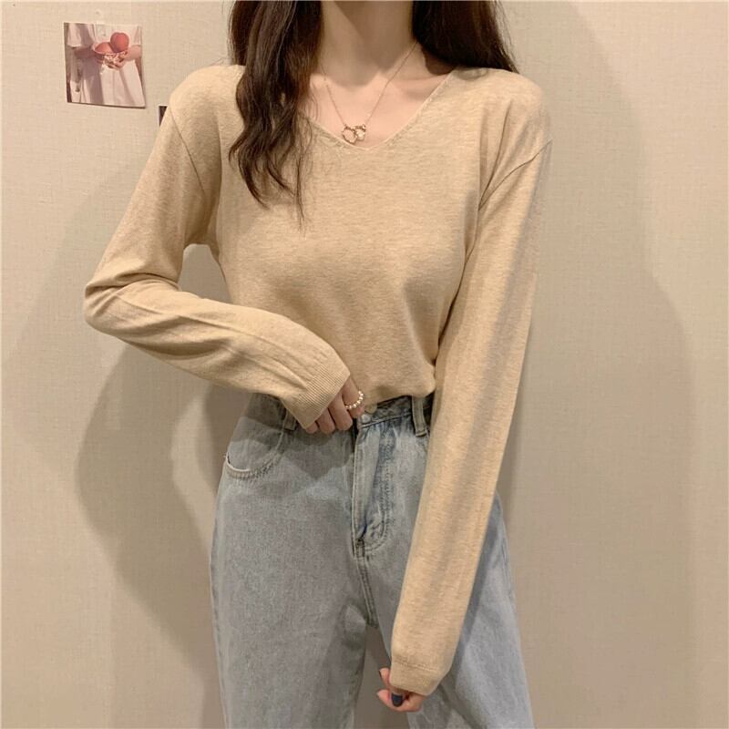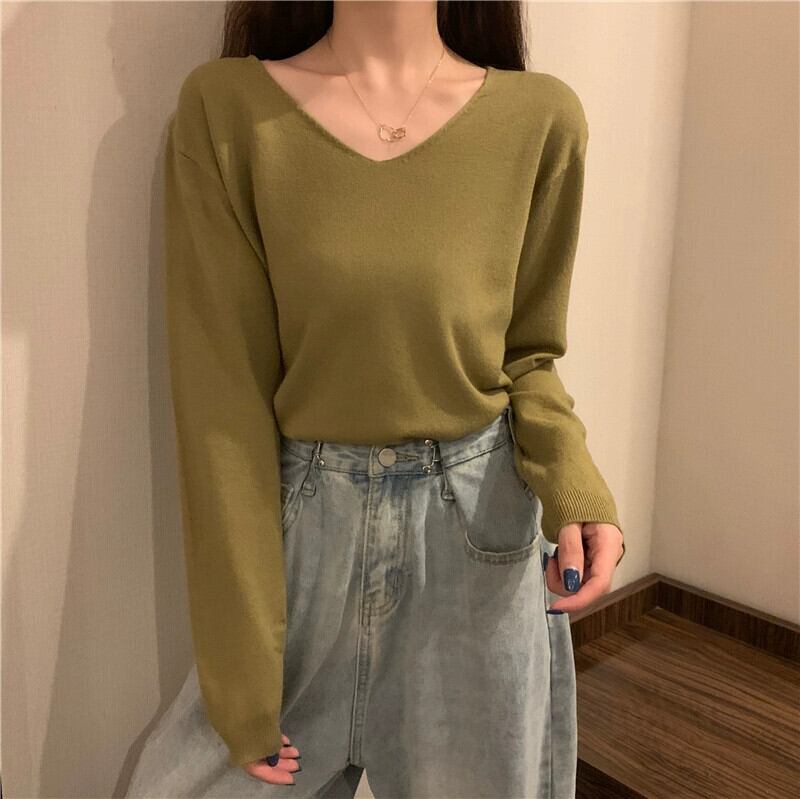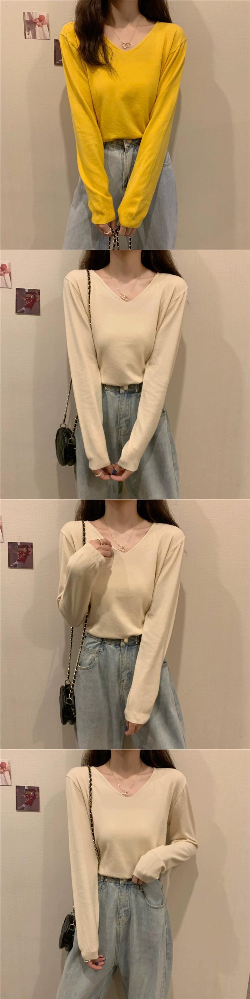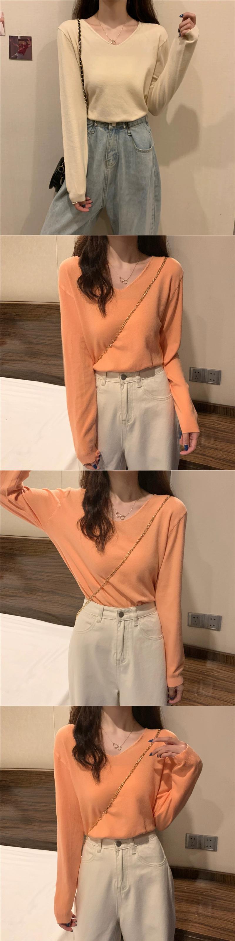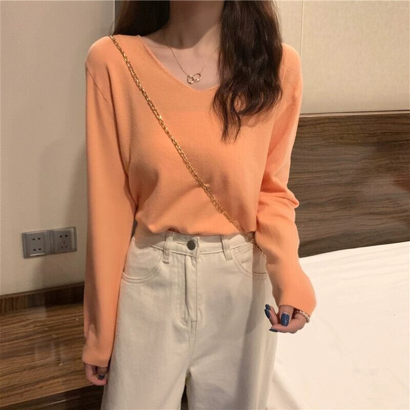 オレンジ長袖ボトシャツ 2023 新しい女性の秋と冬のニットセーターファッショナブルでスリムな V ネックトップ ロング オータム 秋物 ウィンター 冬物 Vネック 7460081031916087 | framboise21