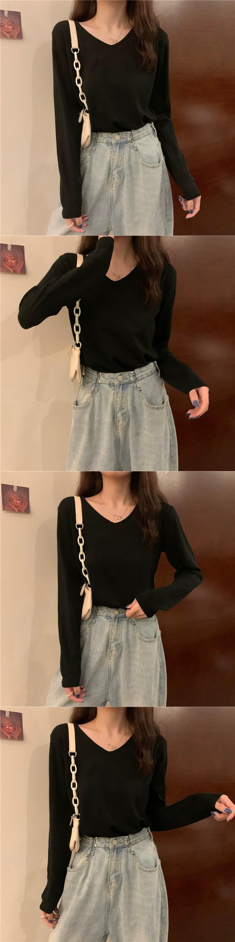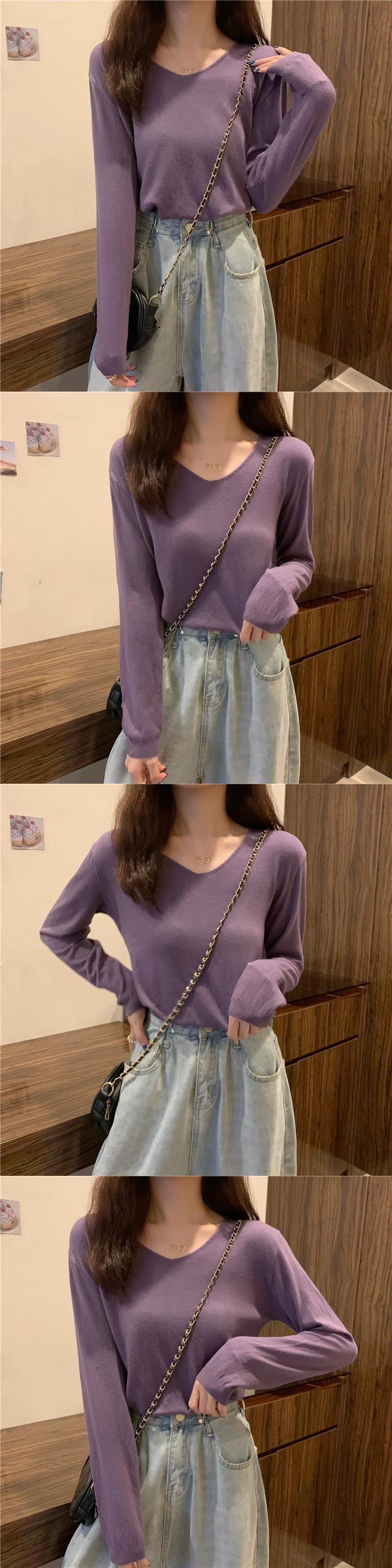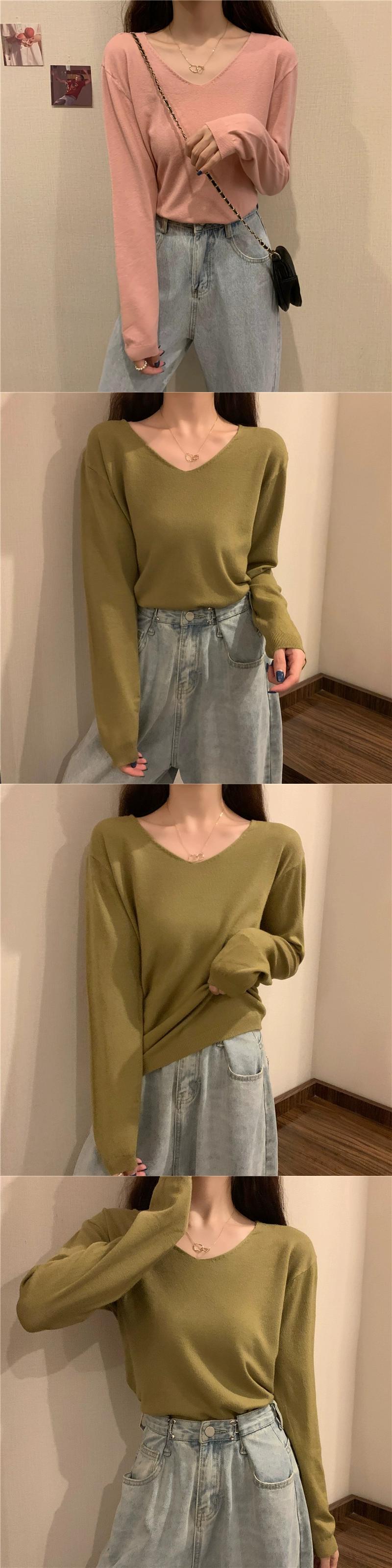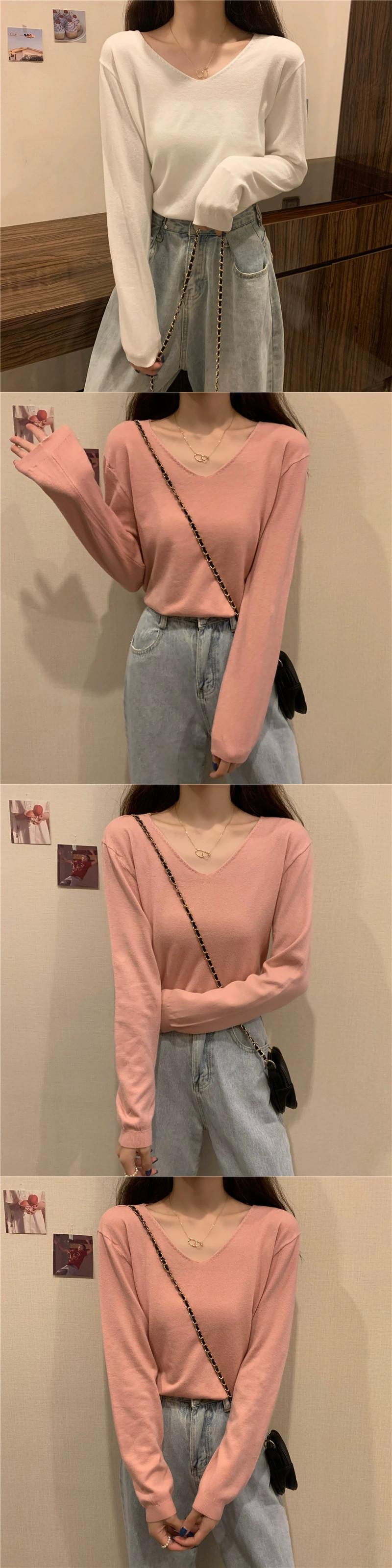 オレンジ長袖ボトシャツ 2023 新しい女性の秋と冬のニットセーターファッショナブルでスリムな V ネックトップ ロング オータム 秋物 ウィンター 冬物 Vネック 7460081031916087 | framboise21
