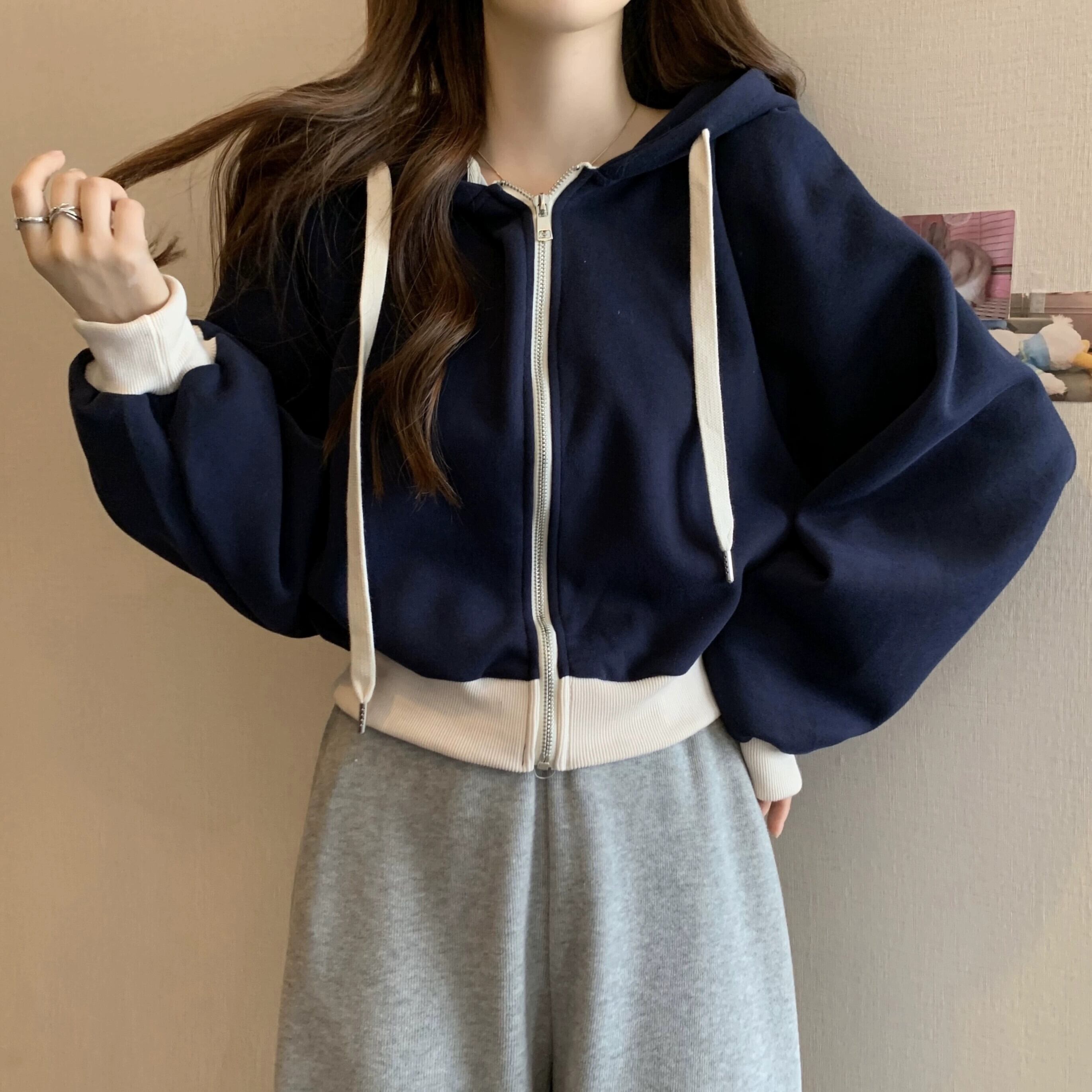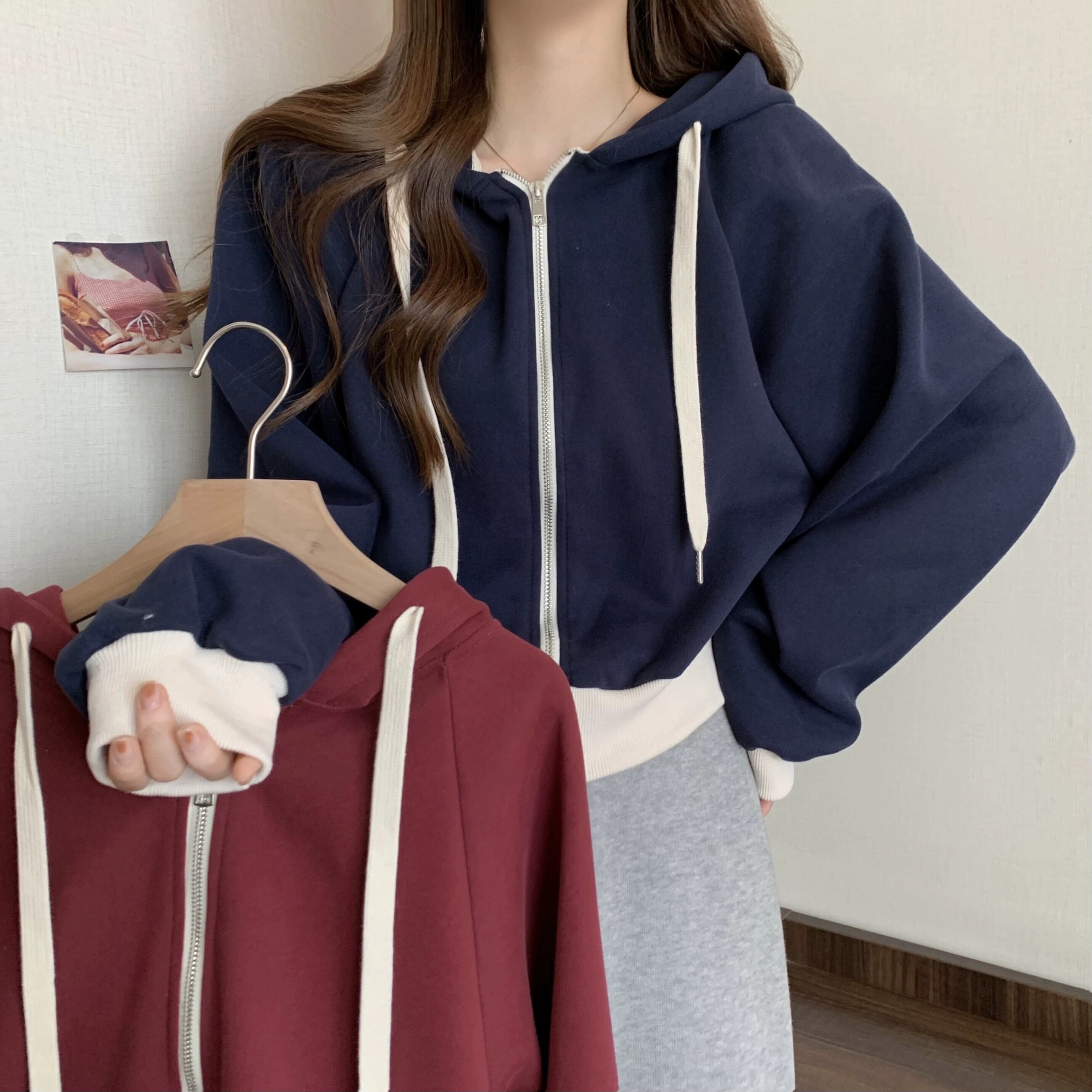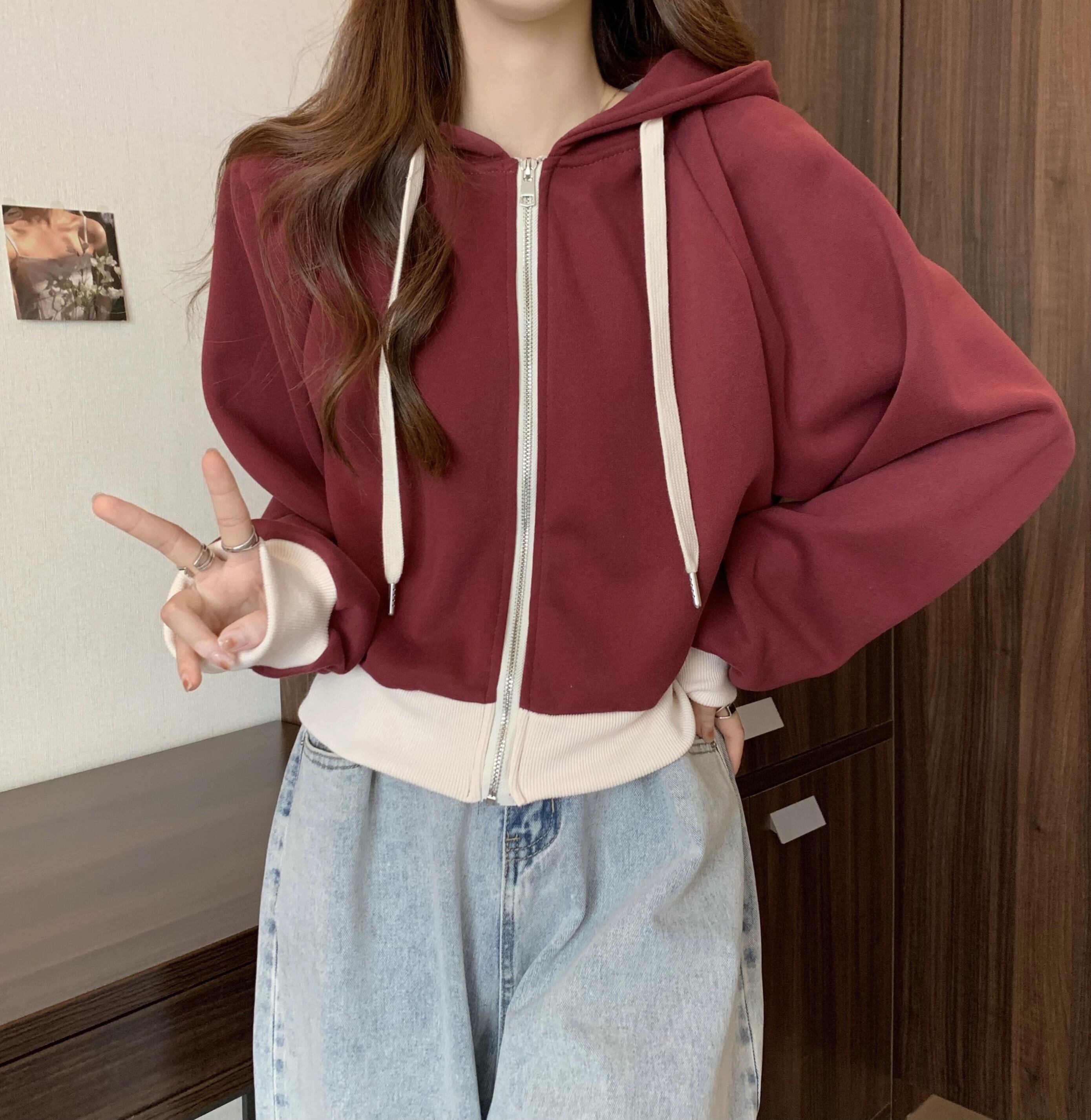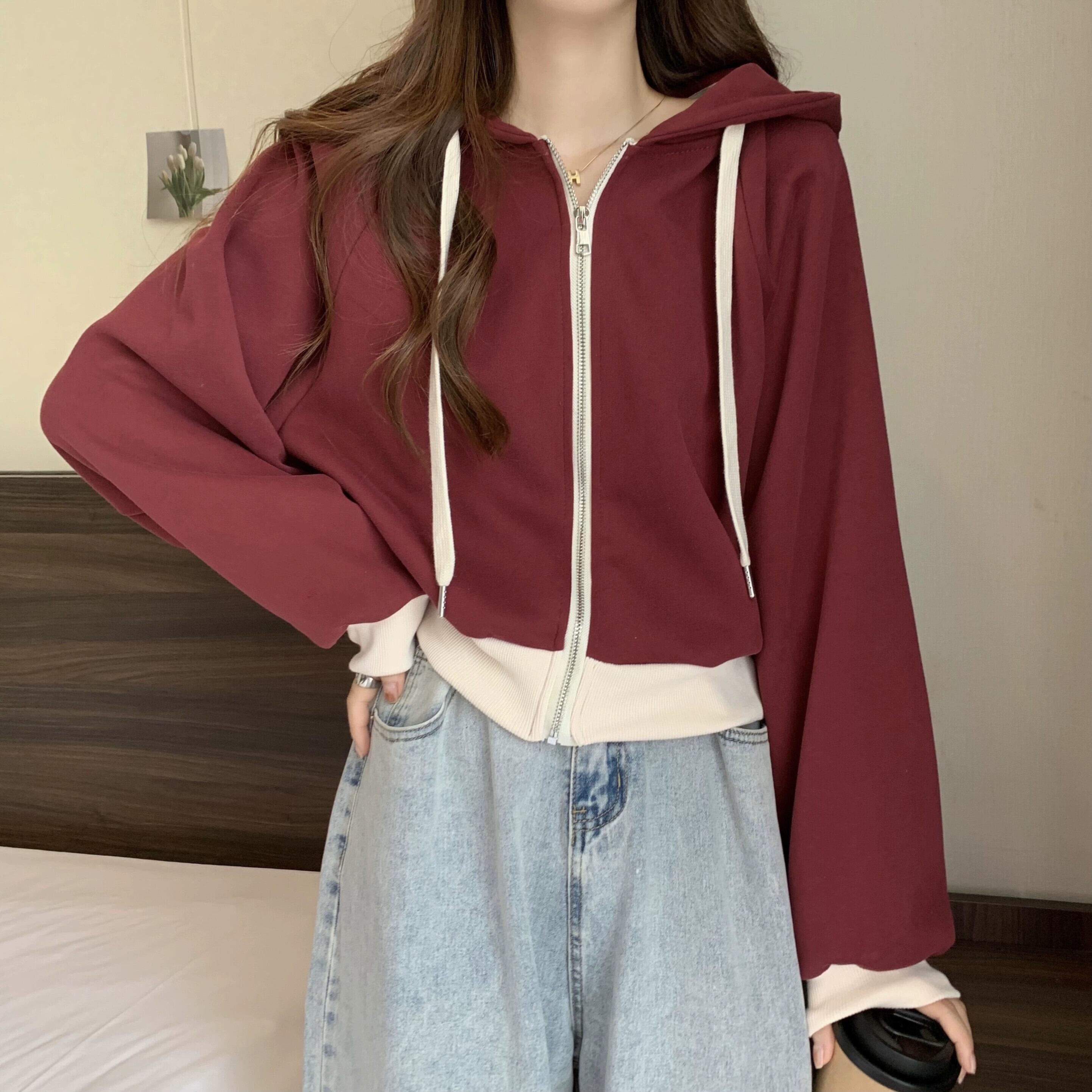 芸術的なレトロなフード付きスウェットシャツの女性の春と秋 2023 新しいスタイルのルーズカジュアル多用途ブルゴーニュジッパージャケット スプリング 春物 オータム 秋物 7460099471656607 | framboise21
