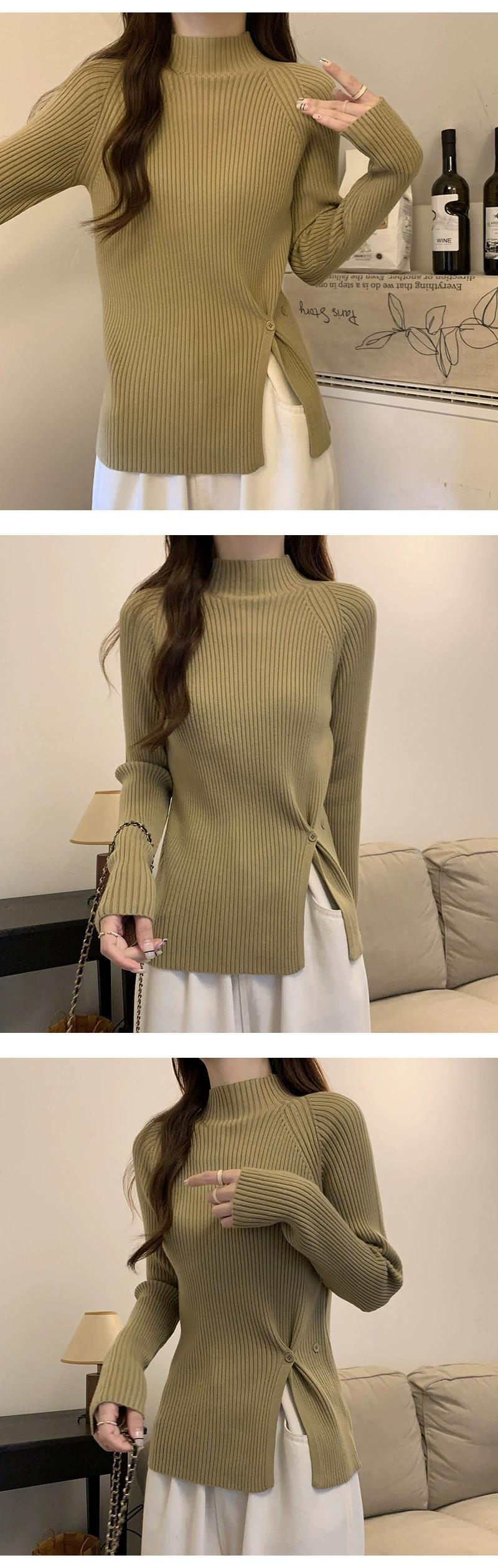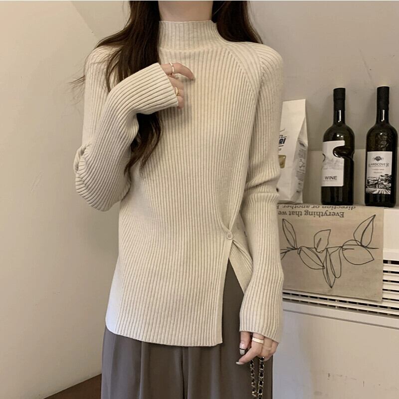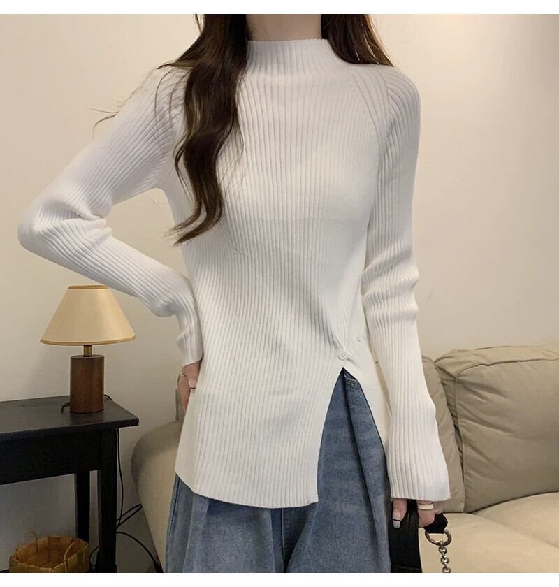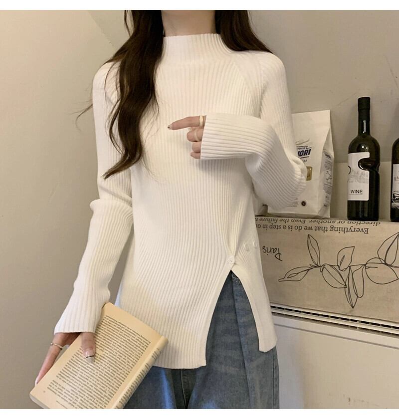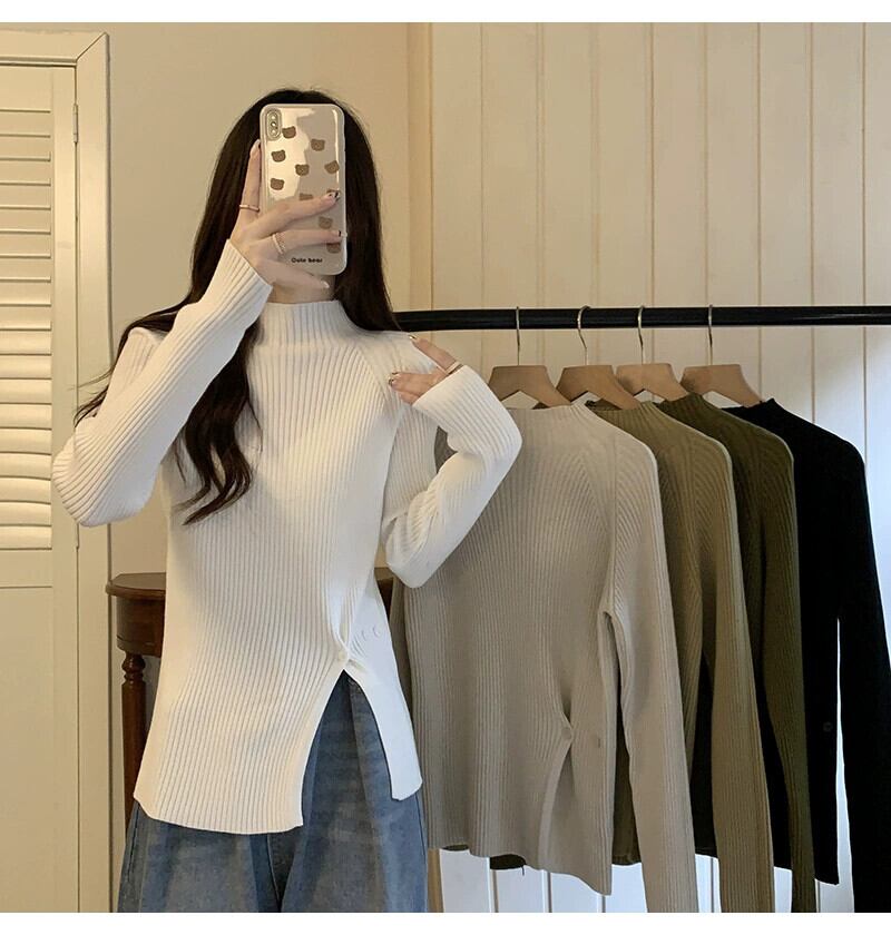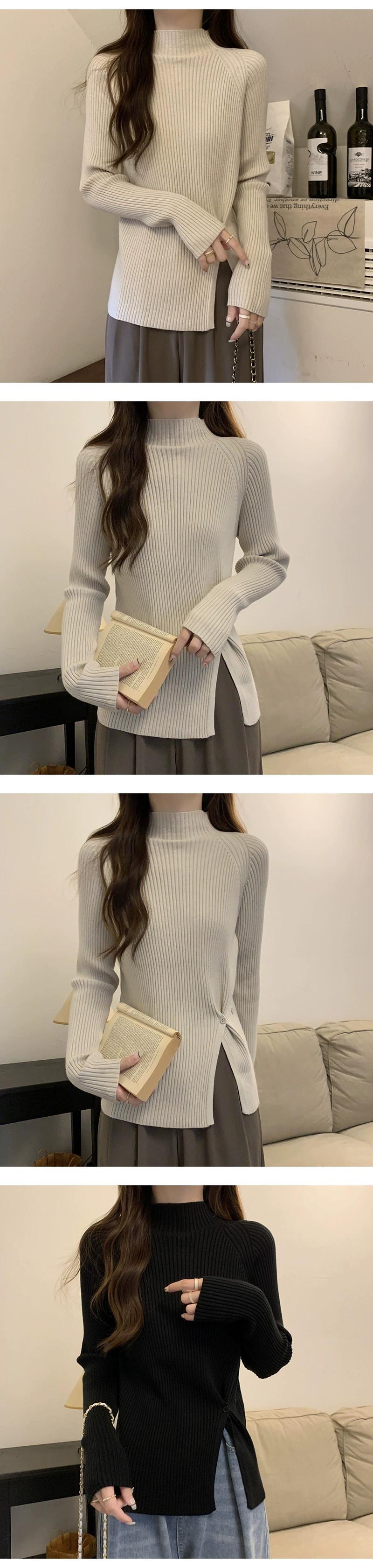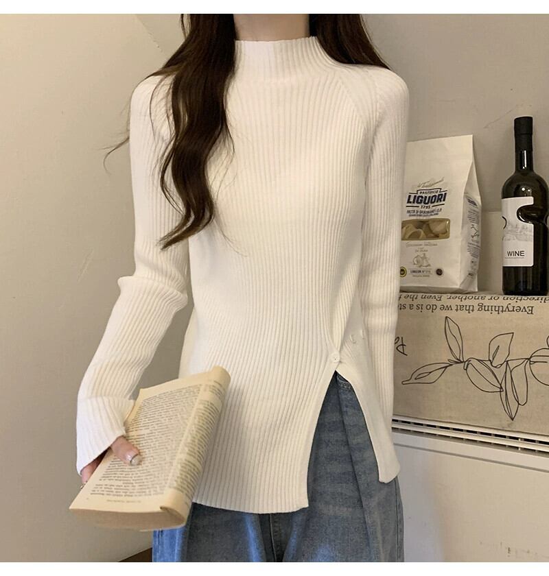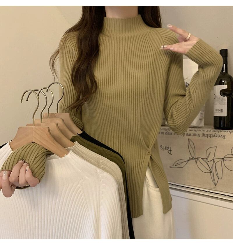 ハーフタートルネックボトリングシャツ 2023 新しい女性の秋冬スタイルフレンチスリムフィットスリット長袖ニットセーター ロング オータム 秋物 ウィンター 冬物 7460069289382242 | framboise21