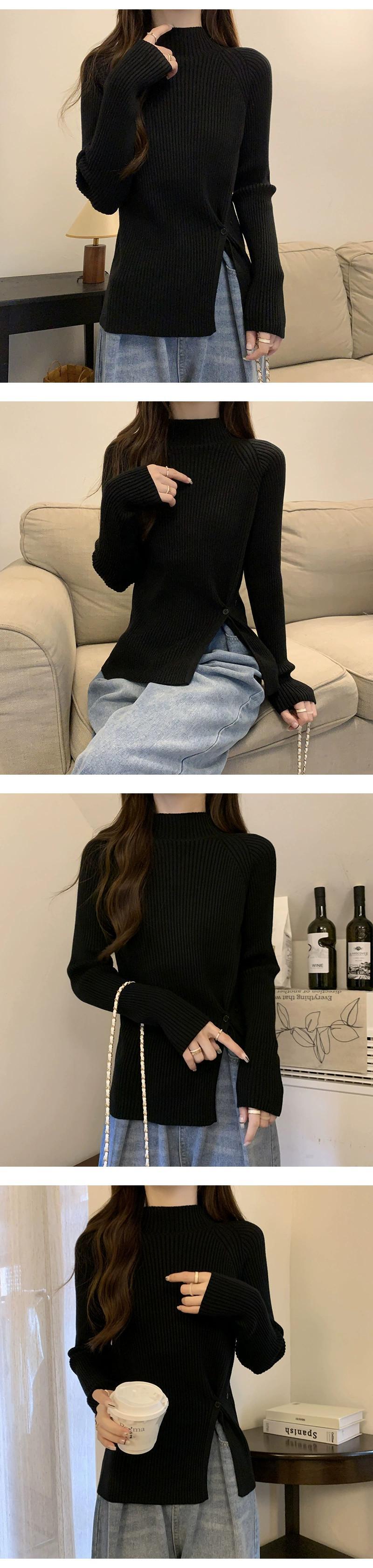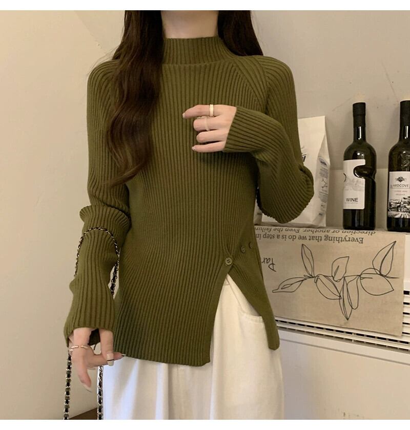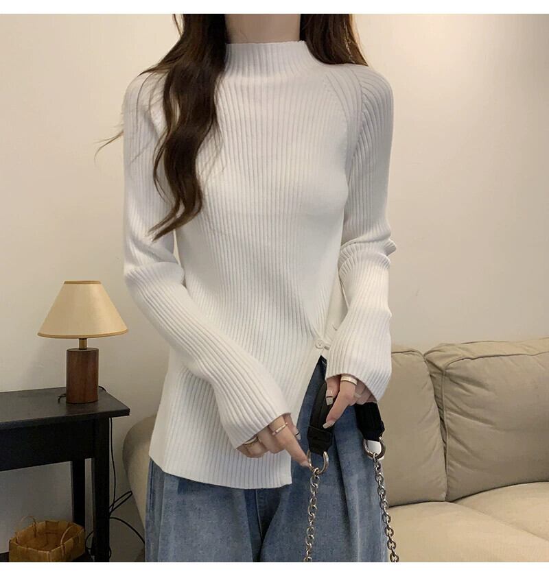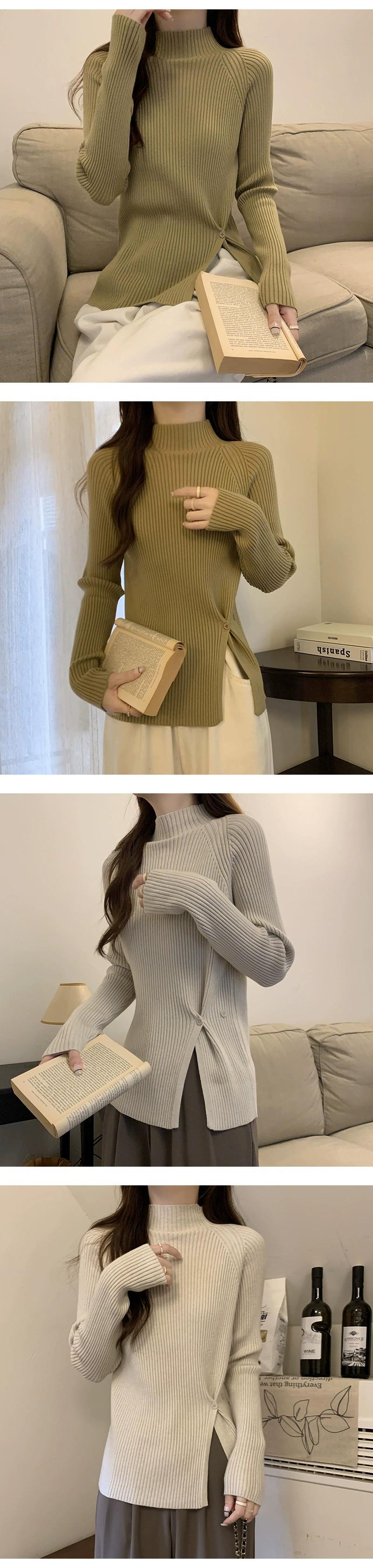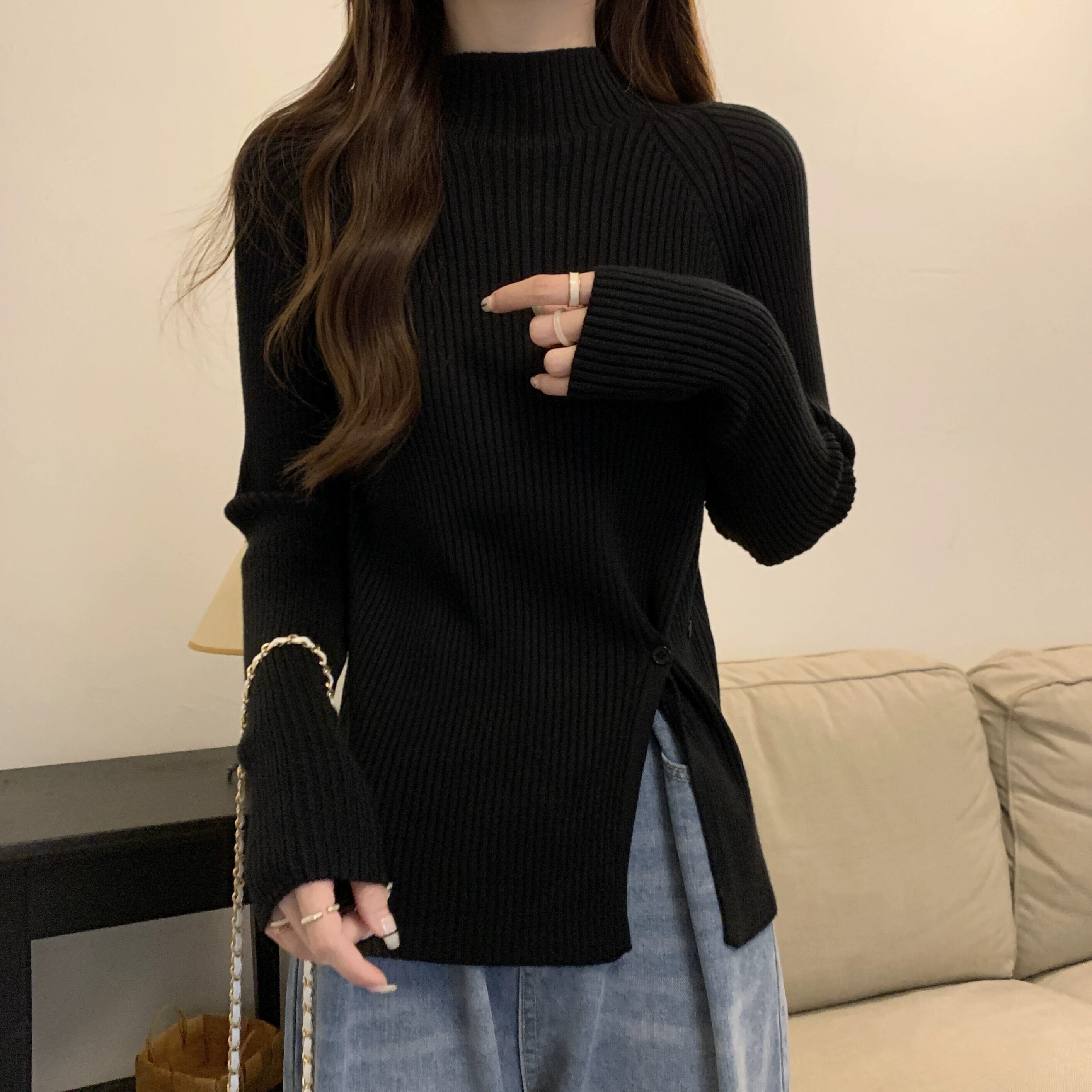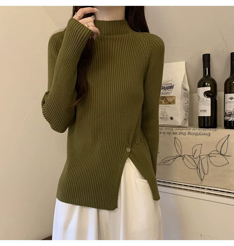 ハーフタートルネックボトリングシャツ 2023 新しい女性の秋冬スタイルフレンチスリムフィットスリット長袖ニットセーター ロング オータム 秋物 ウィンター 冬物 7460069289382242 | framboise21