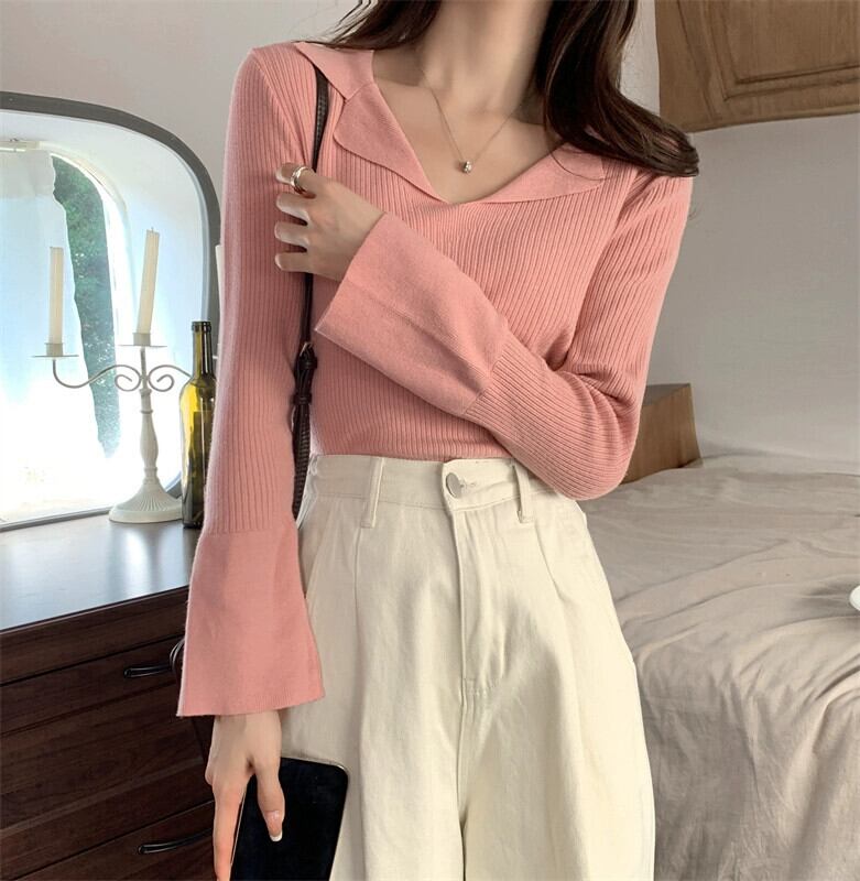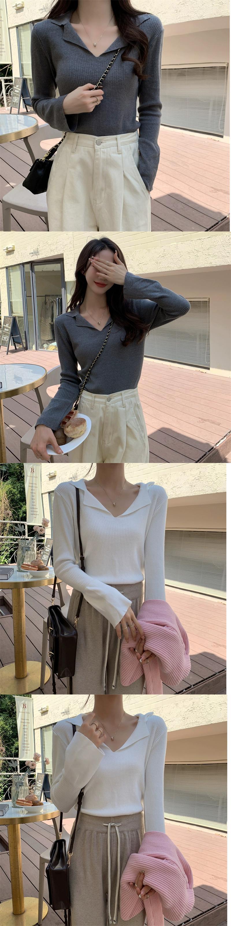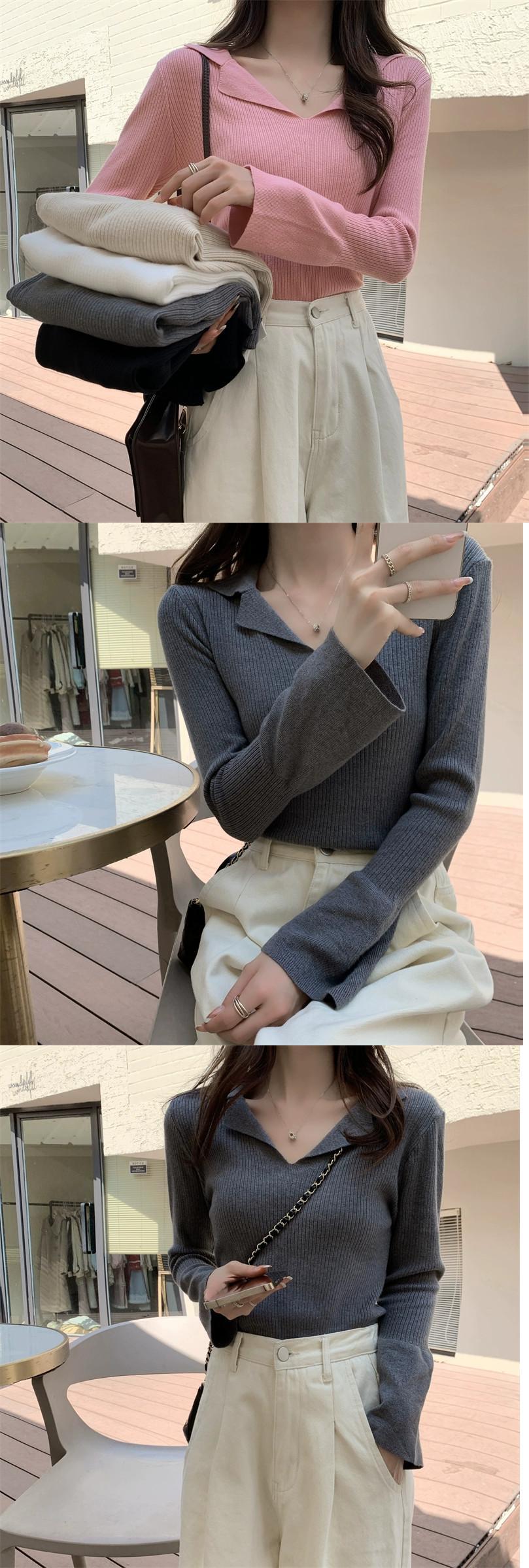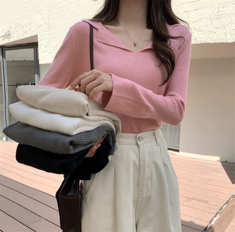グレーの V ネックボトリングシャツ 2023 新しい女性の秋冬インナーセーター、ファッショナブルでスリムで多用途の長袖ニットトップ ロング オータム 秋物 ウィンター 冬物 Vネック 7460060853331819 | framboise21