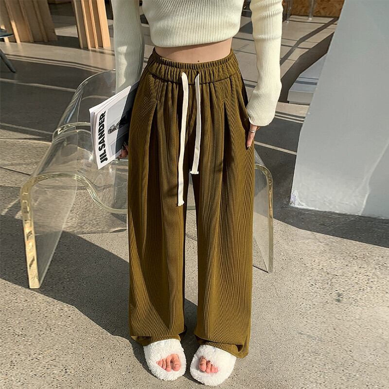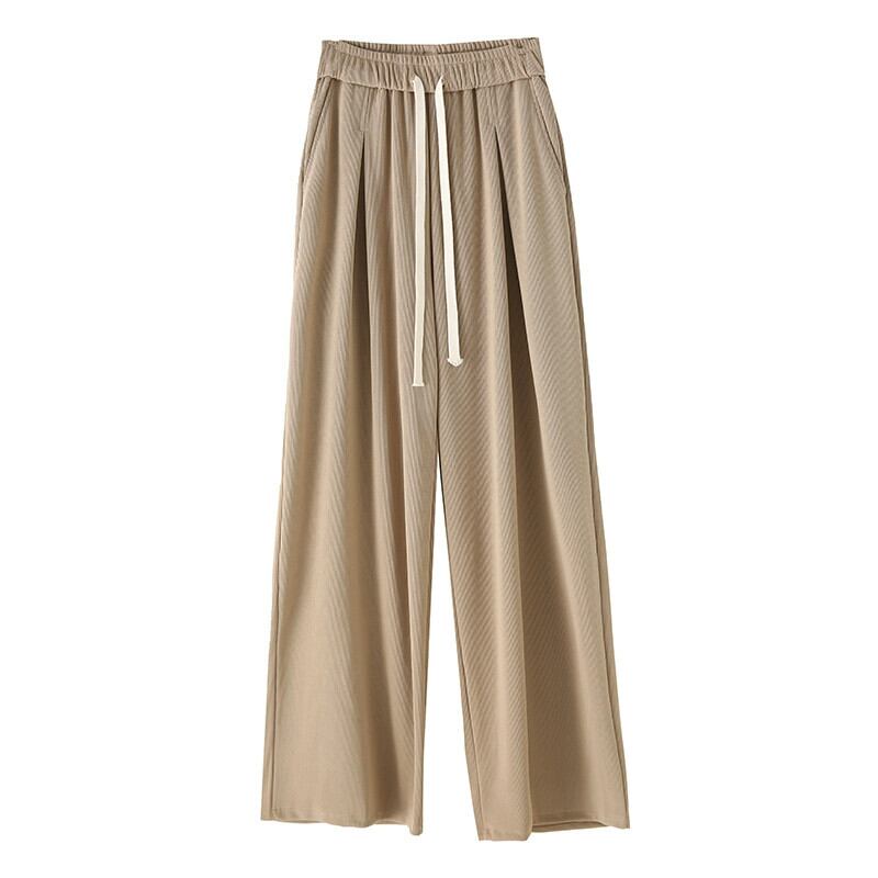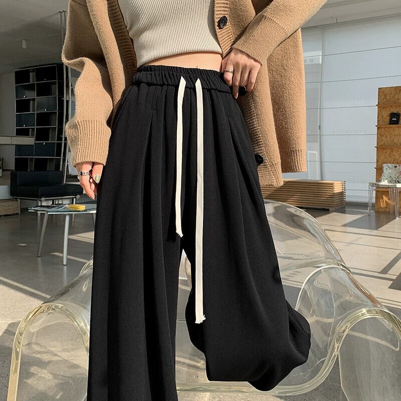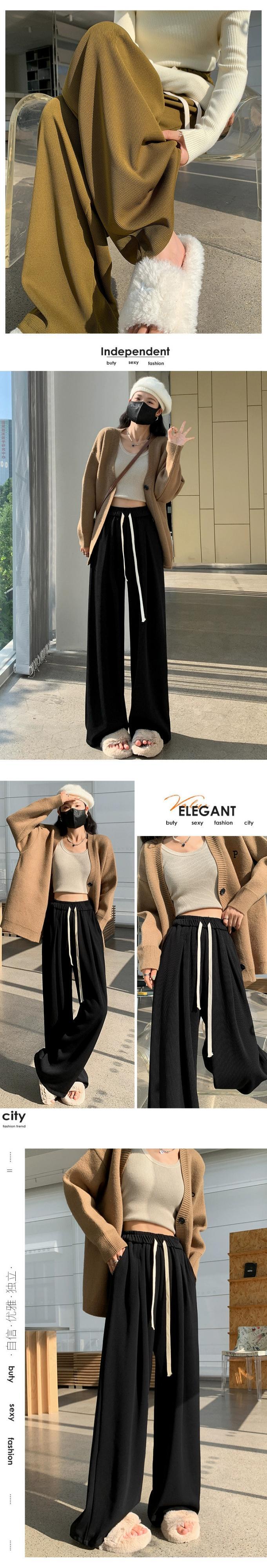 黒の狭いワイドレッグパンツの女性の新作 2023 人気の春と秋のハイウエストドレープフロアレングスストレートカジュアルパンツ女性 ブラック スプリング 春物 オータム 秋物 7460094346237033 | framboise21