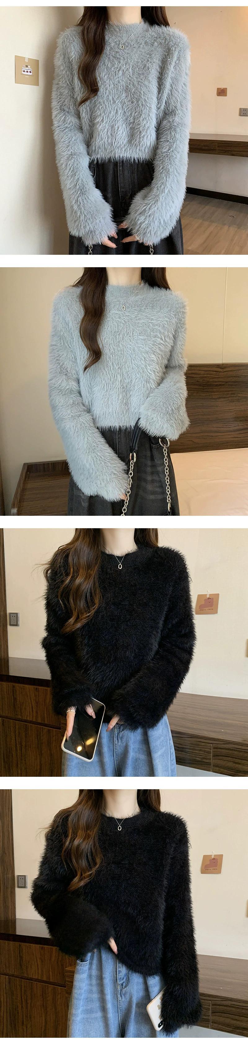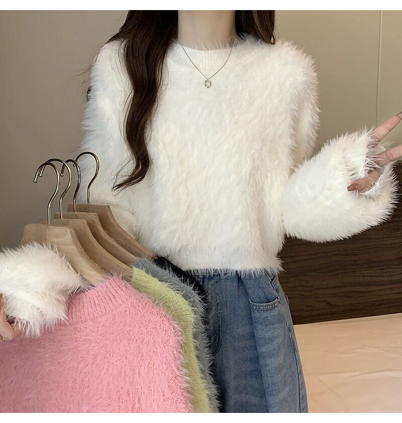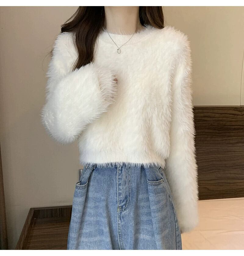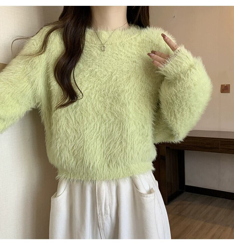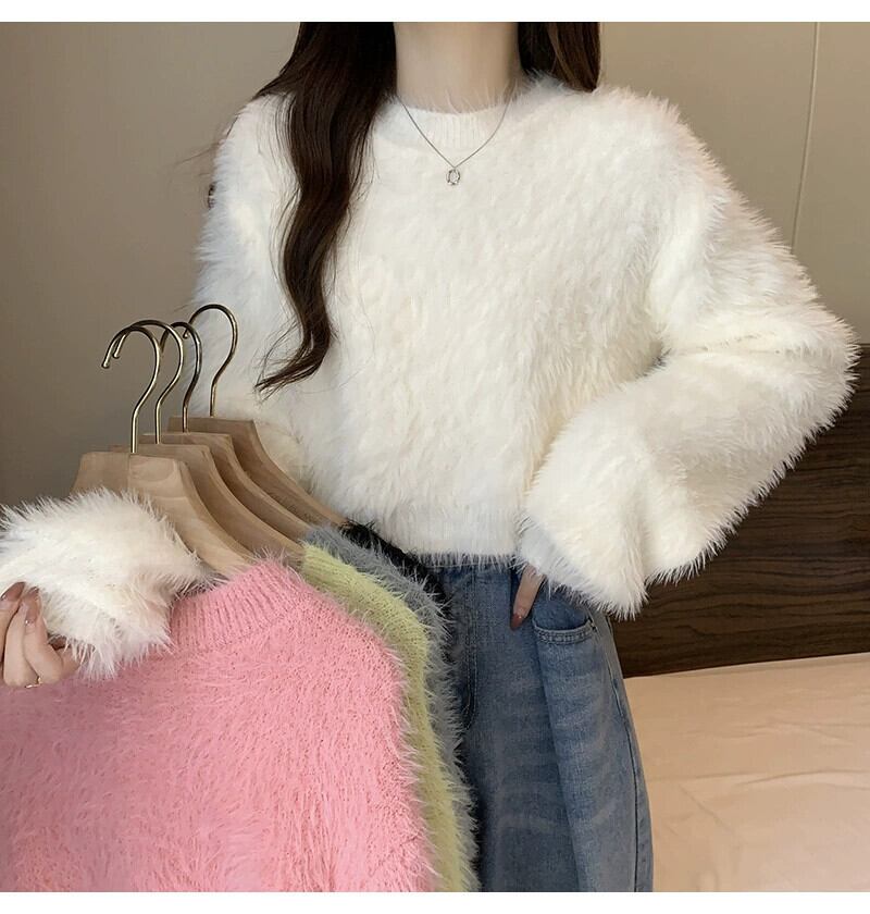 厚いイミテーションミンクベルベットのショートソフトワックスセーター女性、秋と冬のルーズなアウターウェア、スリムでウエスタンスタイルのプルオーバー長袖セーター ロング オータム 秋物 ウィンター 冬物 7460056812664450 | framboise21
