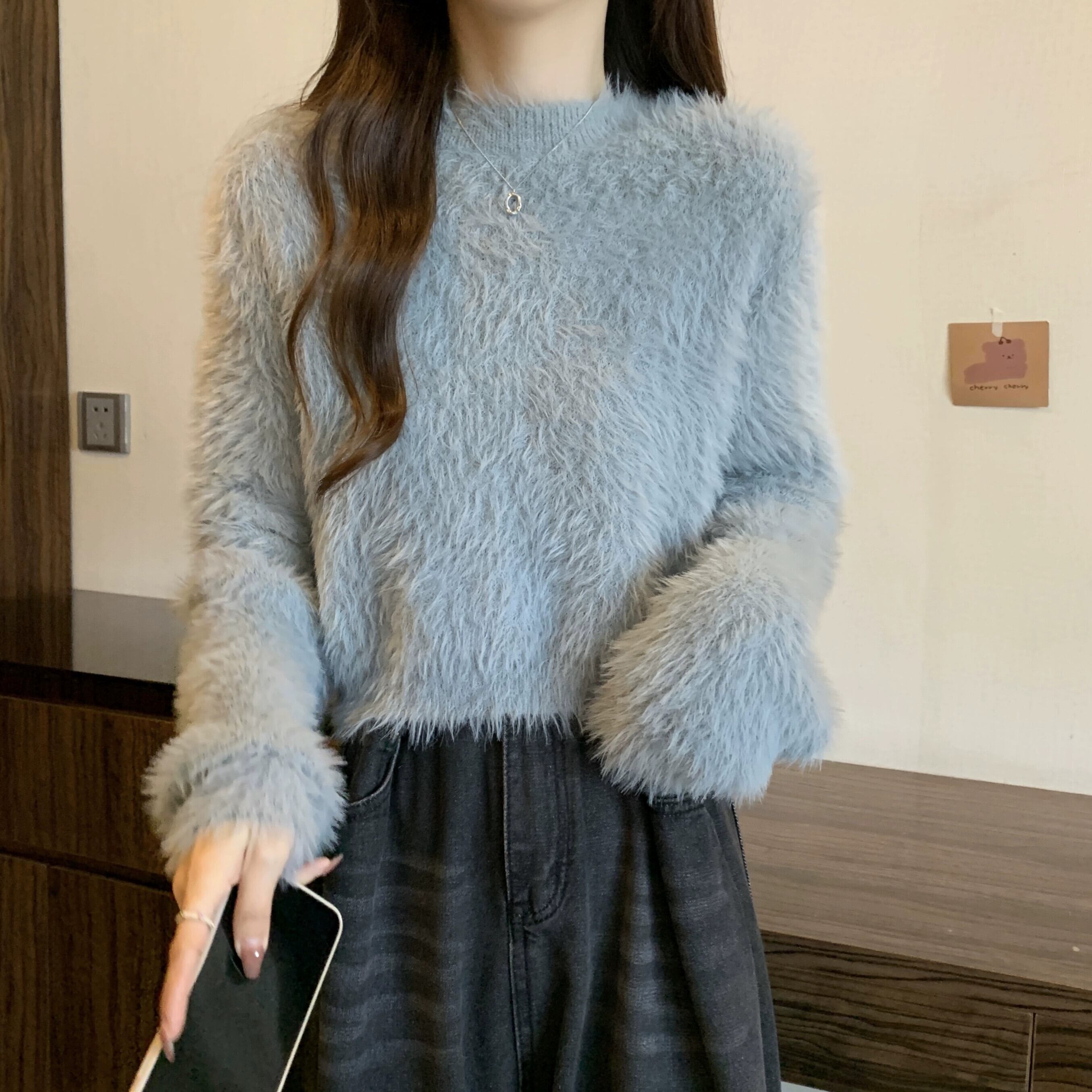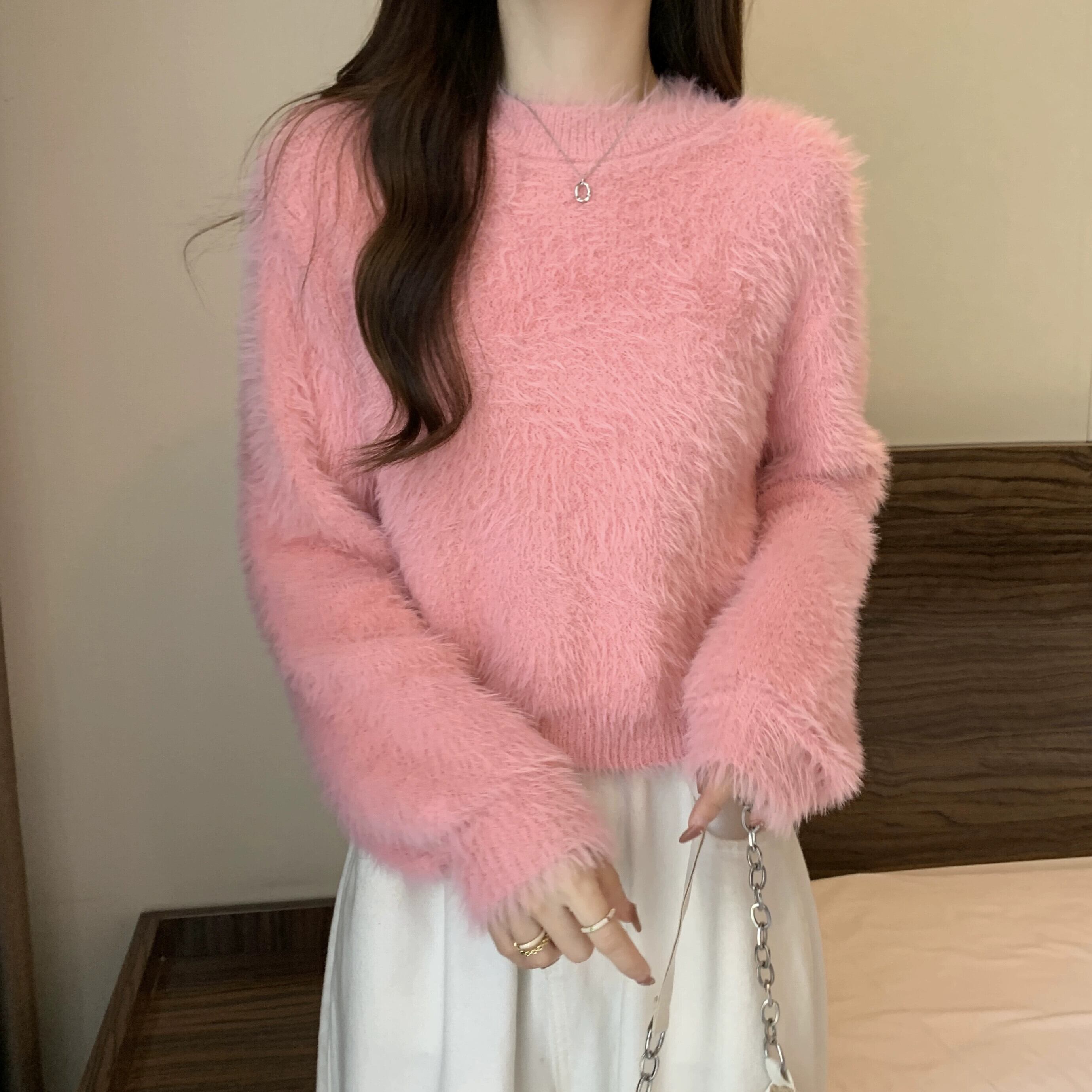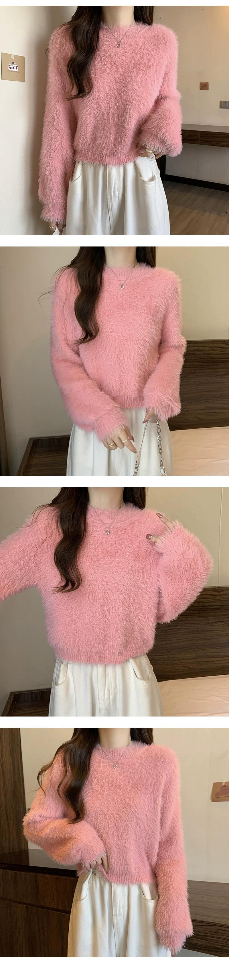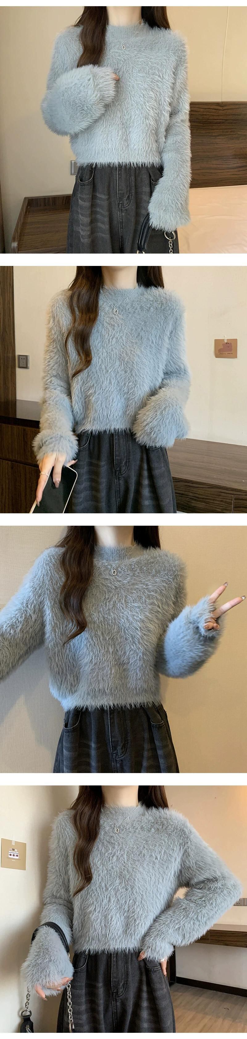厚いイミテーションミンクベルベットのショートソフトワックスセーター女性、秋と冬のルーズなアウターウェア、スリムでウエスタンスタイルのプルオーバー長袖セーター ロング オータム 秋物 ウィンター 冬物 7460056812664450 | framboise21