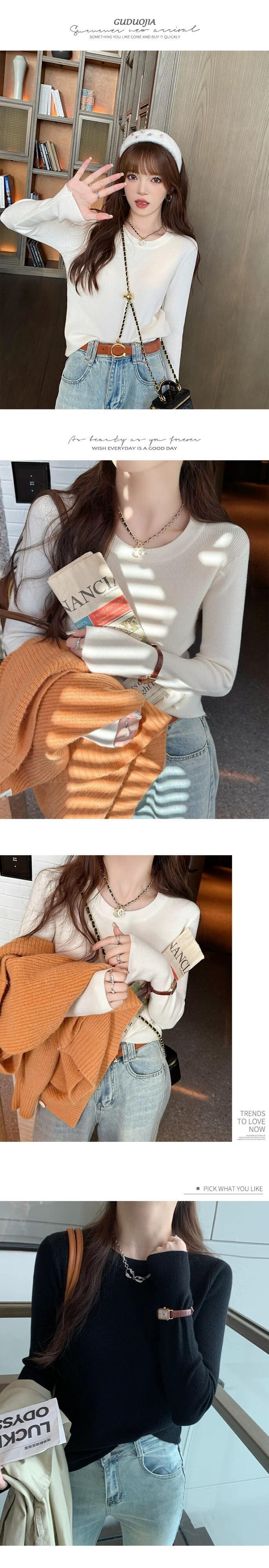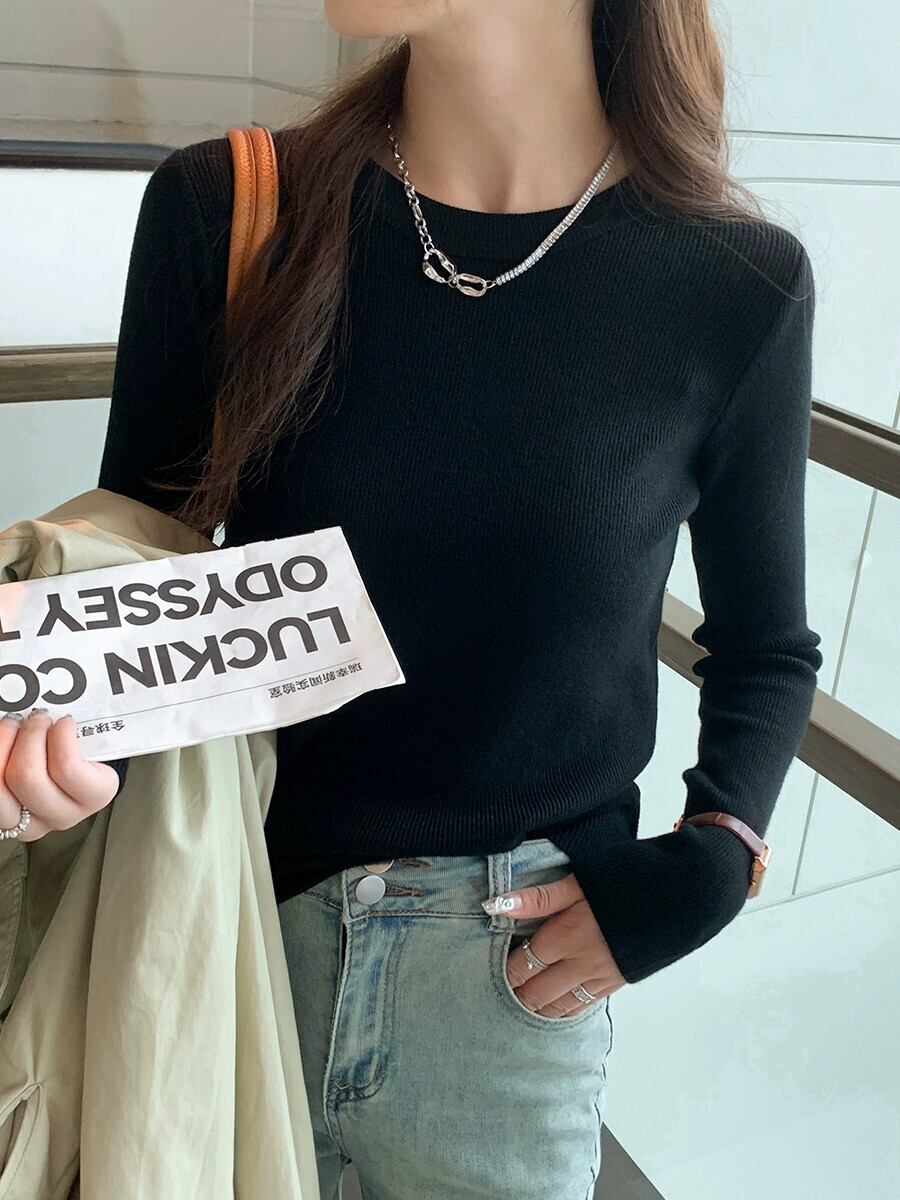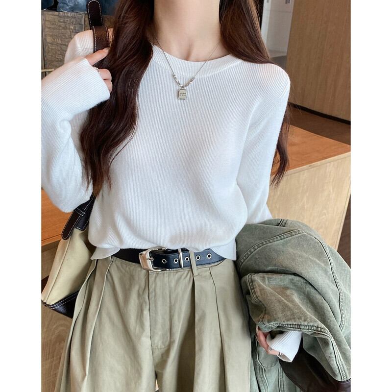 秋冬の白い長袖ボトムシャツの女性、ハイエンド、ファッショナブルでファッショナブル、ニットセーターとスリムでスリム ロング ホワイト オータム 秋物 ウィンター 冬物 7460023814267340 | framboise21