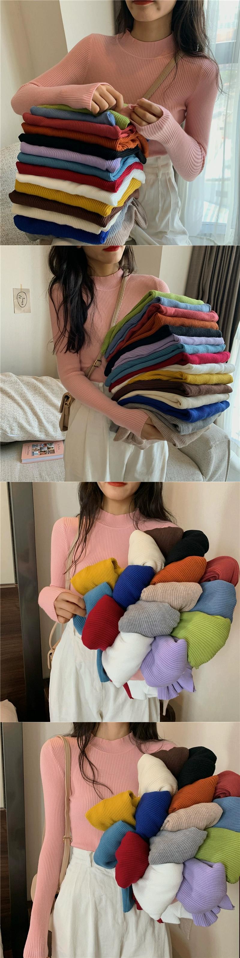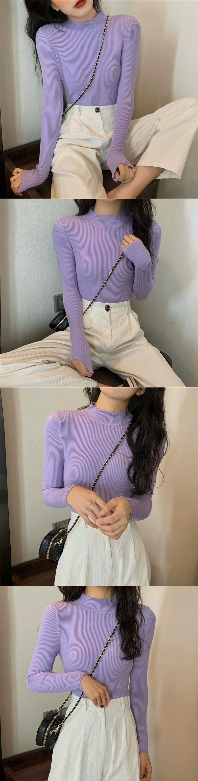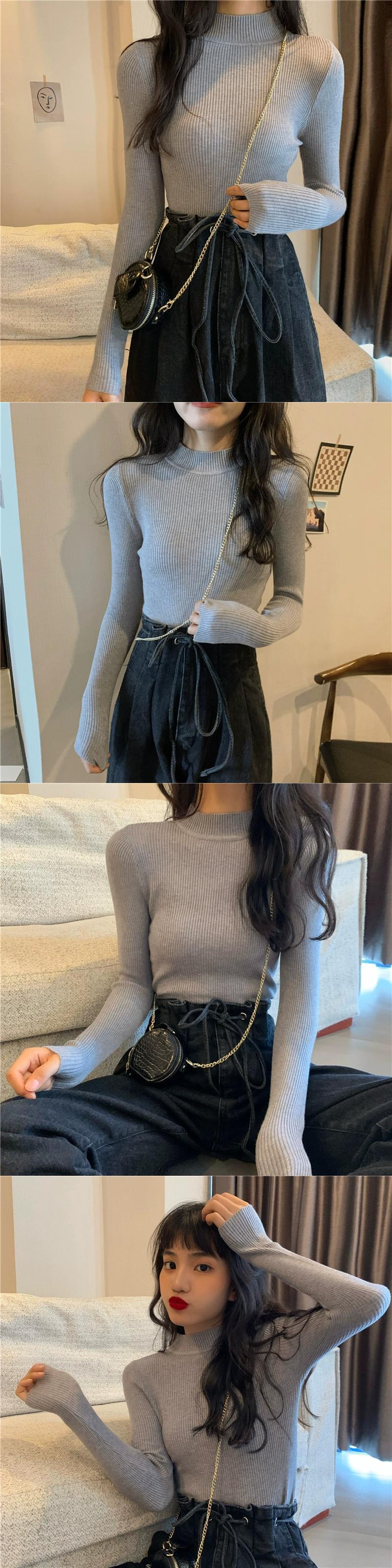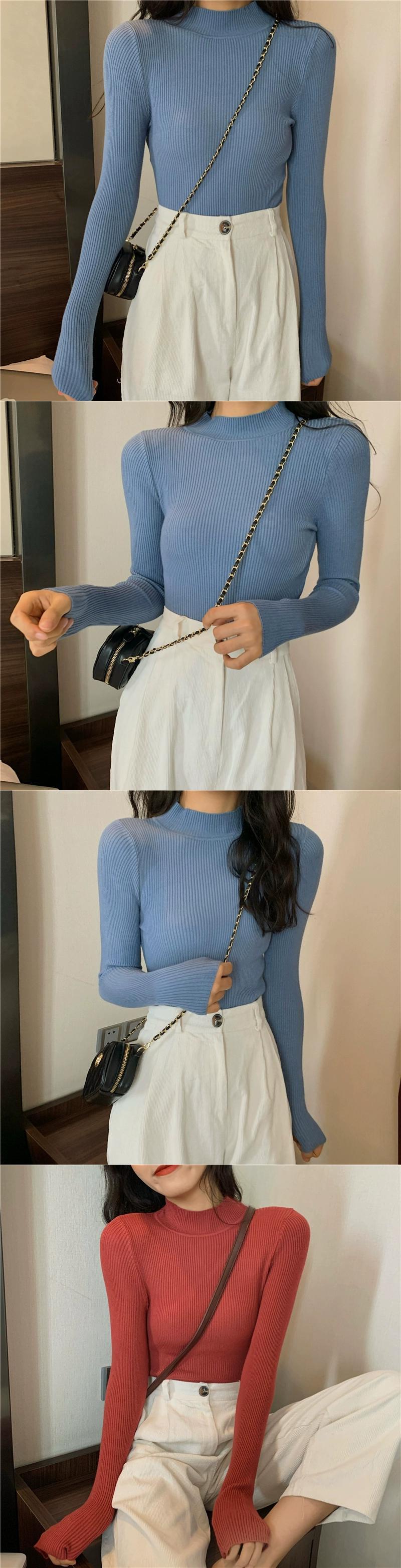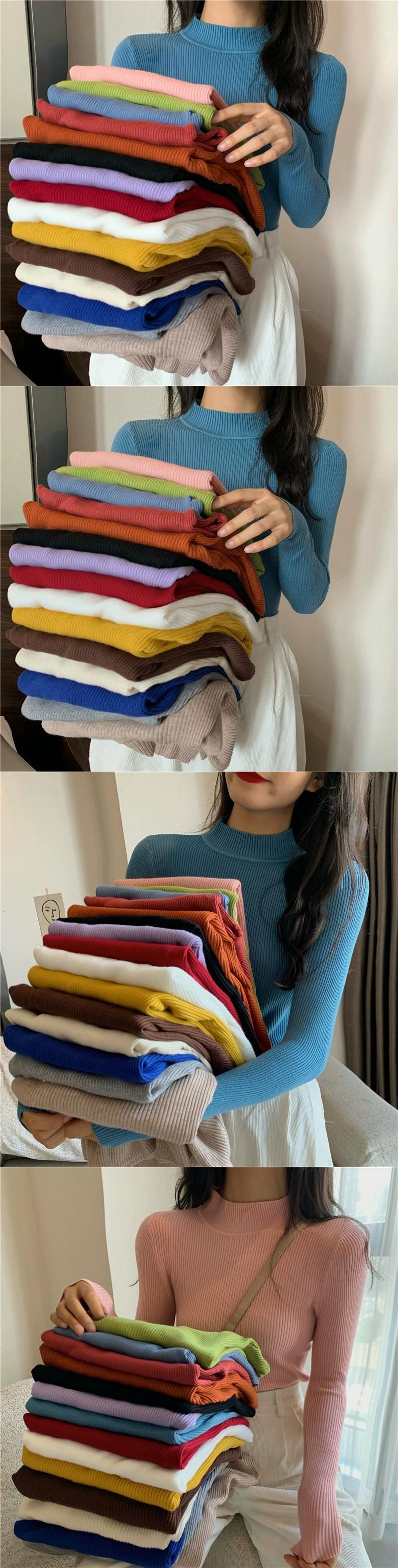 ベーシックなリブ付きハーフタートルネックボトムシャツレディース、秋冬スタイルのインナーセーター、スリムで多用途な長袖ニットトップ ロング オータム 秋物 ウィンター 冬物 7460079113948936 | framboise21