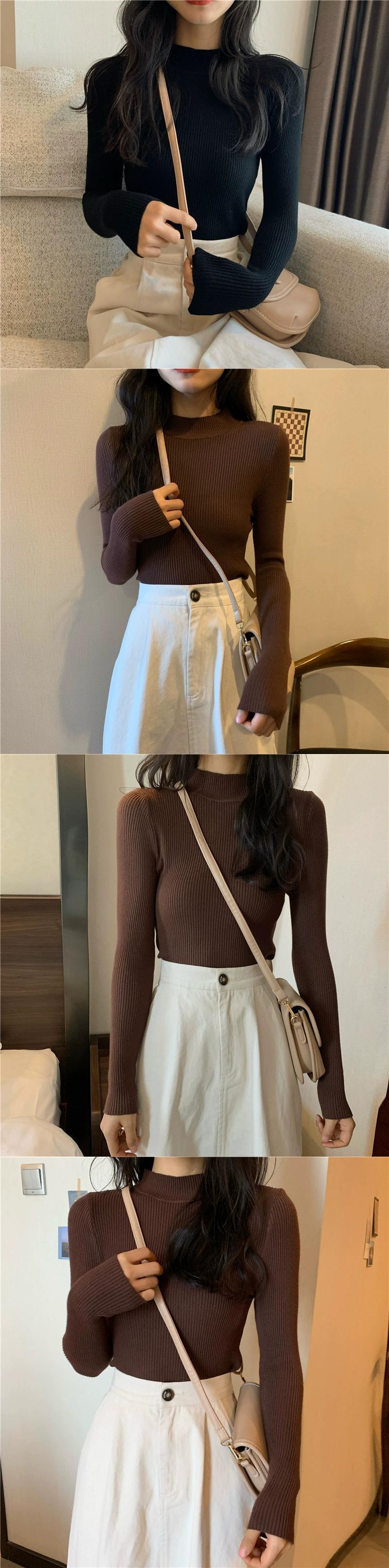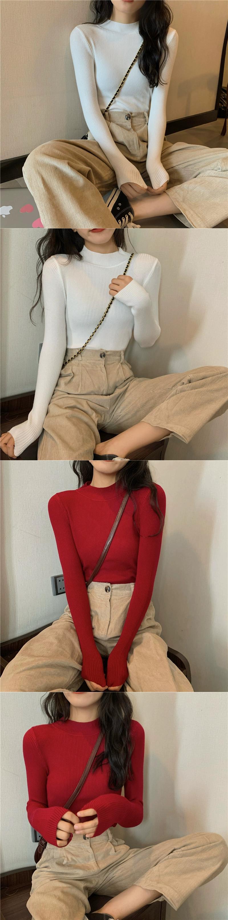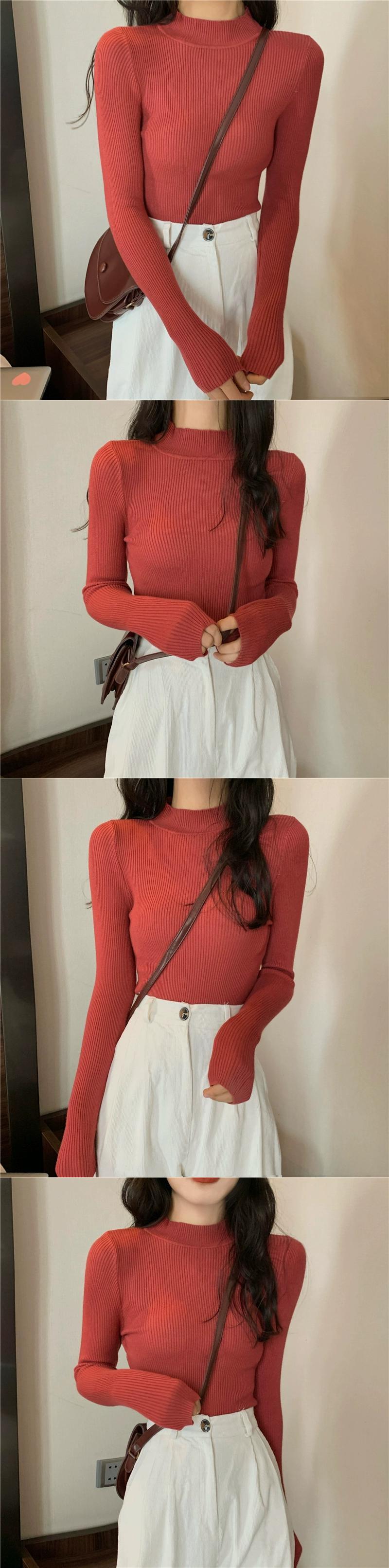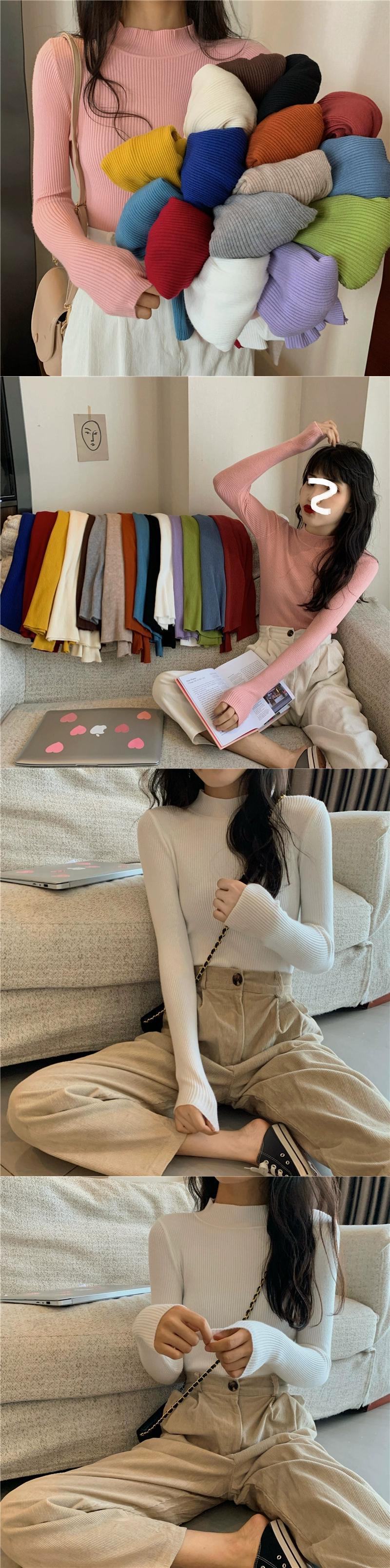ベーシックなリブ付きハーフタートルネックボトムシャツレディース、秋冬スタイルのインナーセーター、スリムで多用途な長袖ニットトップ ロング オータム 秋物 ウィンター 冬物 7460079113948936 | framboise21
