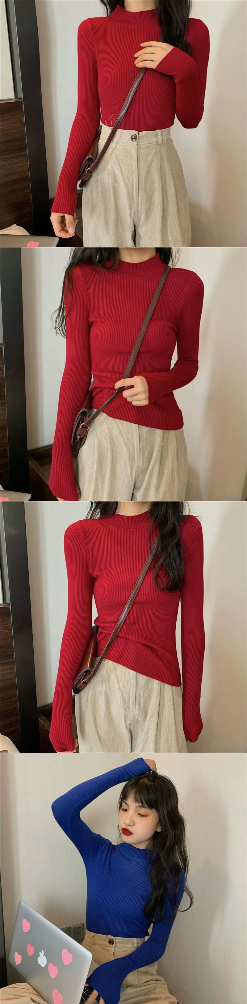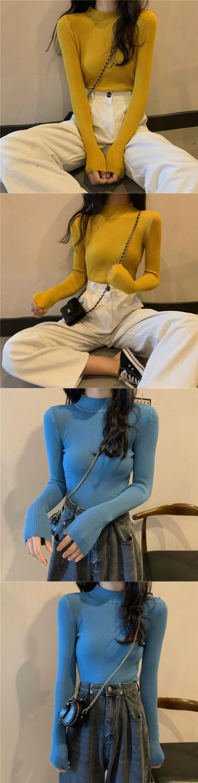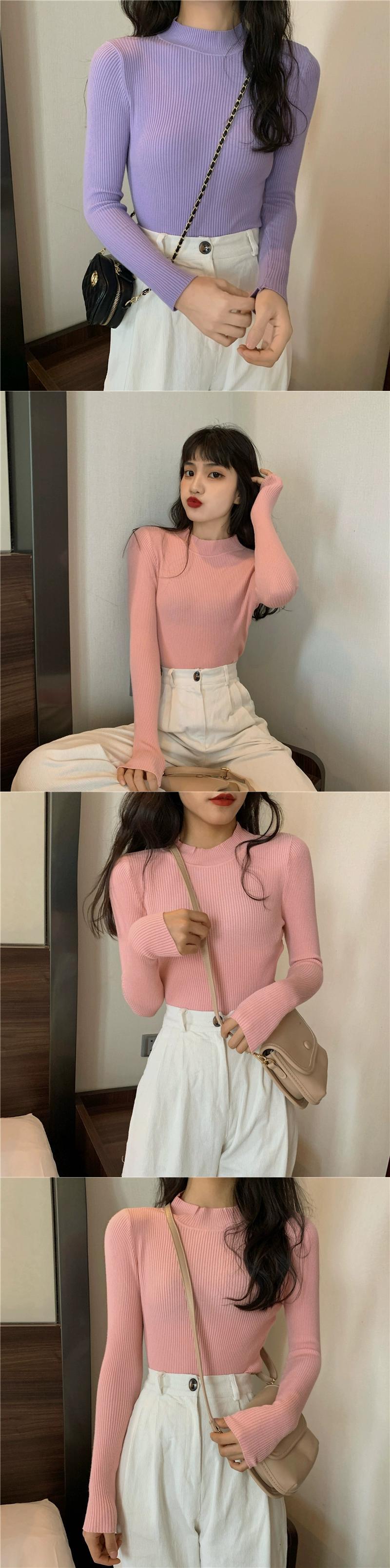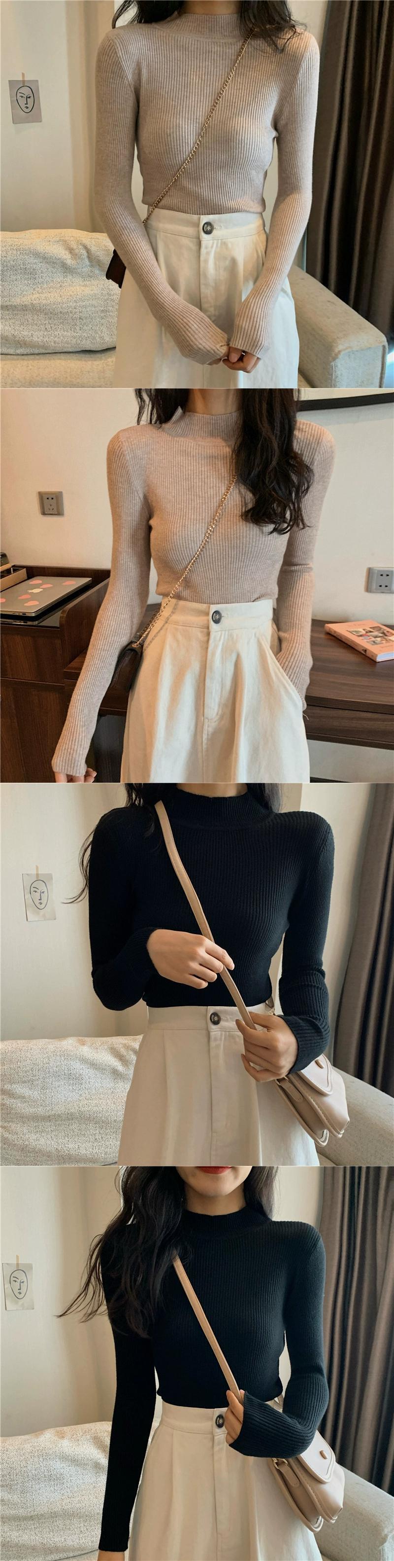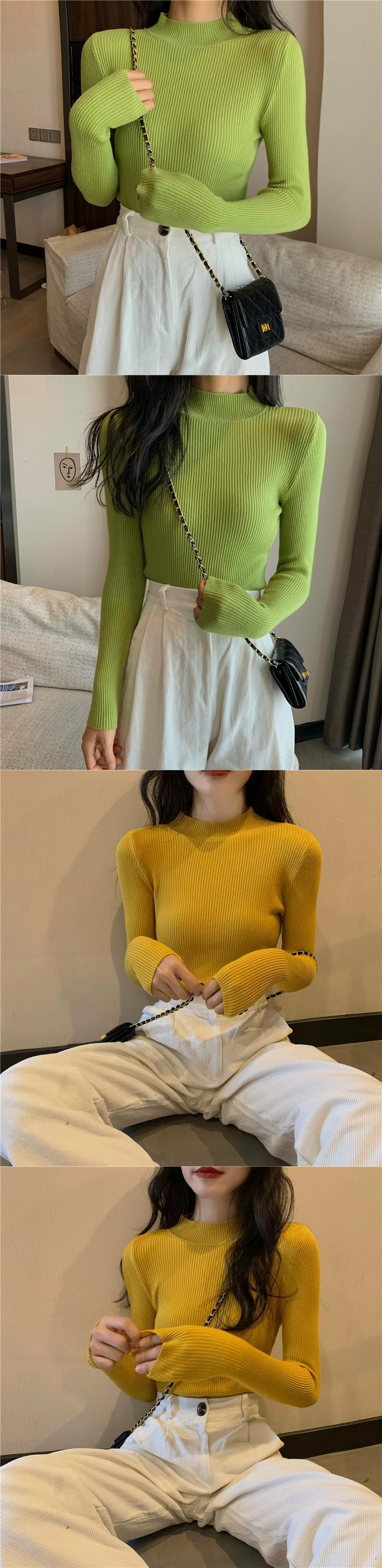 ベーシックなリブ付きハーフタートルネックボトムシャツレディース、秋冬スタイルのインナーセーター、スリムで多用途な長袖ニットトップ ロング オータム 秋物 ウィンター 冬物 7460079113948936 | framboise21