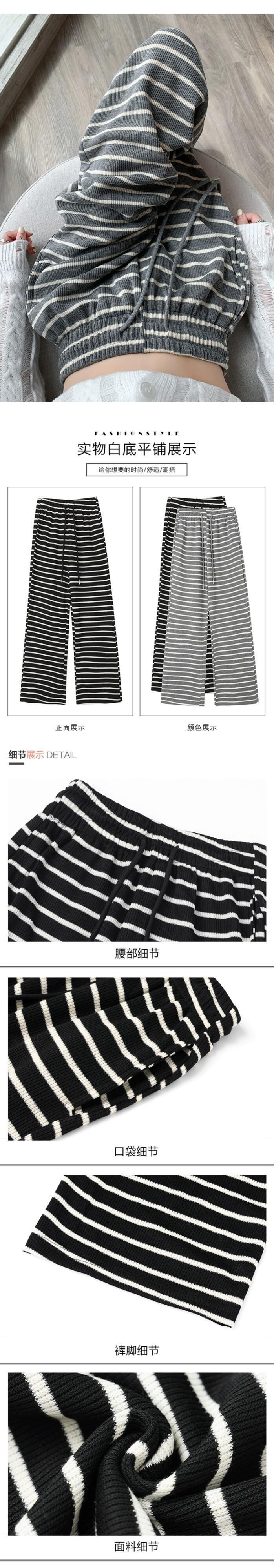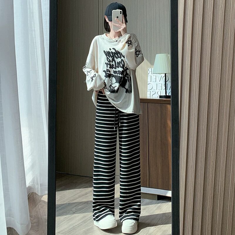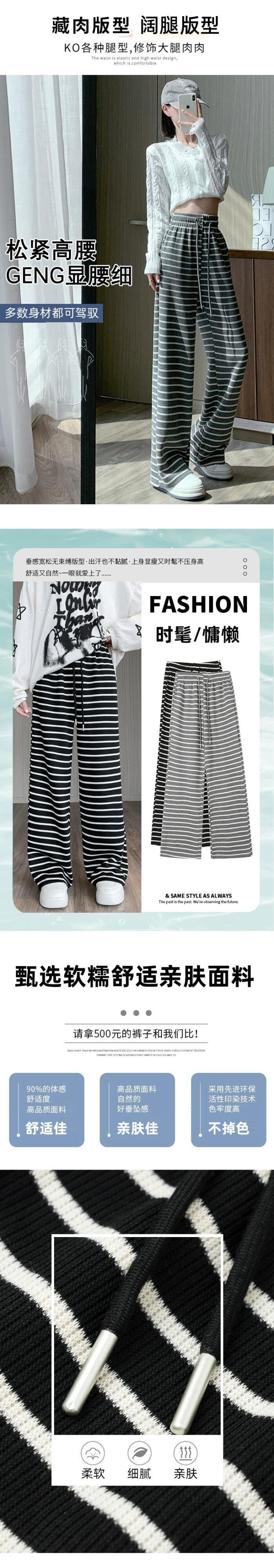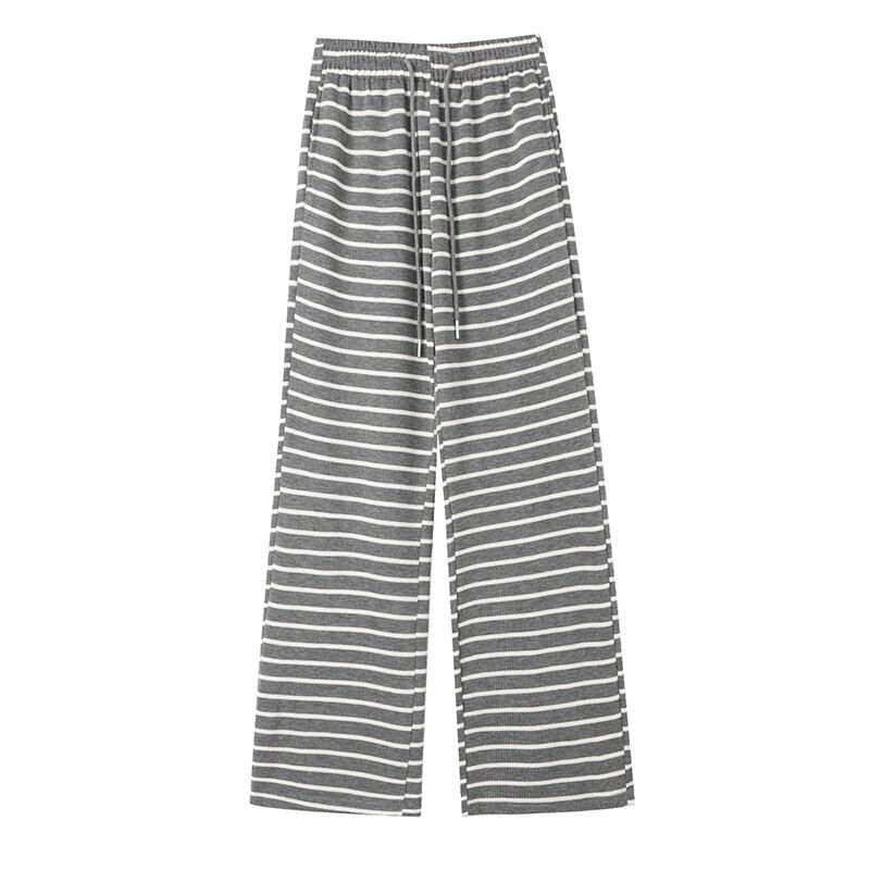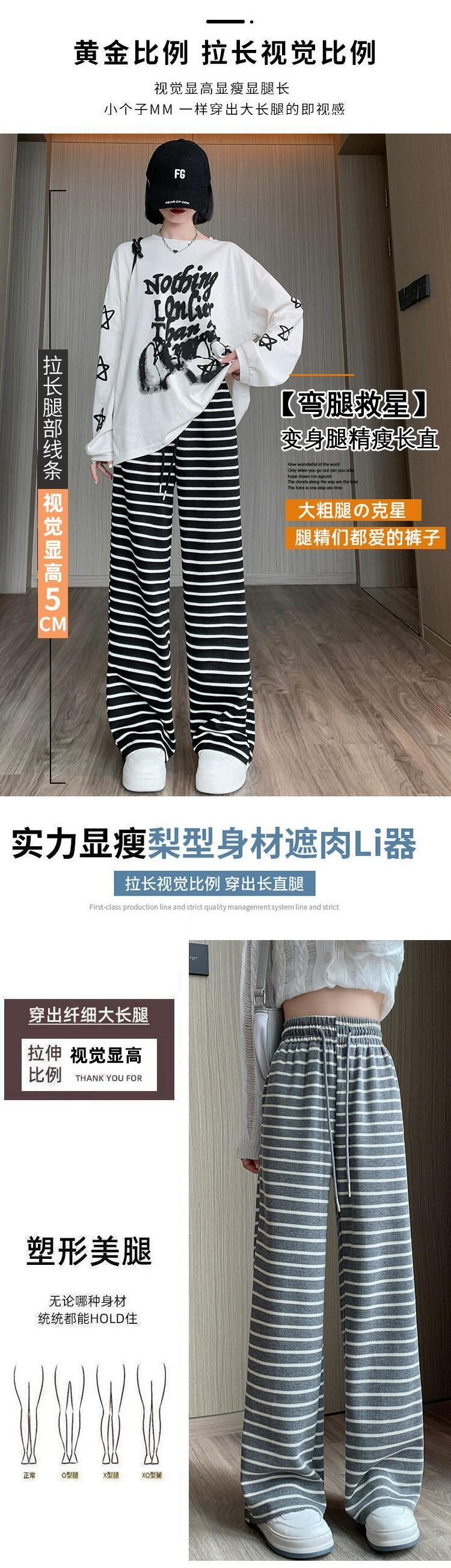 秋と冬のストライプの狭いワイドレッグパンツの女性、ハイウエストのソフトでワックス状のニットパンツ、ルーズでスリムなフロアレングスのストレートカジュアルパンツ オータム 秋物 ウィンター 冬物 7460034240200557 | framboise21