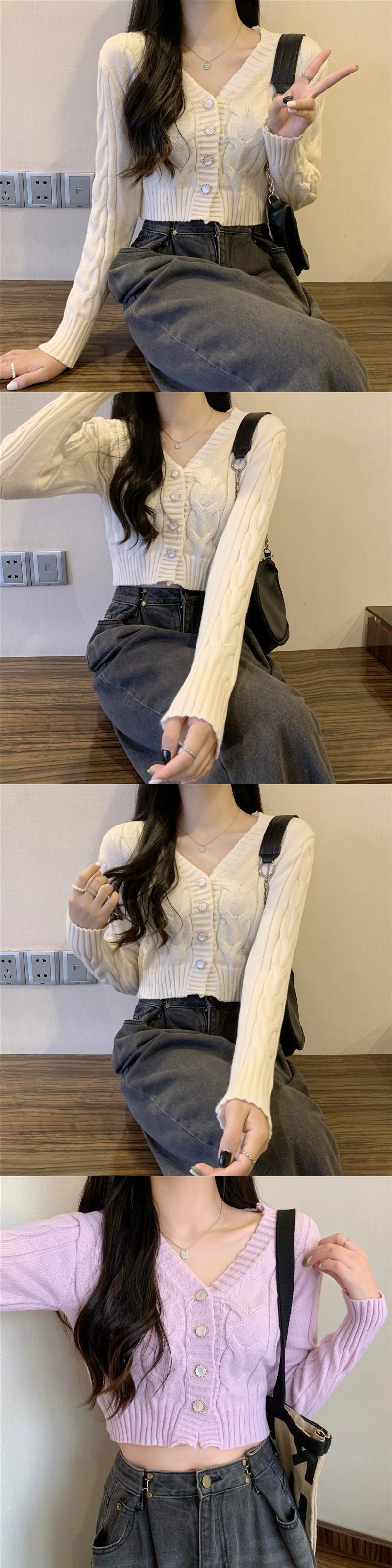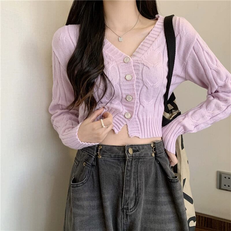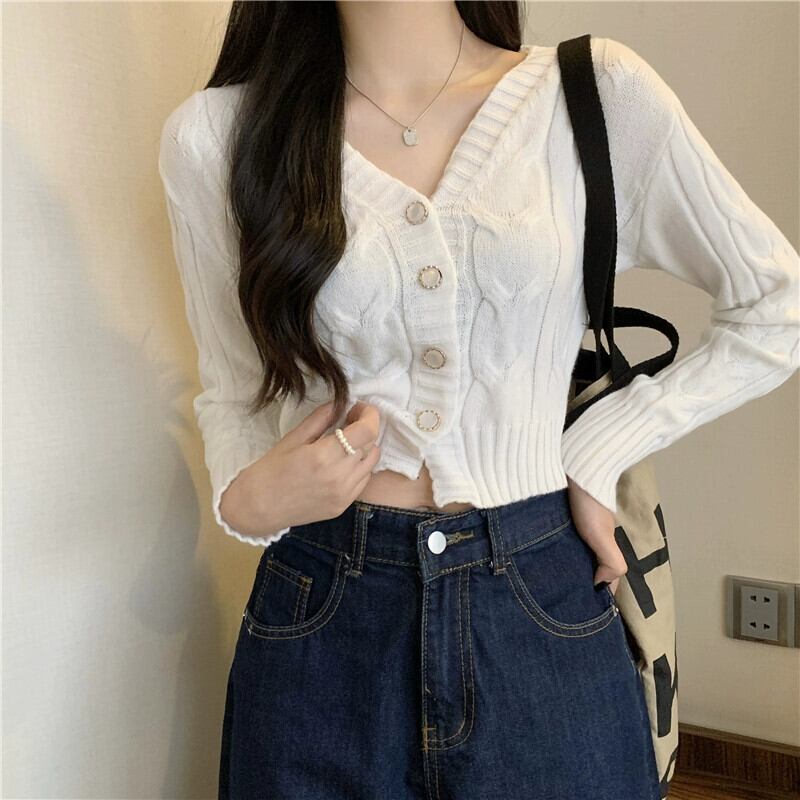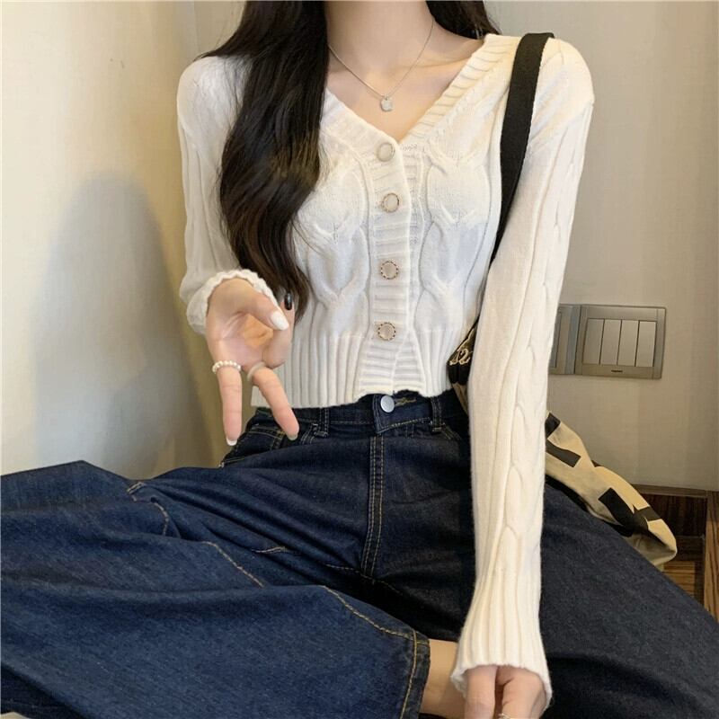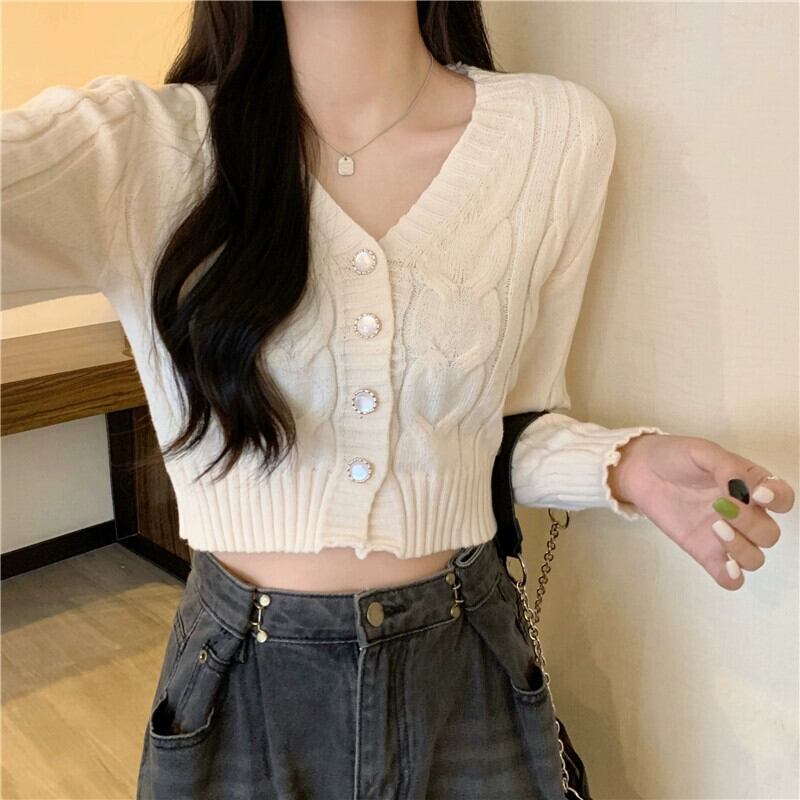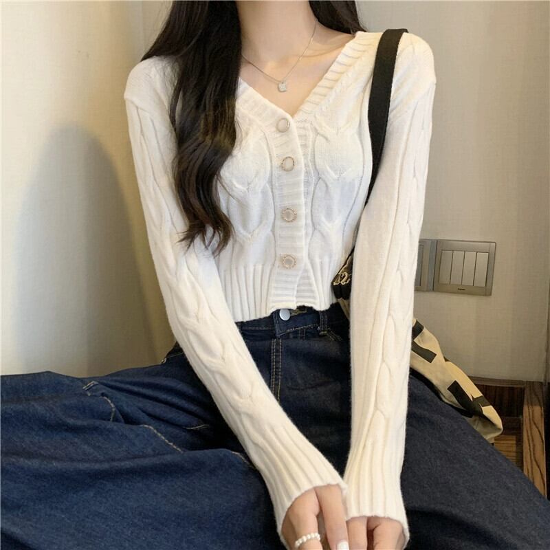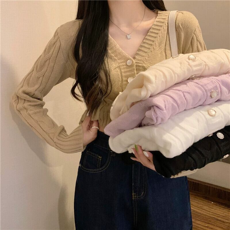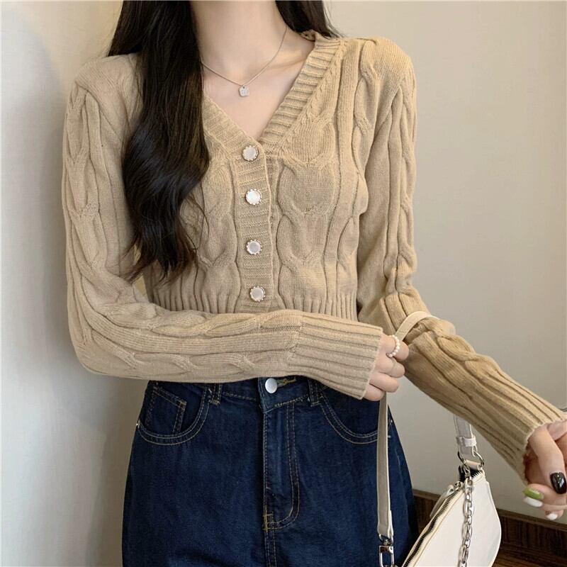 オールドマネースタイル V ネックカーディガンセーター女性新 2023 秋と冬スリムフィットアウターウェア小さなショートニットジャケット オータム 秋物 ウィンター 冬物 Vネック 7460055681846246 | framboise21