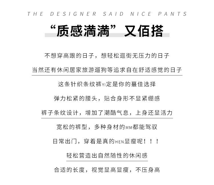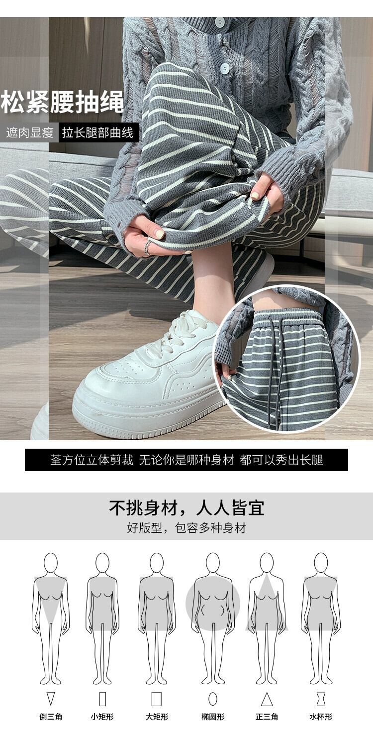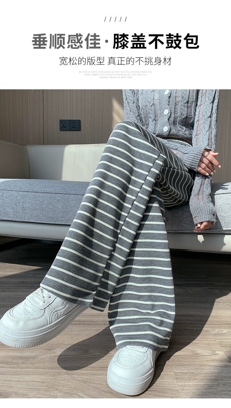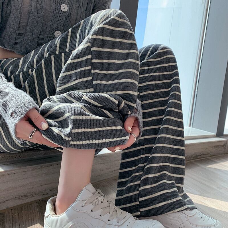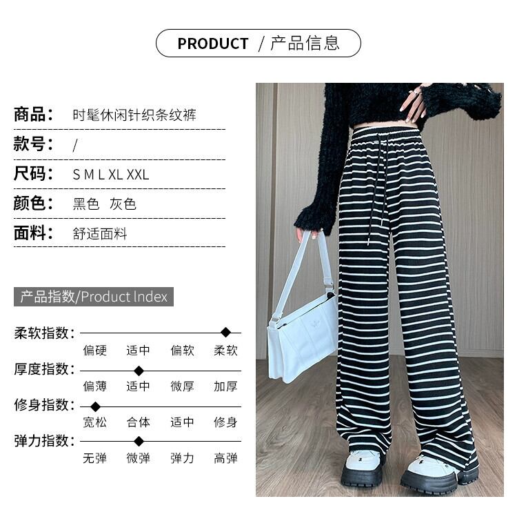 春と秋の黒と白のストライプのニットワイドレッグパンツの女性、怠惰なスタイル、ルーズストレートハイウエストフロアレングスカジュアルパンツ ホワイト ブラック スプリング 春物 オータム 秋物 7460086336024985 | framboise21