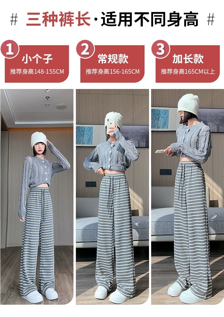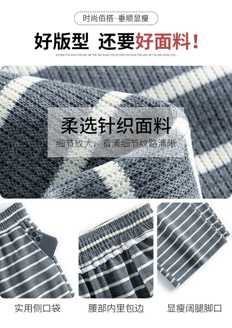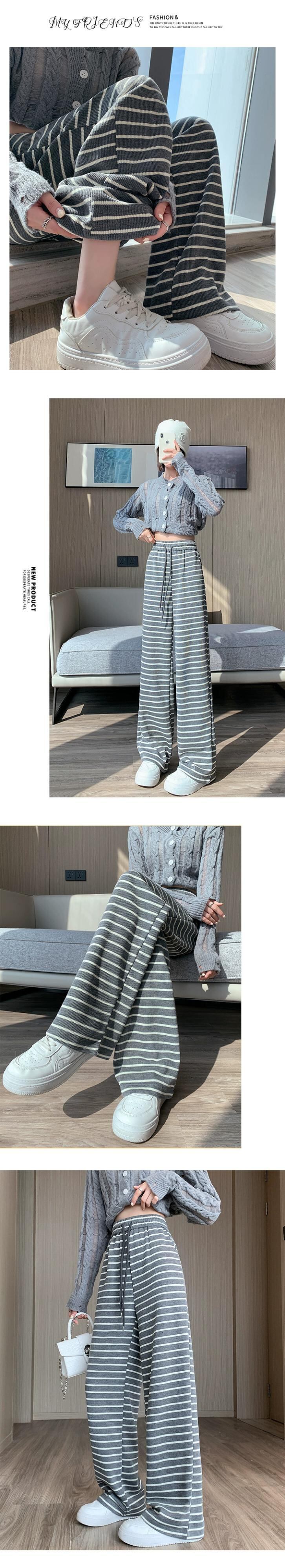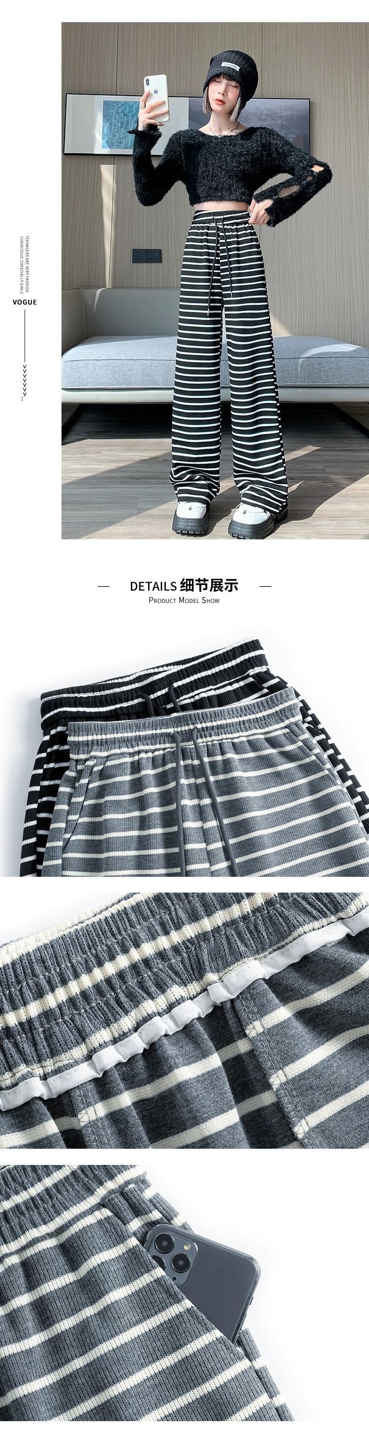 春と秋の黒と白のストライプのニットワイドレッグパンツの女性、怠惰なスタイル、ルーズストレートハイウエストフロアレングスカジュアルパンツ ホワイト ブラック スプリング 春物 オータム 秋物 7460086336024985 | framboise21
