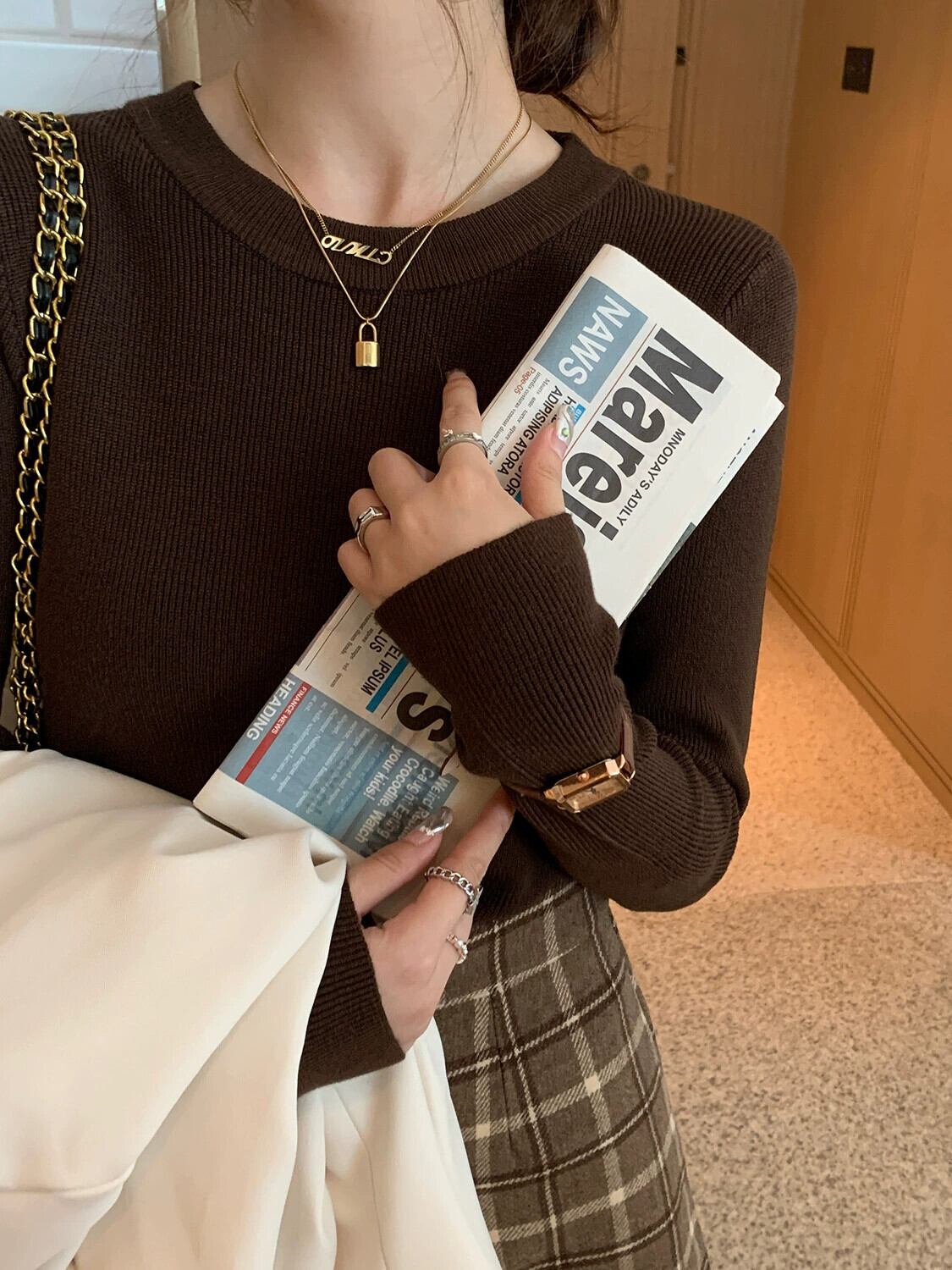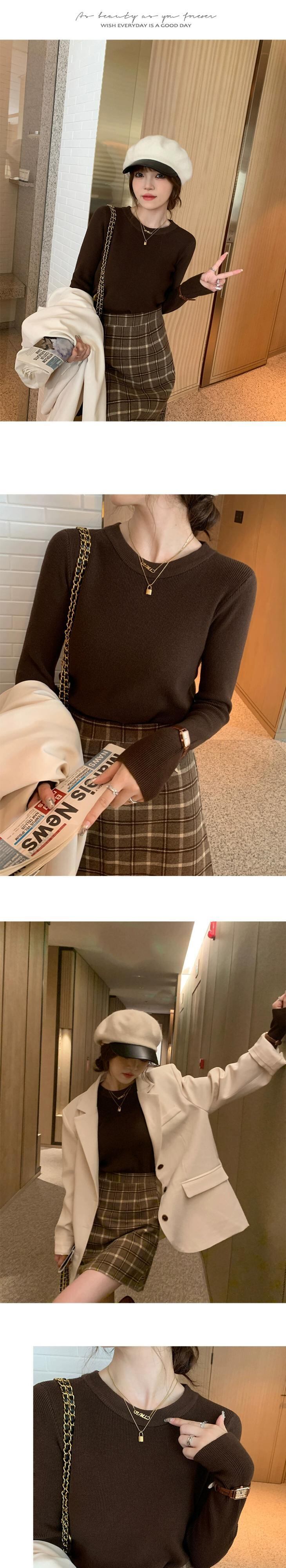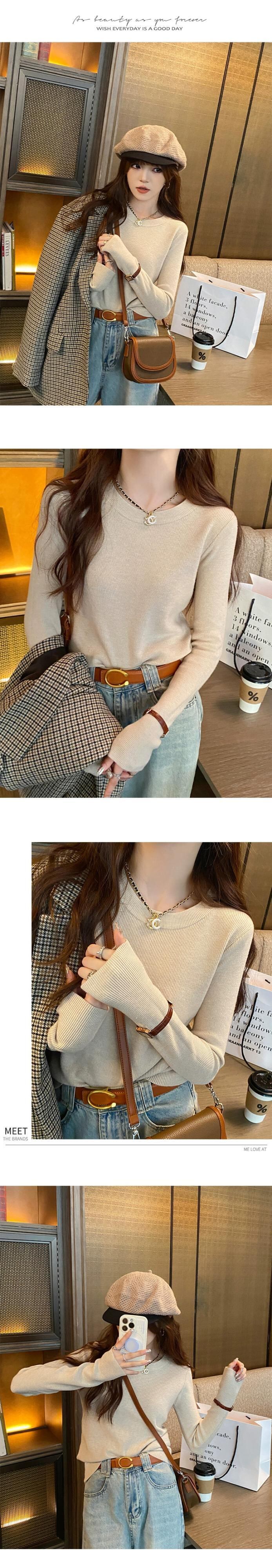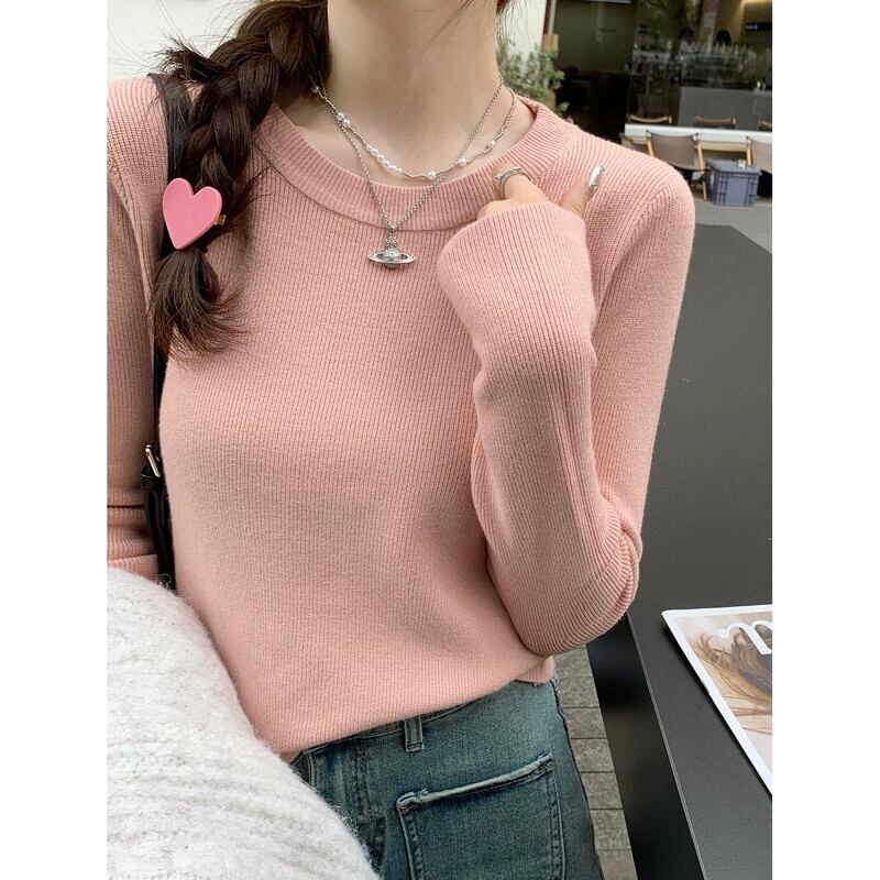 スーツの下にピンクのボトムシャツ 2023 新しい女性の秋と冬の長袖トップス、スタイリッシュでスリムで多用途のニットセーター ロング オータム 秋物 ウィンター 冬物 7460021604245604 | framboise21
