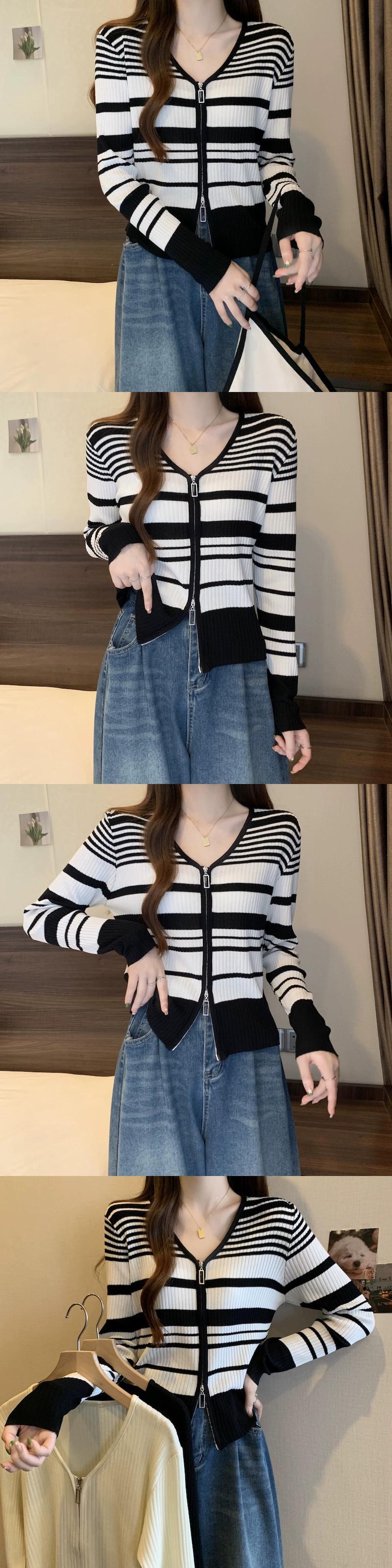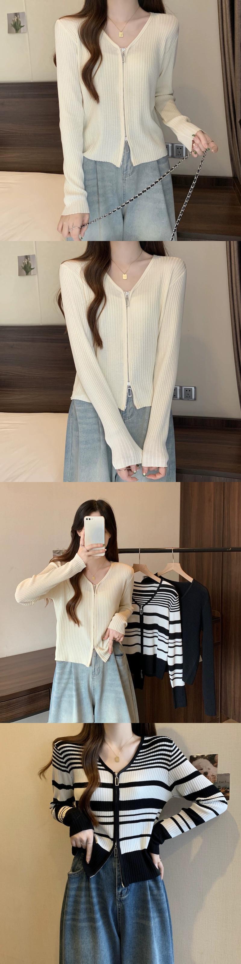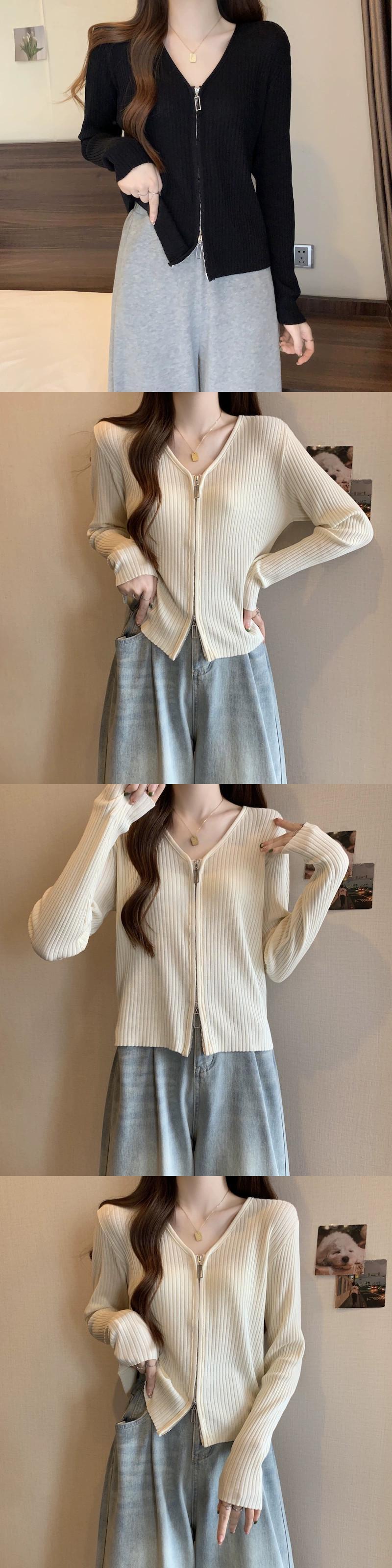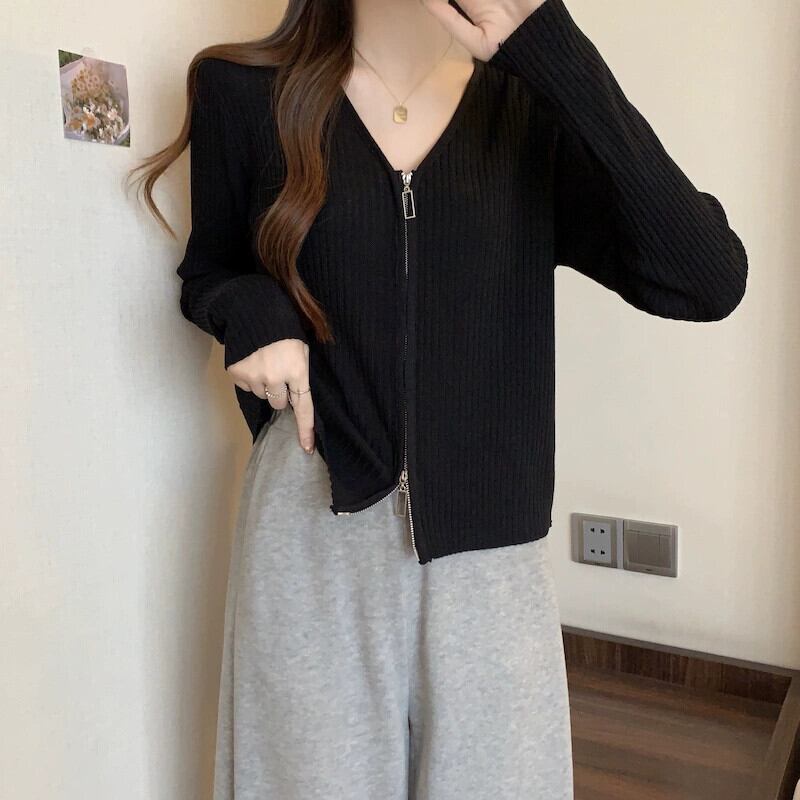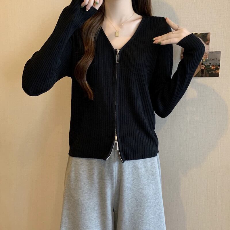 ジッパー付き V ネック ニット カーディガン ジャケット レディース、春と秋のファッショナブルなアウターウェア、Eign スタイル、スリム、ショート、ストレート ショルダー セーター レッド スプリング 春物 オータム 秋物 Vネック 7460035267871866 | framboise21