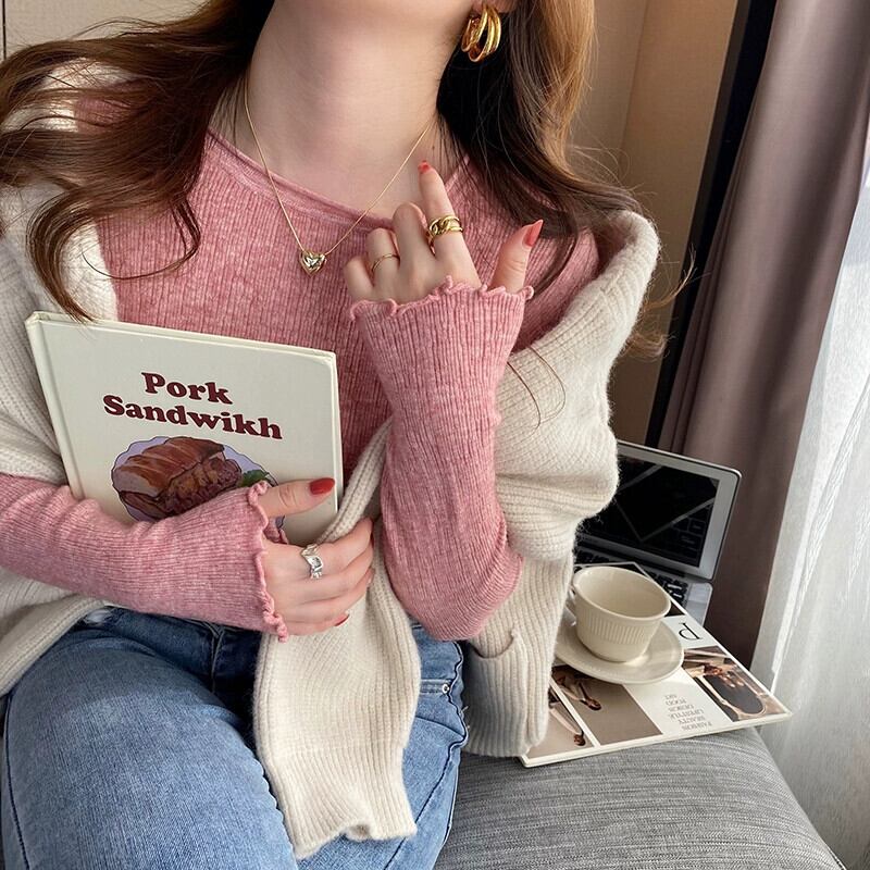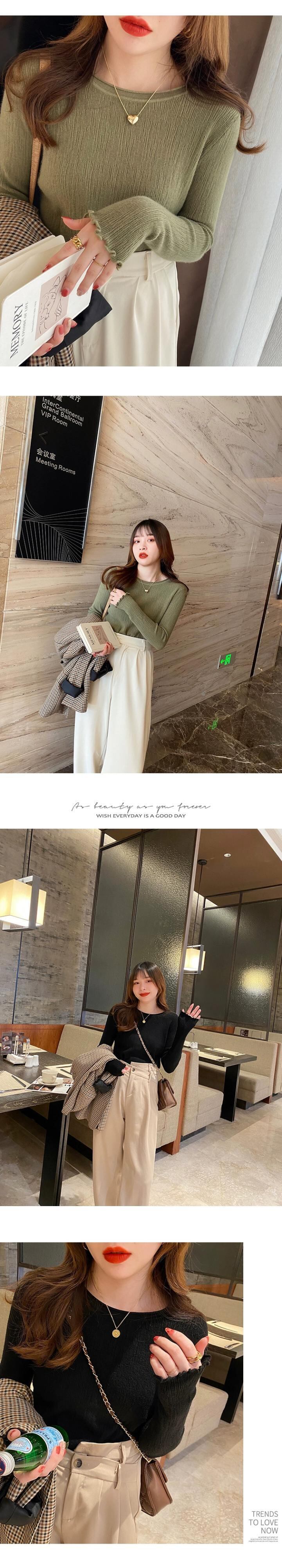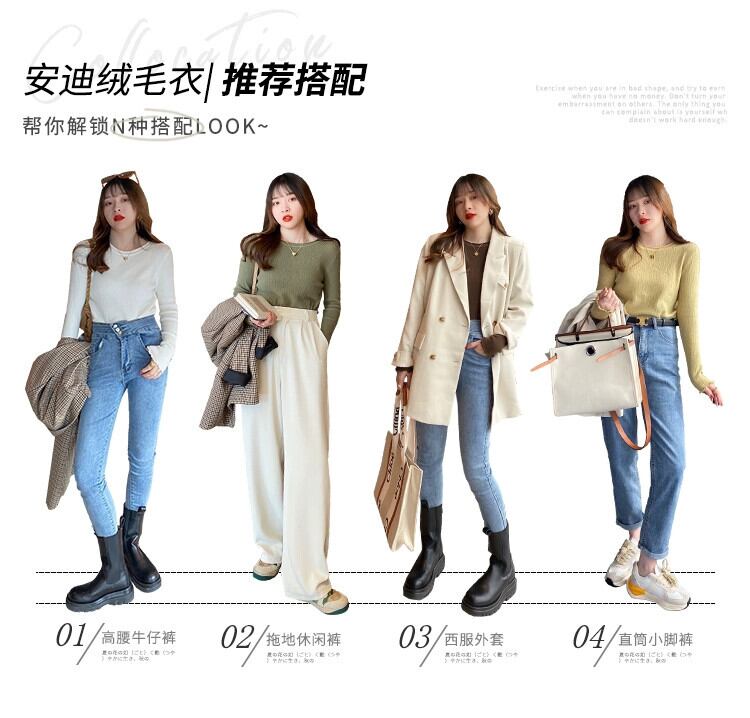 女性の秋と冬のハイエンドのファッショナブルでスリムフィットの長袖ニットセーター、スーツの中に白いボトムシャツが付いています。 ロング ホワイト オータム 秋物 ウィンター 冬物 7460054346286669 | framboise21